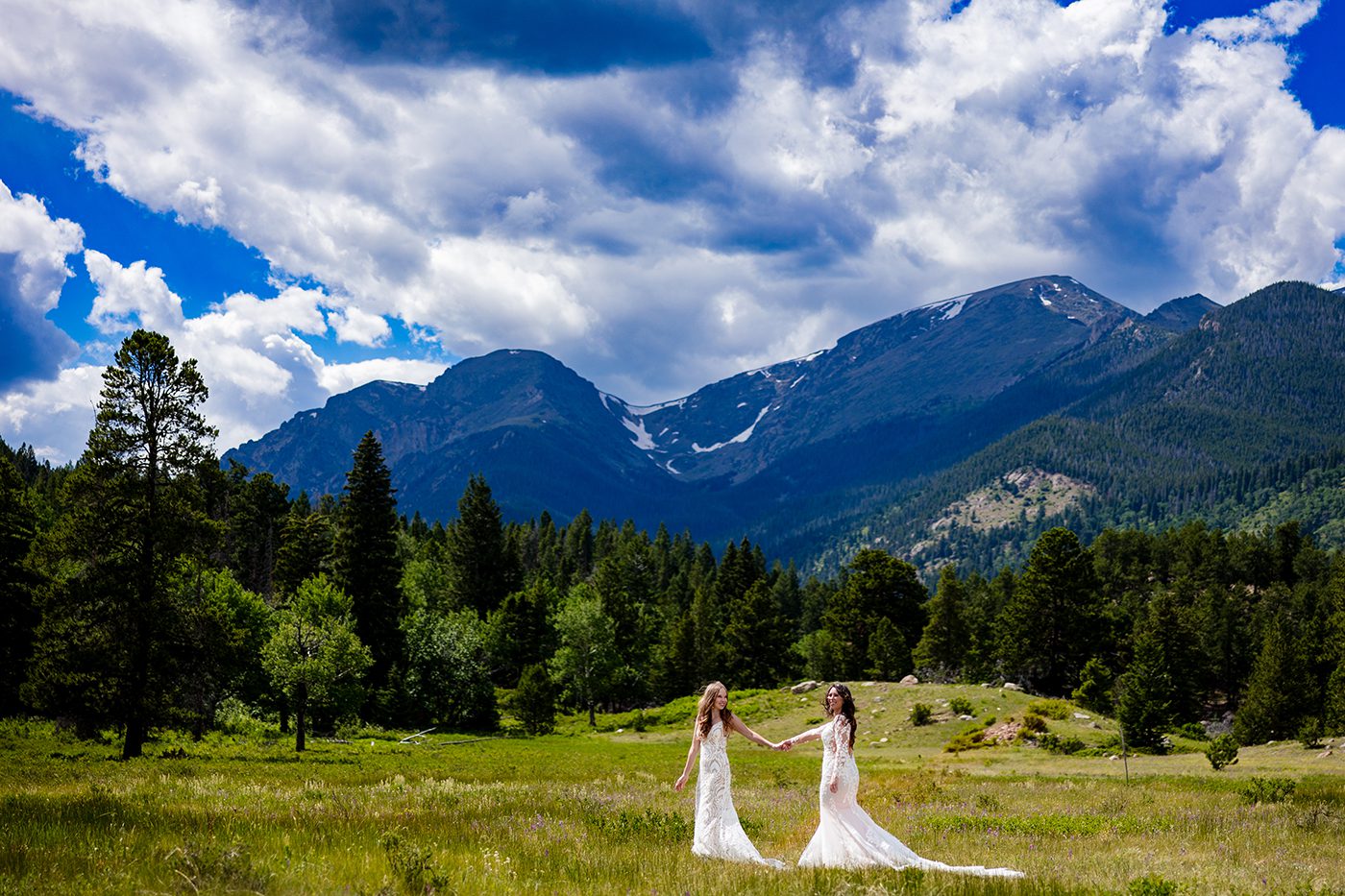 Estes Park wedding photographer capturing Sofia & Emily’s Colorado mountain wedding with Rocky Mountain National Park portraits, Greek traditions & heartfelt moments.