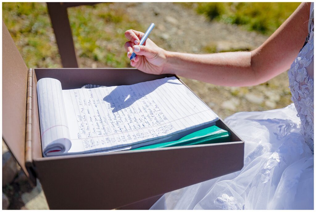 Only pack what you’ll use elopement wise. Your marriage certificate, letters from loved ones, etc. Don’t pack a bunch of large extra weight. If you have something like a large book that includes letters from family – I recommend building time into our day at the Trailhead either before or after our hike to do items that will be adding a lot of extra weight.
