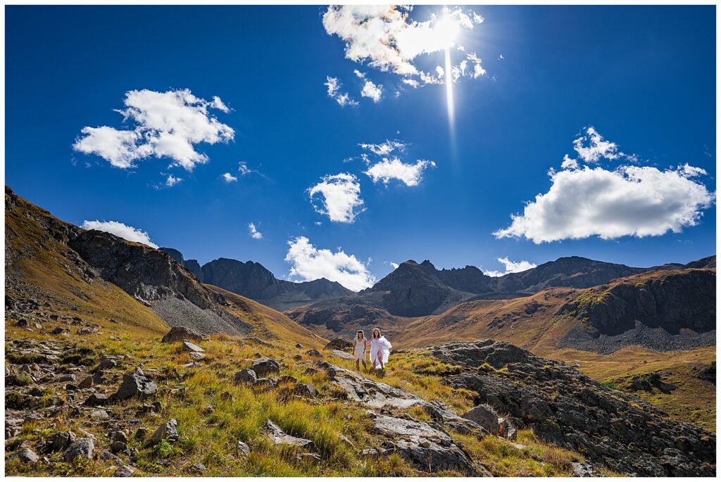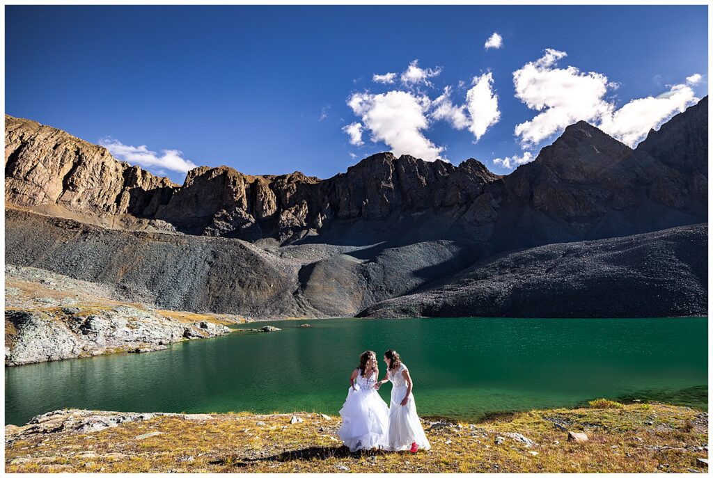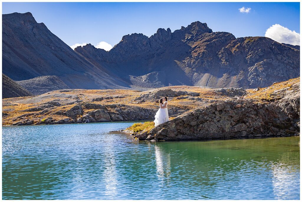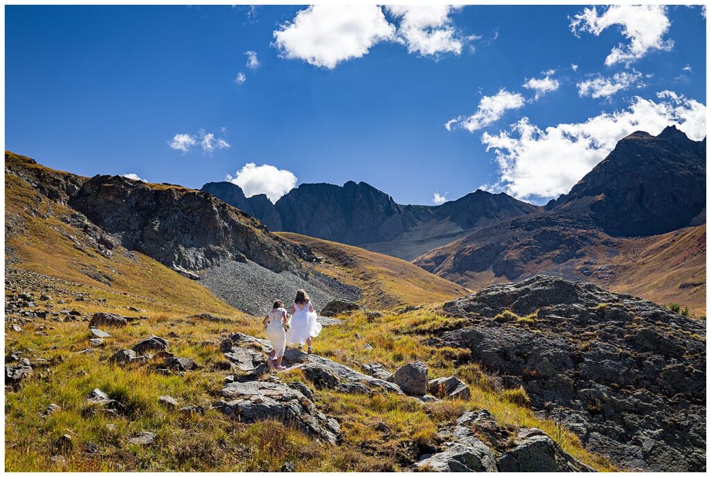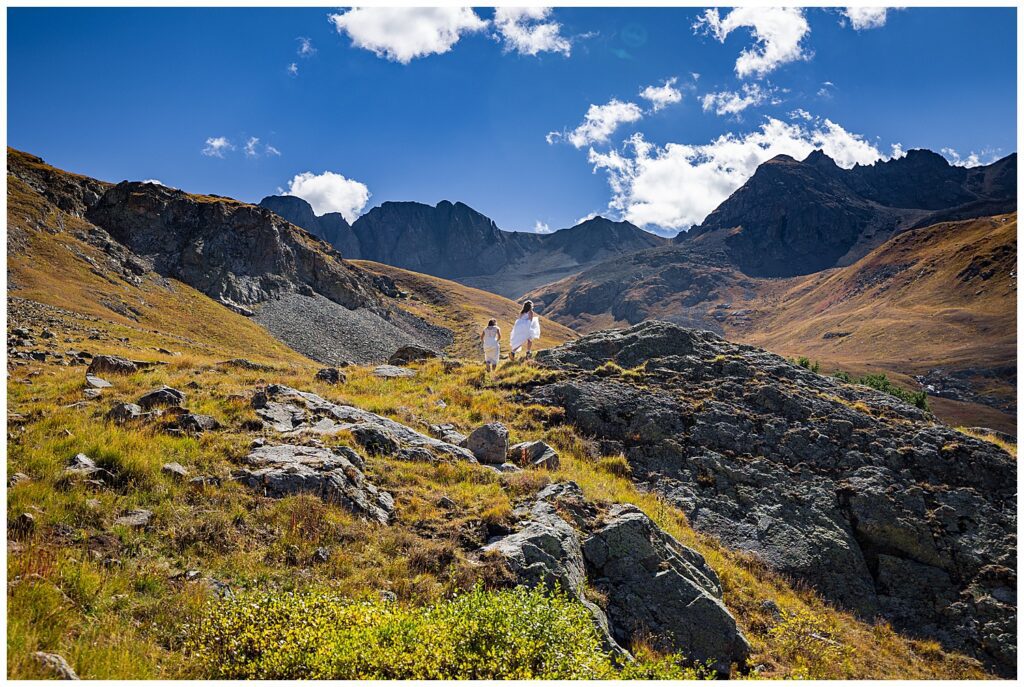 Jeanne and Ges knew that they wanted to do an elopement just the two of them on a mountaintop, followed by family and friends joining them for a reception dinner elsewhere afterwards. Ges is a mountain runner, and knew that Handies Peak would be perfect for their 14er elopement.