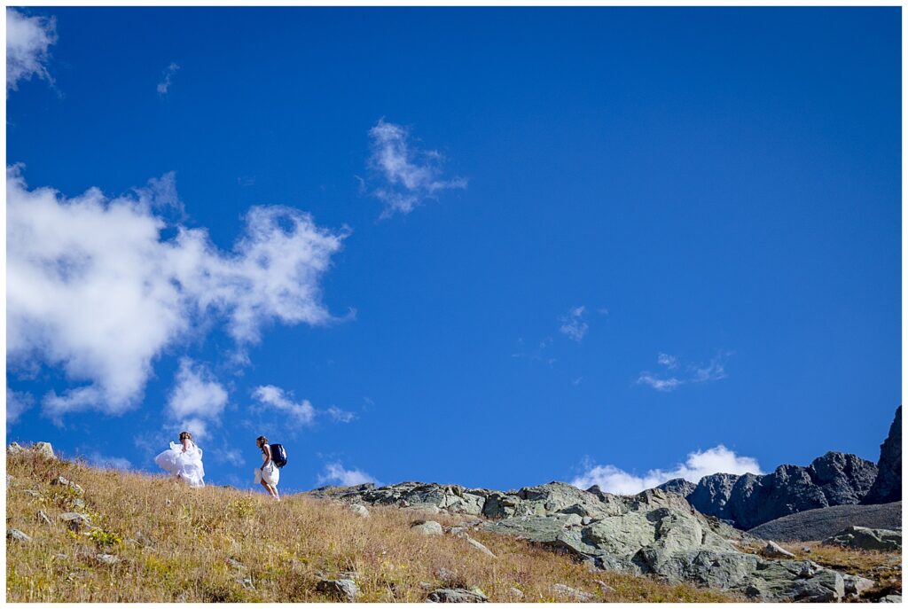 Having a pack large enough to comfortably fit all the needed equipment is one of the first considerations you should make while planning any hiking elopement. At some point – wether that’s on the way up the mountain or down – your wedding attire will likely be packed away in your pack.