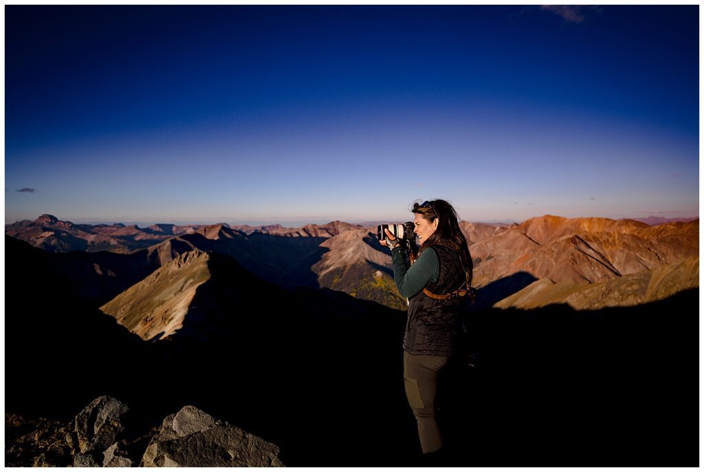 Just before the final pitch to the summit, there’s a tiny overlook that’s become one of my favorite spots on the entire trail. I photographed an elopement up on Handies Peak back in 2020 (my first summit of the peak) – and this was our first stop for photos. Since then, I’ve always stopped at the lookout point to gaze across the San Juan mountains and towards Silverton, Ouray, and Telluride.
