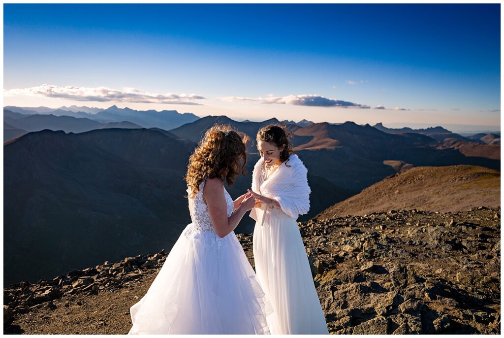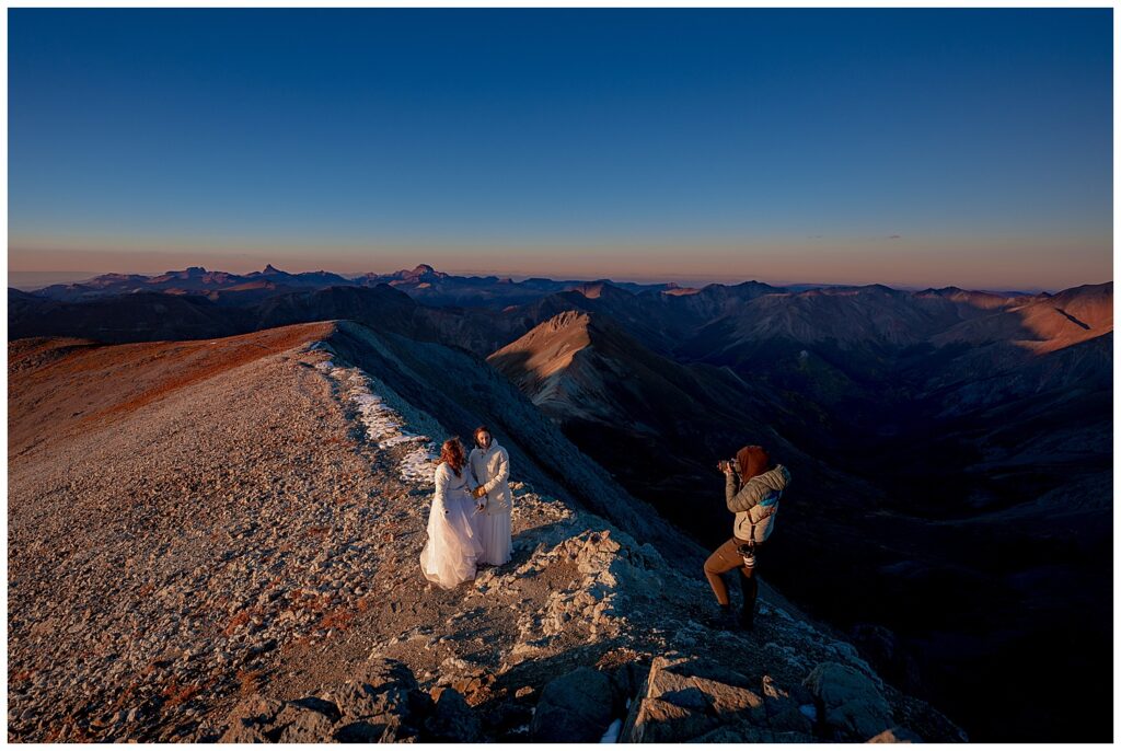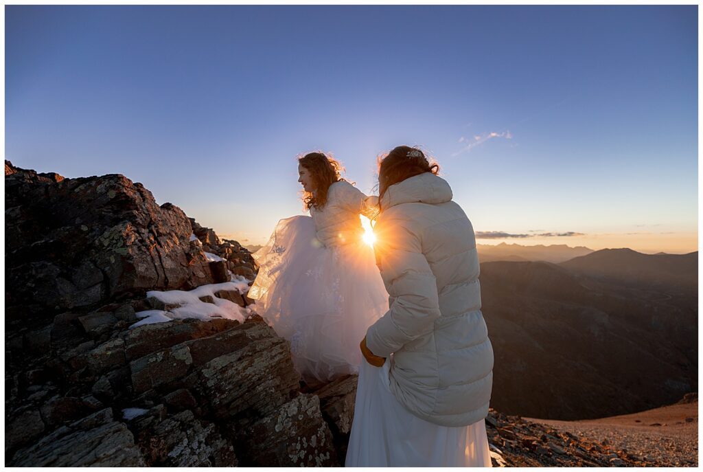 For Ges and Jeanne’s elopement – we originally planned a sunrise summit. After much debate and thought around making it to their reception in Denver on Saturday – we made the call to look at a sunset summit on Friday as long as the weather looked to be safe. We lucked out and got some of the most mild and amazing shoulder season weather – especially considering neighboring mountains had received up to a foot of snow a few days prior.