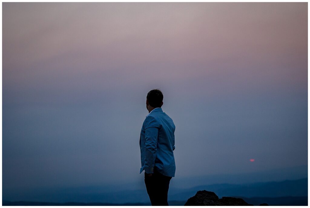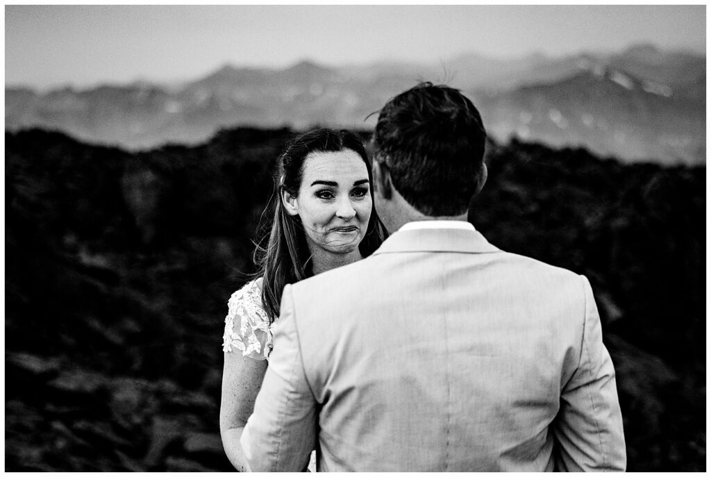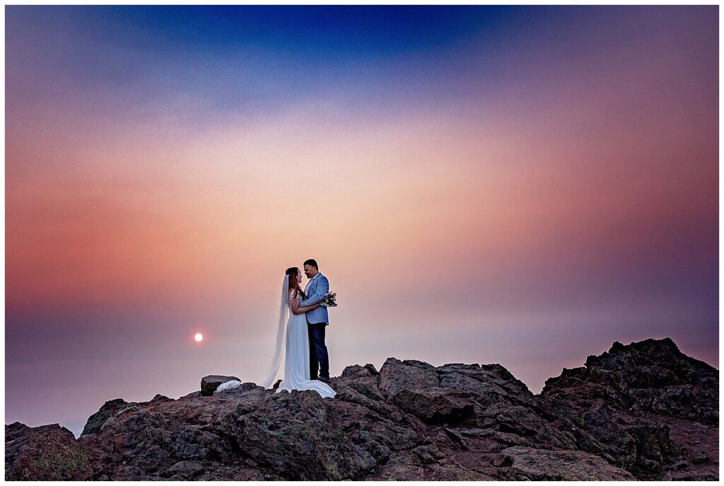 Just as the red sun began to break the smoky horizon, Brittany and Patrick found a spot amongst the rocks to say their vows to one another.