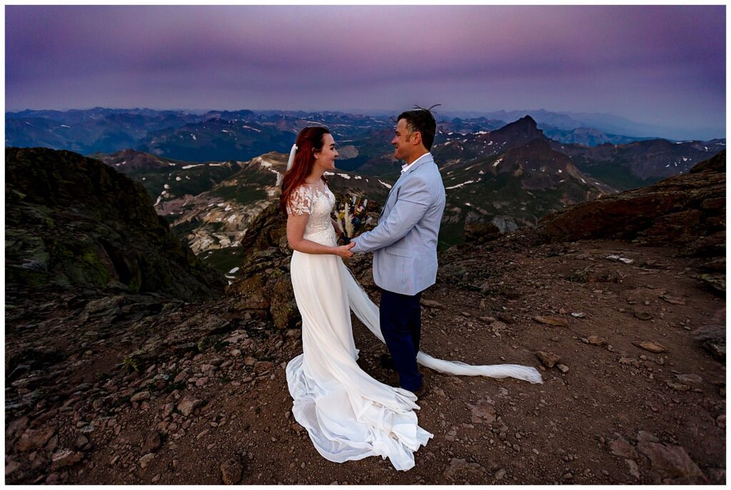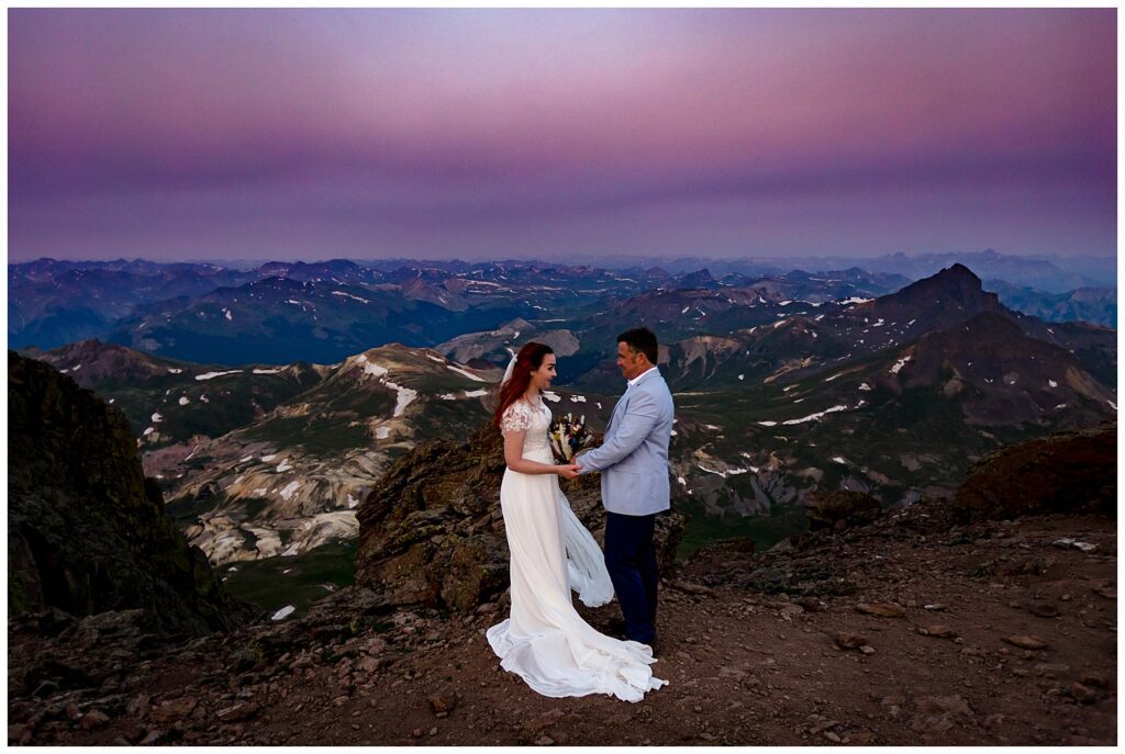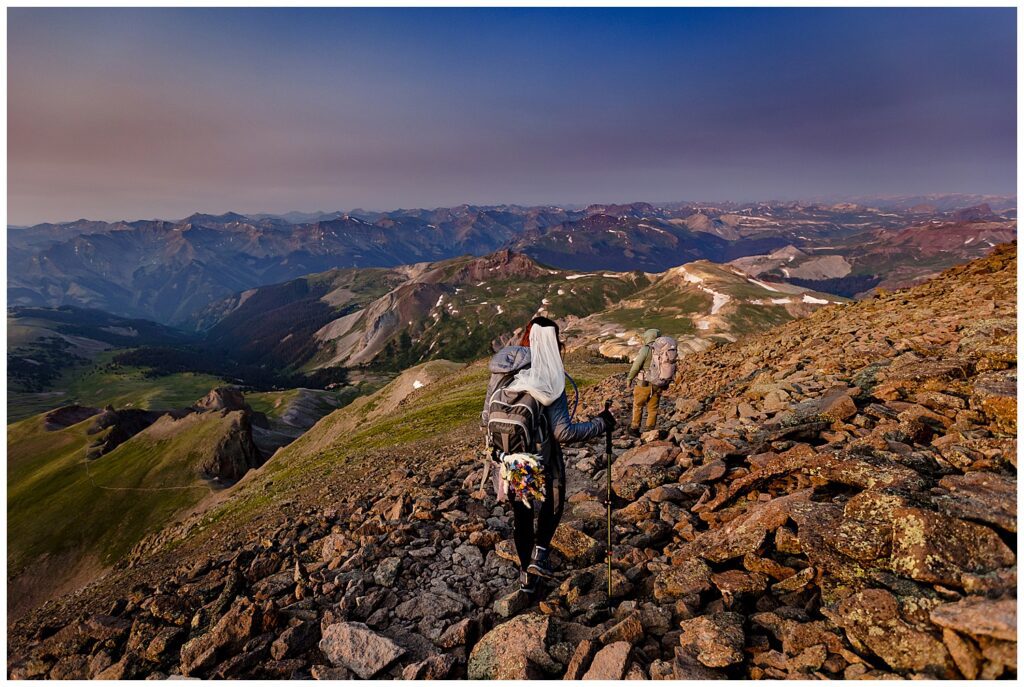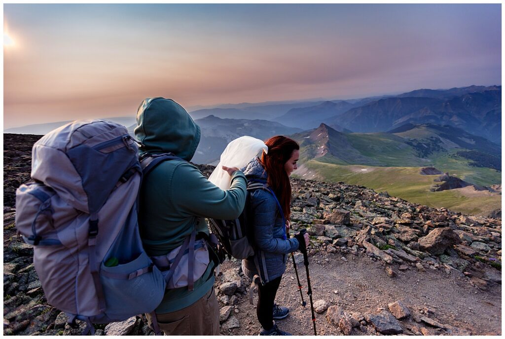 We all met up the evening before Brittany and Patrick’s elopement to set up camp at the upper parking lot, with a 1:00am alarm for our 3.5 mile hike up to the summit of Uncompaghre Peak in the dark.
