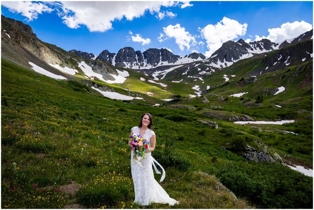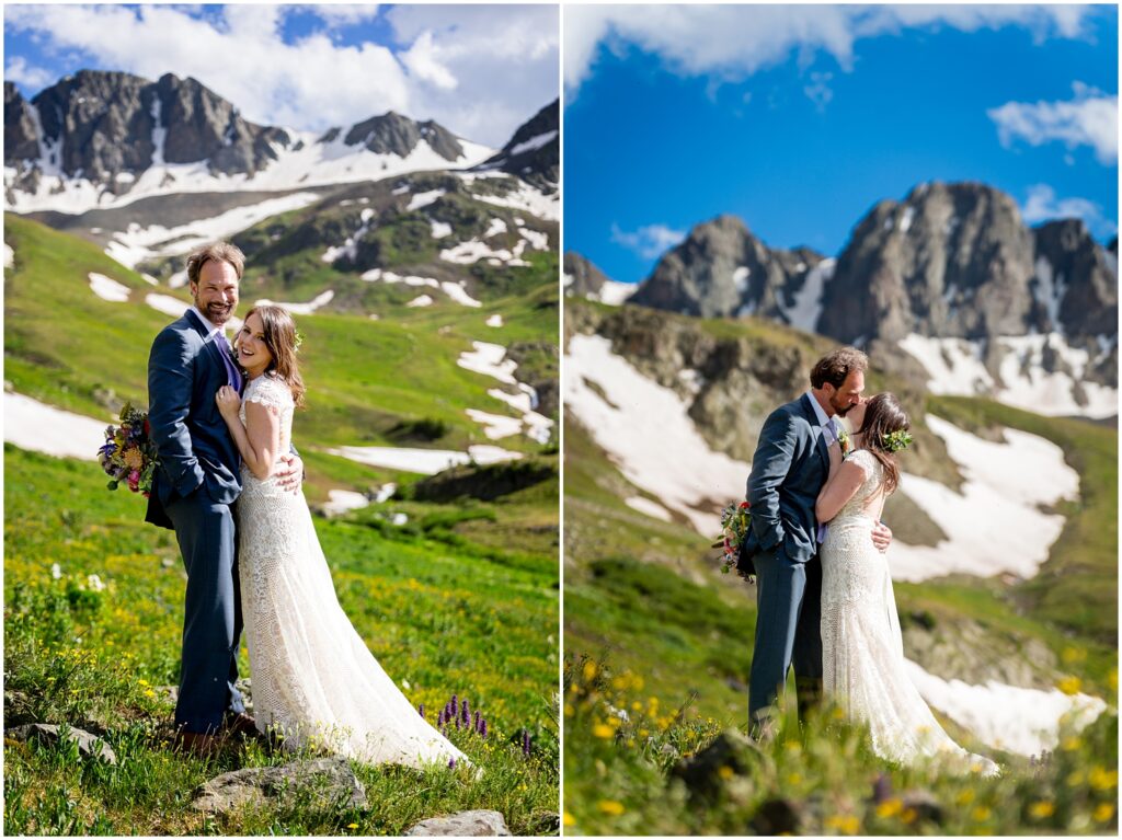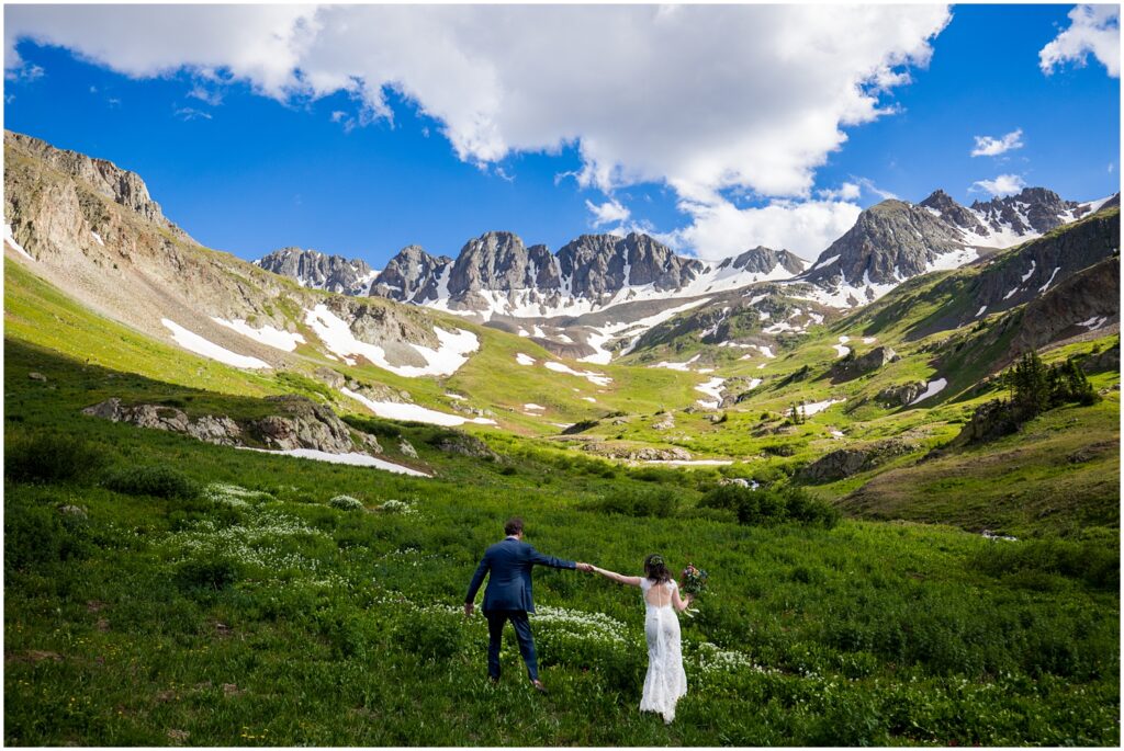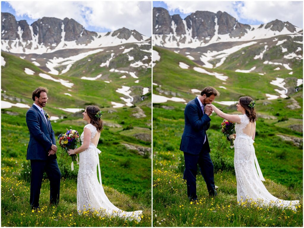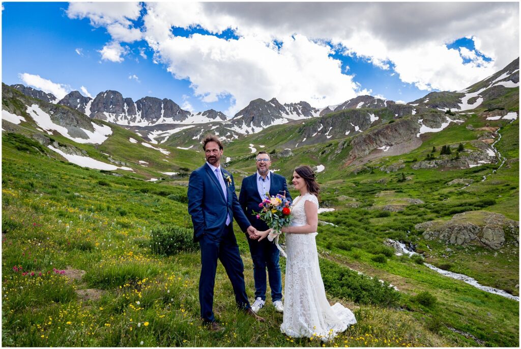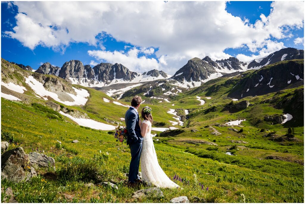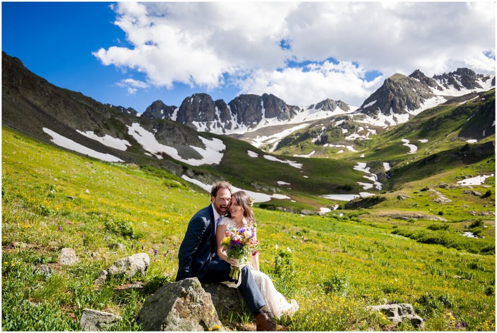 Upon arriving at American Basin, Kelly and Michael found themselves surrounded by a sea of wildflowers in full bloom. The vibrant colors of nature provided a picturesque setting for their intimate ceremony. As a Colorado elopement photographer, I was in awe of the natural beauty that enveloped us, making every shot a work of art.
