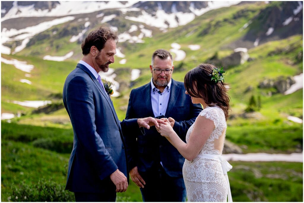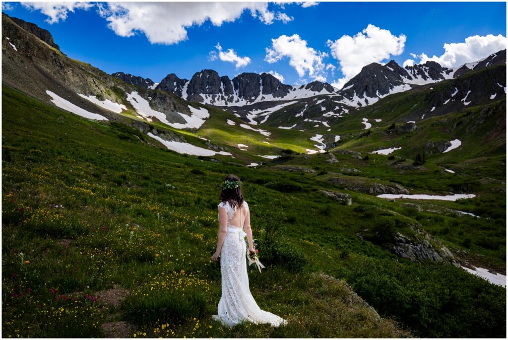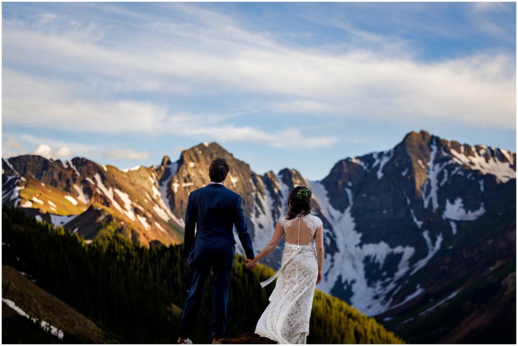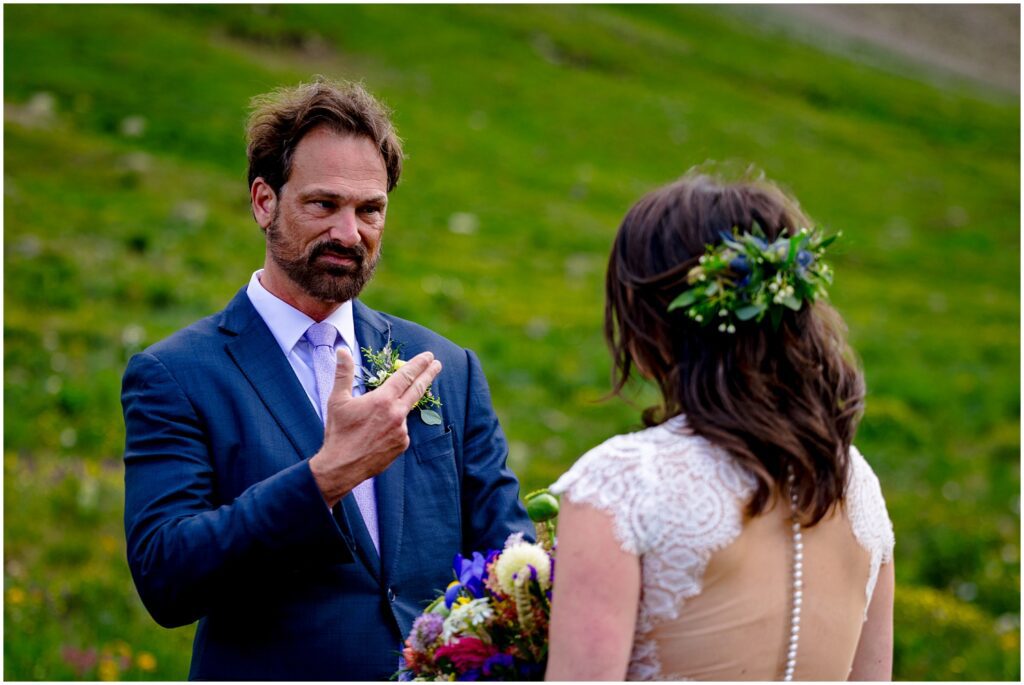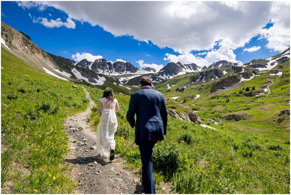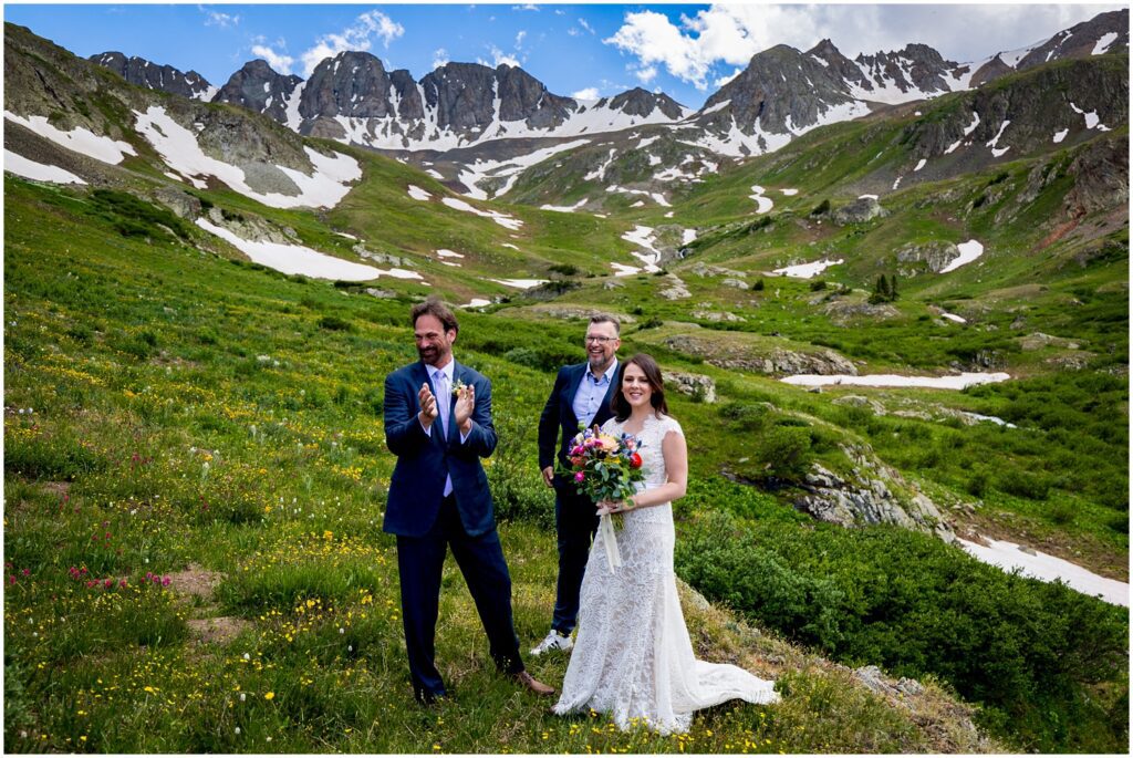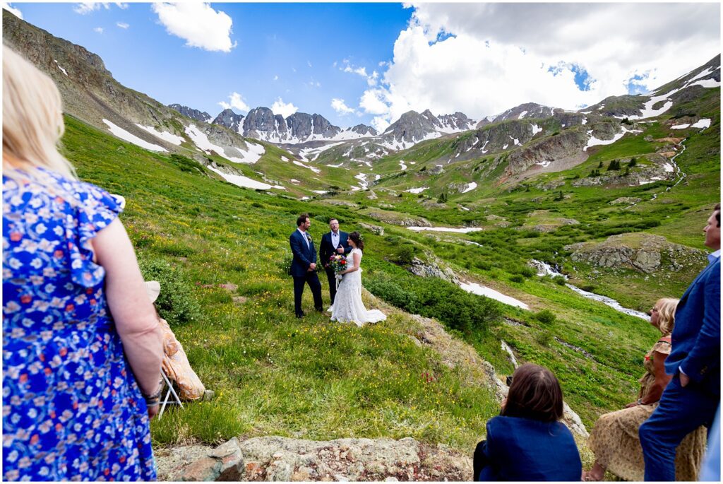Upon arriving at American Basin, Kelly and Michael found themselves surrounded by a sea of wildflowers in full bloom. The vibrant colors of nature provided a picturesque setting for their intimate ceremony. As a Colorado elopement photographer, I was in awe of the natural beauty that enveloped us, making every shot a work of art.