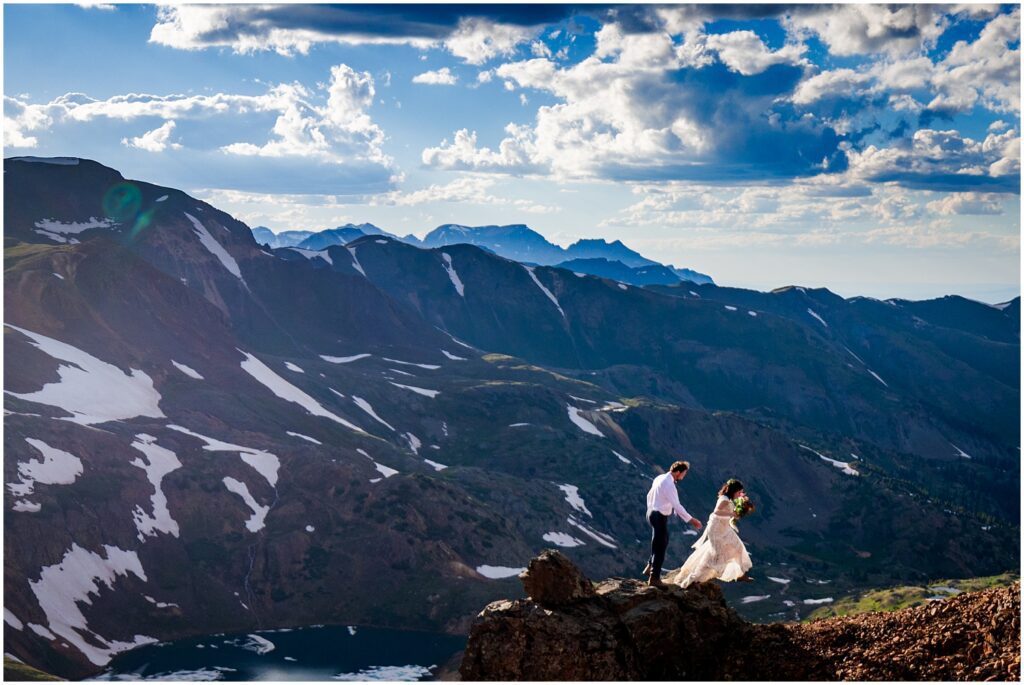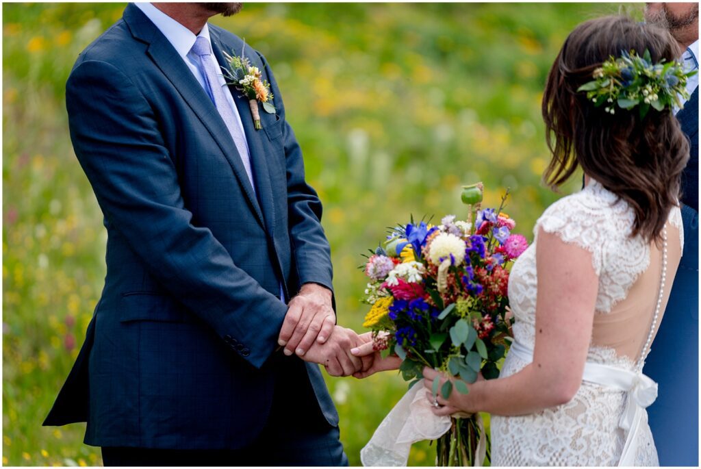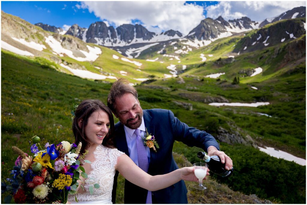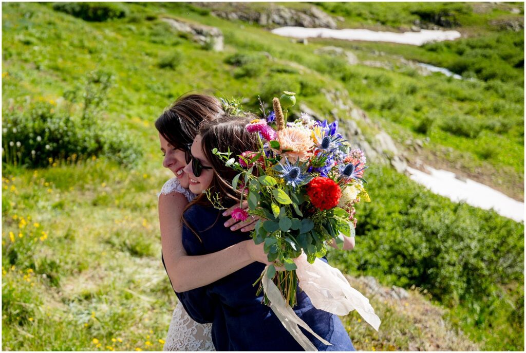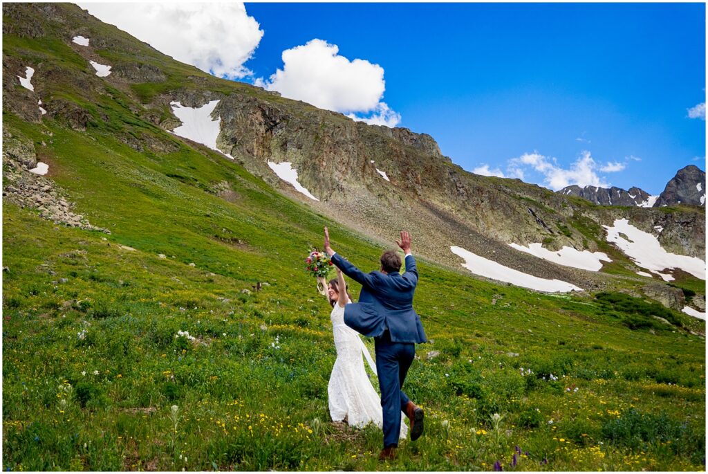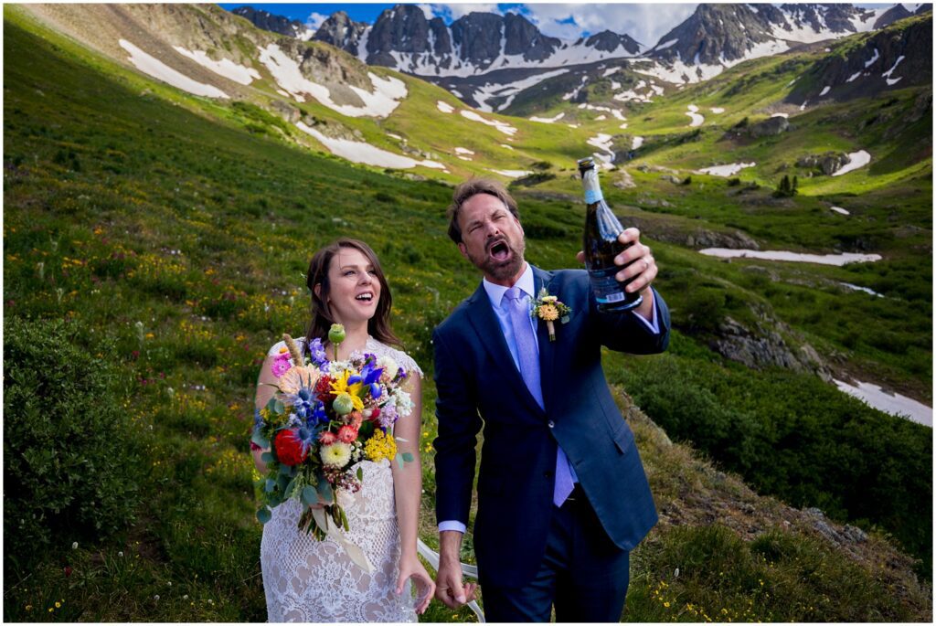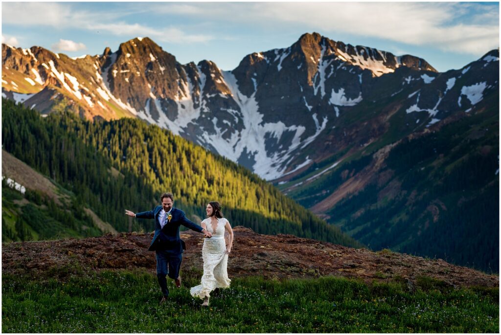 Upon arriving at American Basin, Kelly and Michael found themselves surrounded by a sea of wildflowers in full bloom. The vibrant colors of nature provided a picturesque setting for their intimate ceremony. As a Colorado elopement photographer, I was in awe of the natural beauty that enveloped us, making every shot a work of art.