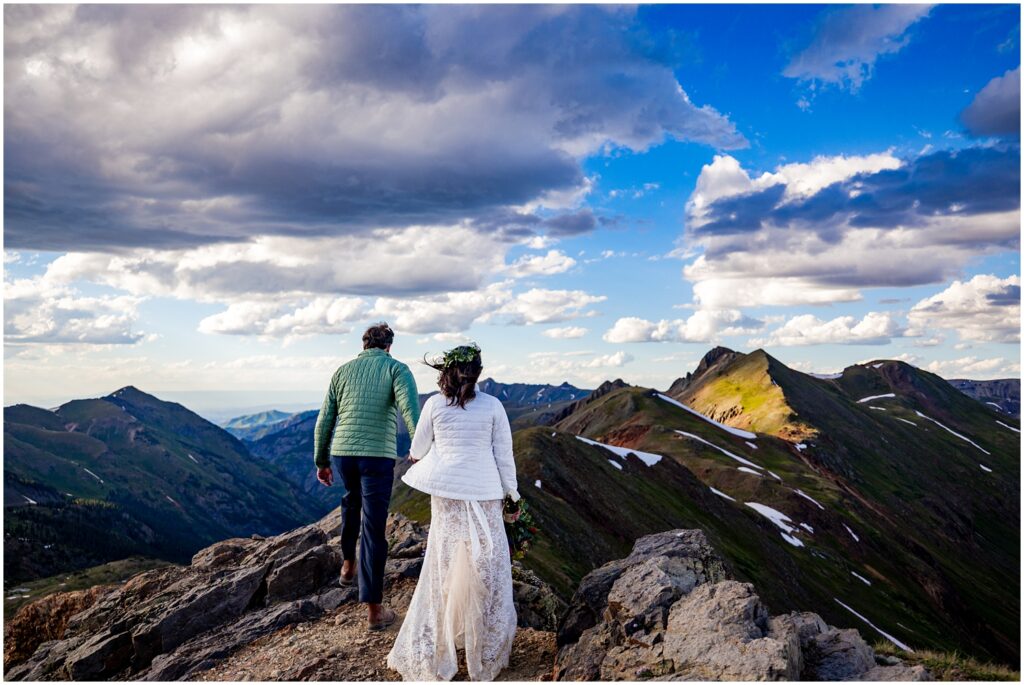 Kelly and Michael had a vision from the beginning of what they wanted for their intimate elopement in the mountains of Colorado. Back in the Day, Michael was a climbing guide out of Lake City, Colorado – guiding people on adventures in the San Juan Mountains. A few years prior to their elopement, Michael and Kelly came as a newer couple to climb (one of my very favorite peaks) Handies. It’s such an amazing 14er, and boasts one of the most photogenic trailheads in all of Colorado: American Basin.