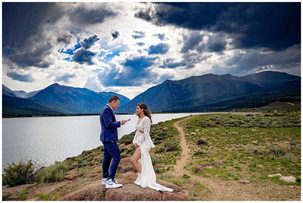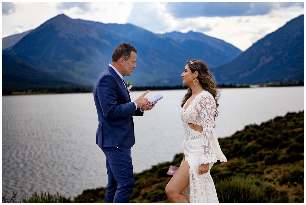 After their drinks, we hopped in my Jeep and headed over Independence Pass and got down into Twin Lakes. I had asked if they wanted a waterside ceremony, or more hillside and overlooking the Eastern lake. For the dramatic lake view (and the hope of less mosquitos), we headed to one of the overlooks for their intimate ceremony.