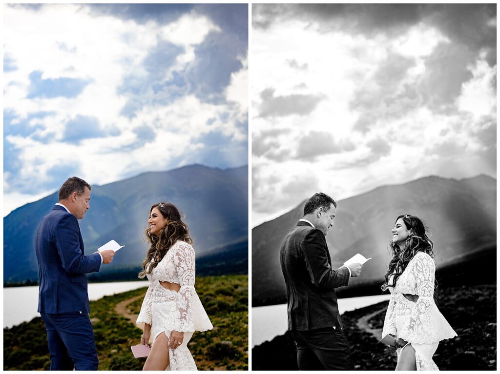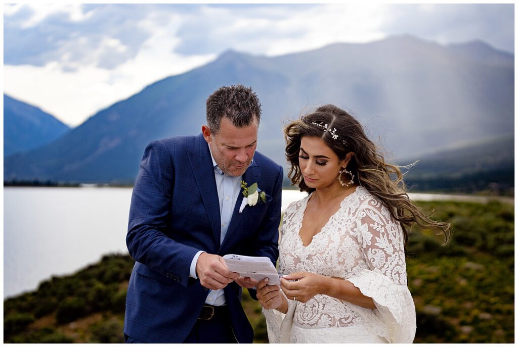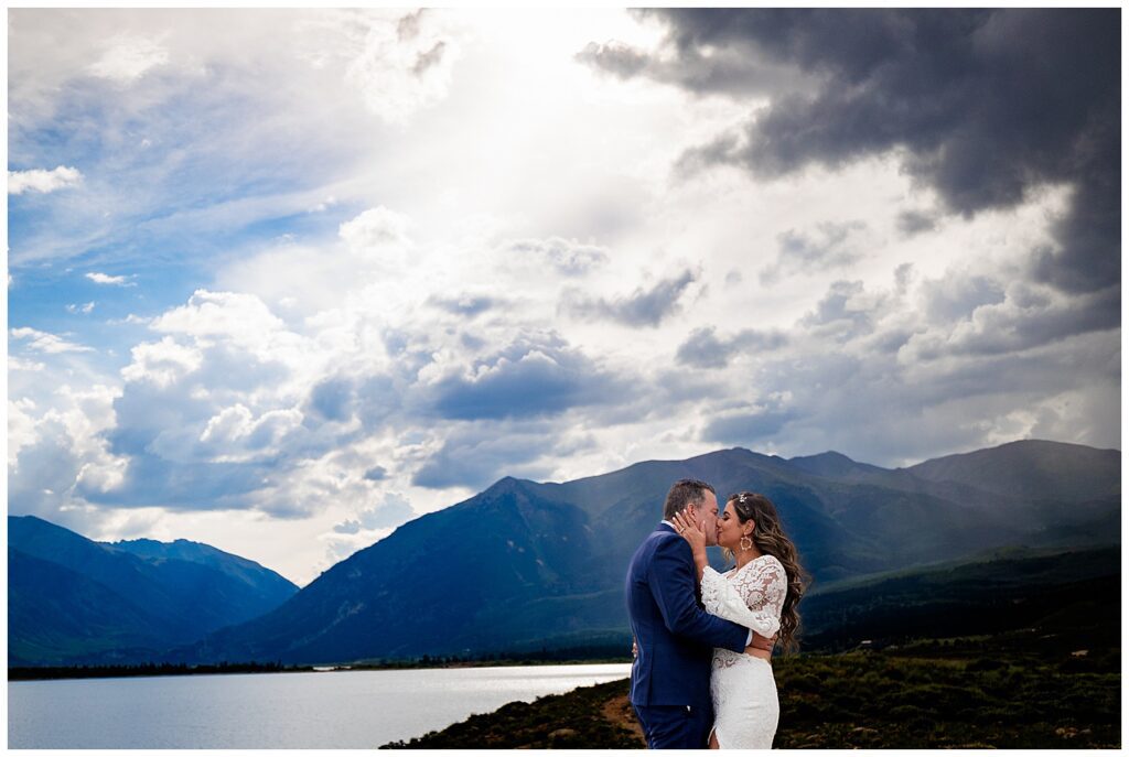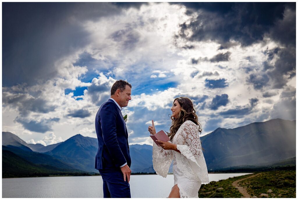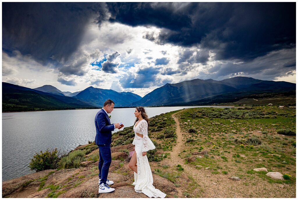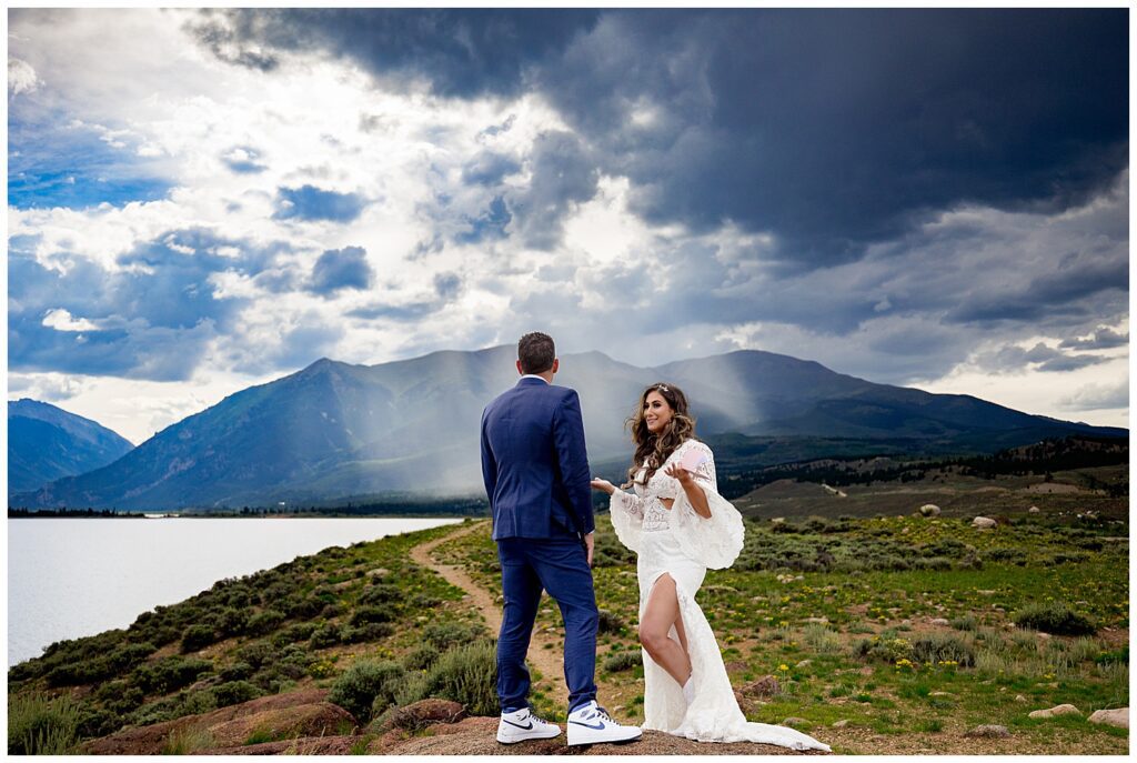 During the middle of their vows, the sky opened up and the sun began to peak out from behind the dark blue clouds – beaming light onto the distant peaks that surround Mt. Elbert. It was SO beautiful out, and there was an ever-so-light breeze in the air, just enough to create that perfect wind swept look.