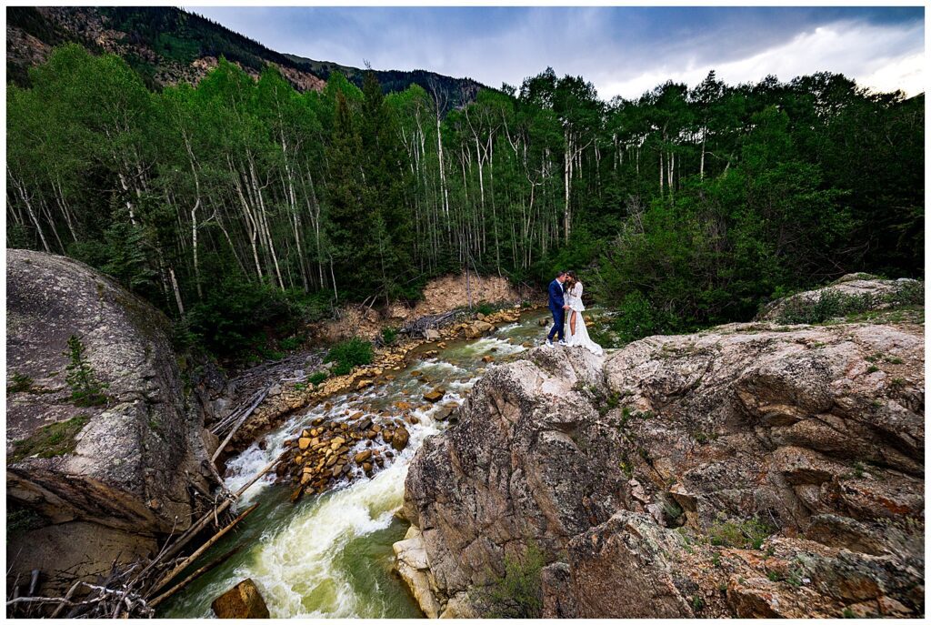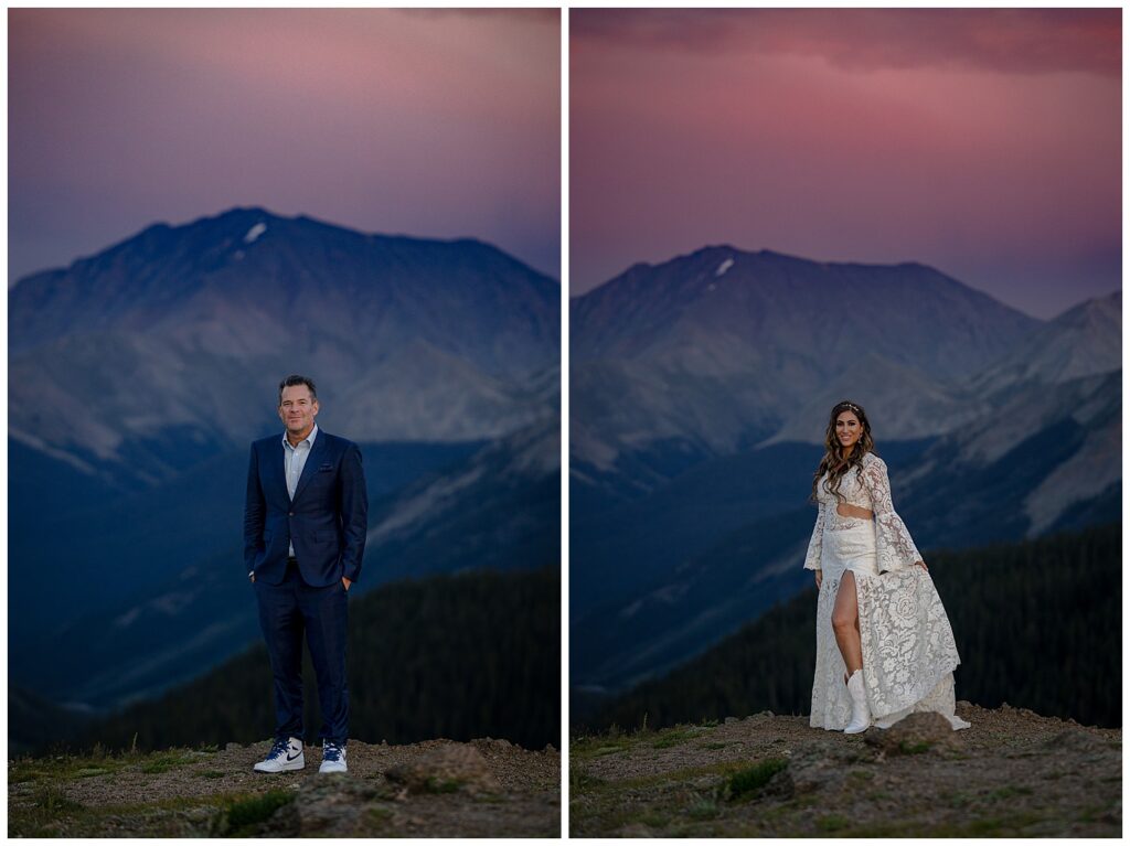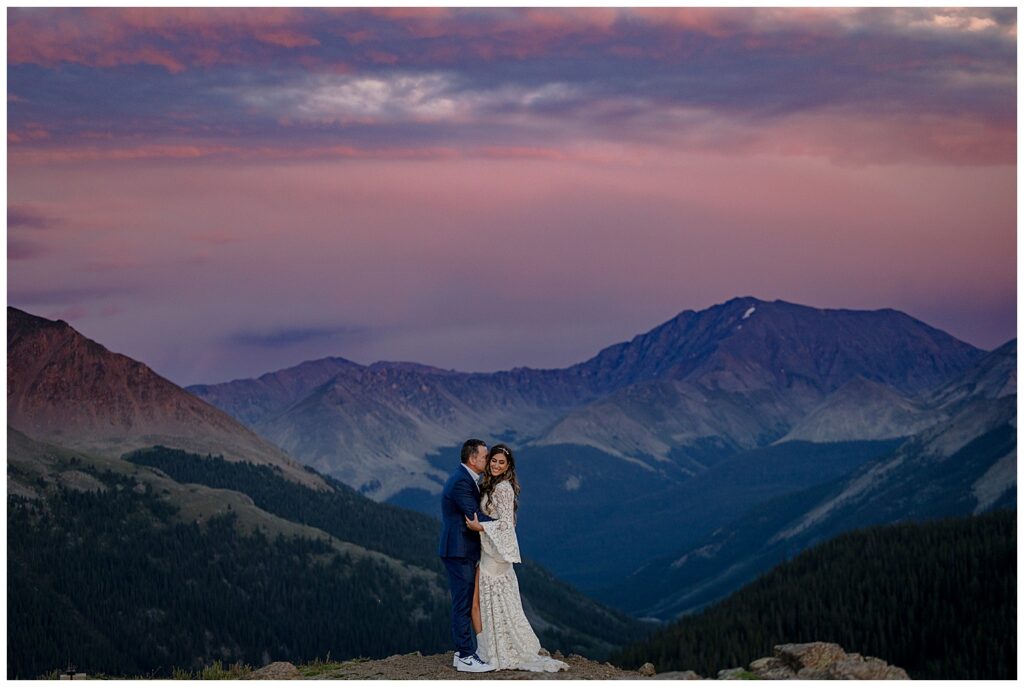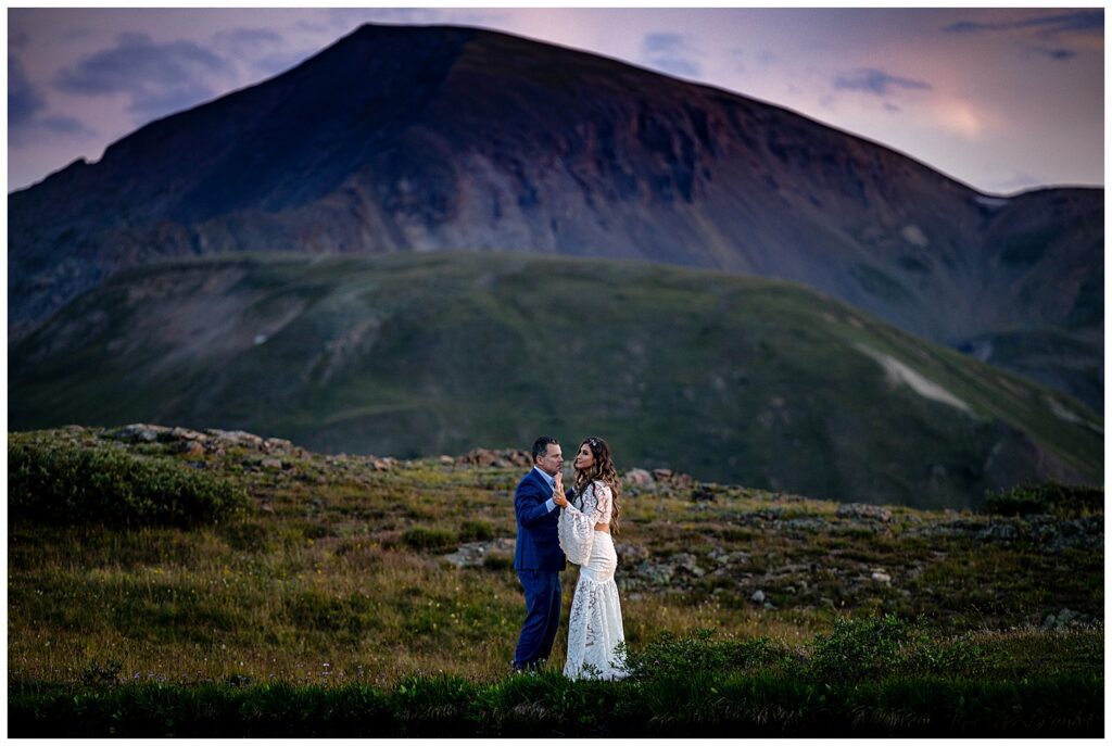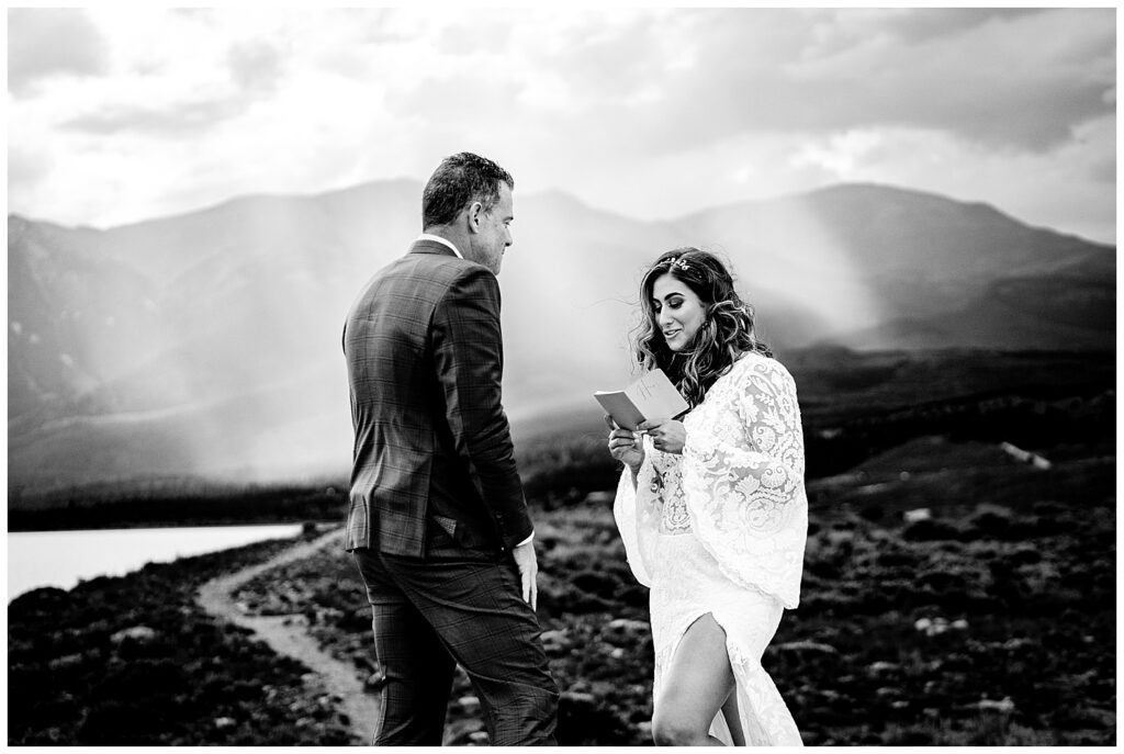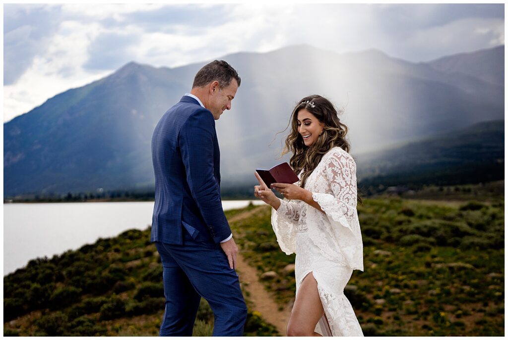 During the middle of their vows, the sky opened up and the sun began to peak out from behind the dark blue clouds – beaming light onto the distant peaks that surround Mt. Elbert. It was SO beautiful out, and there was an ever-so-light breeze in the air, just enough to create that perfect wind swept look.