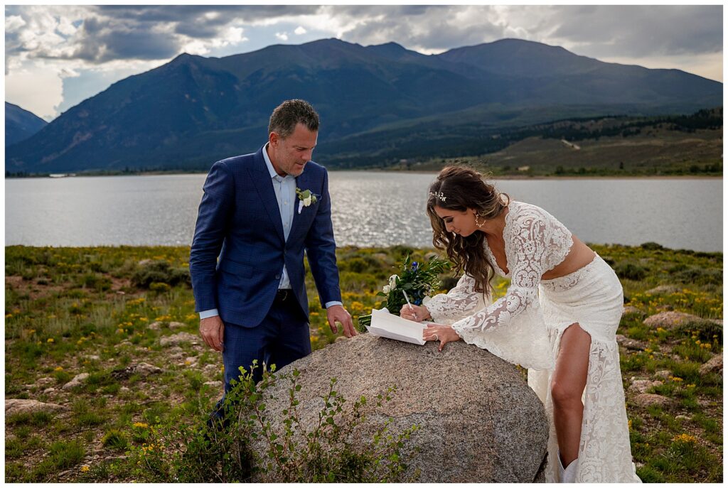 After their I-Dos, we found an awesome rock to sign their marriage license on. Yes, an awesome rock – my favorite way to sign your legal paperwork. We got the exact coordinates as their location – in the state of Colorado you can list your coordinates as the location of your wedding.