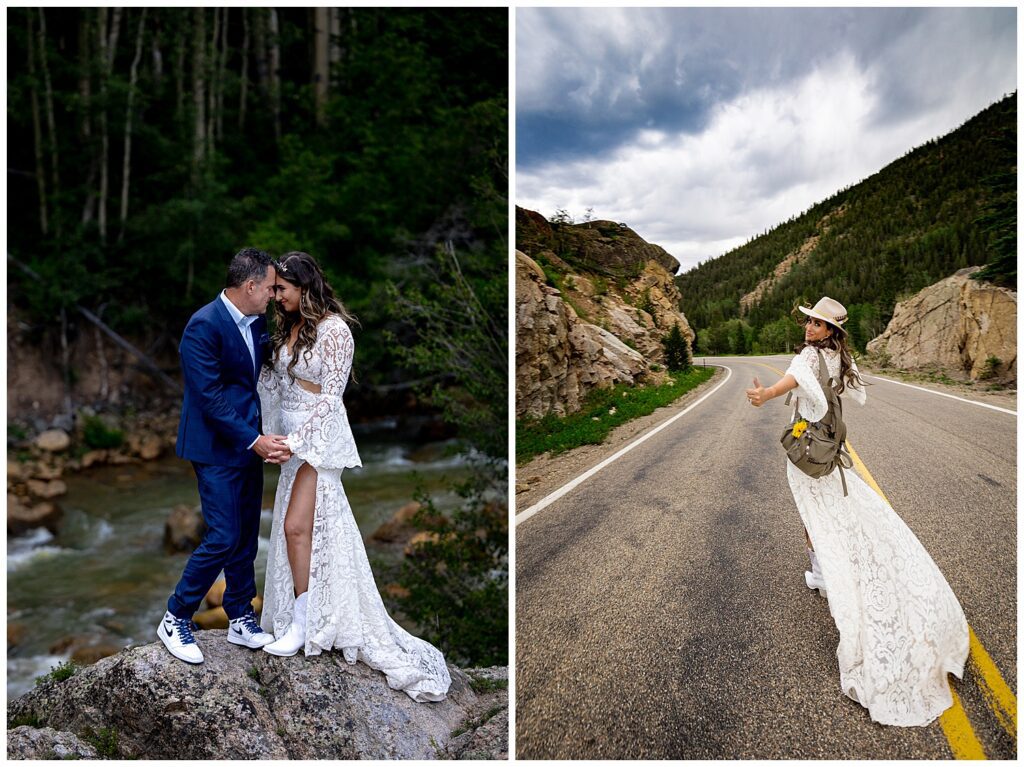 Our mountain summers can have afternoon thunderstorms, some weeks it rains every evening. Knowing that we’d be close to a vehicle the entirety of the elopement (there was no hiking involved), I felt comfortable moving forward with an evening wedding. We did a formal weather check roughly 48 hours before the elopement (I’m sure Lindsay checked much more than just that singular time 😉 ) and saw that our chance of rain had diminished to a mere 18%.