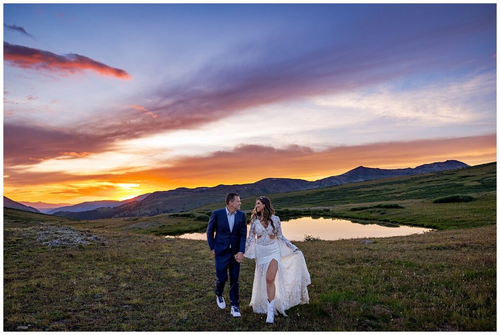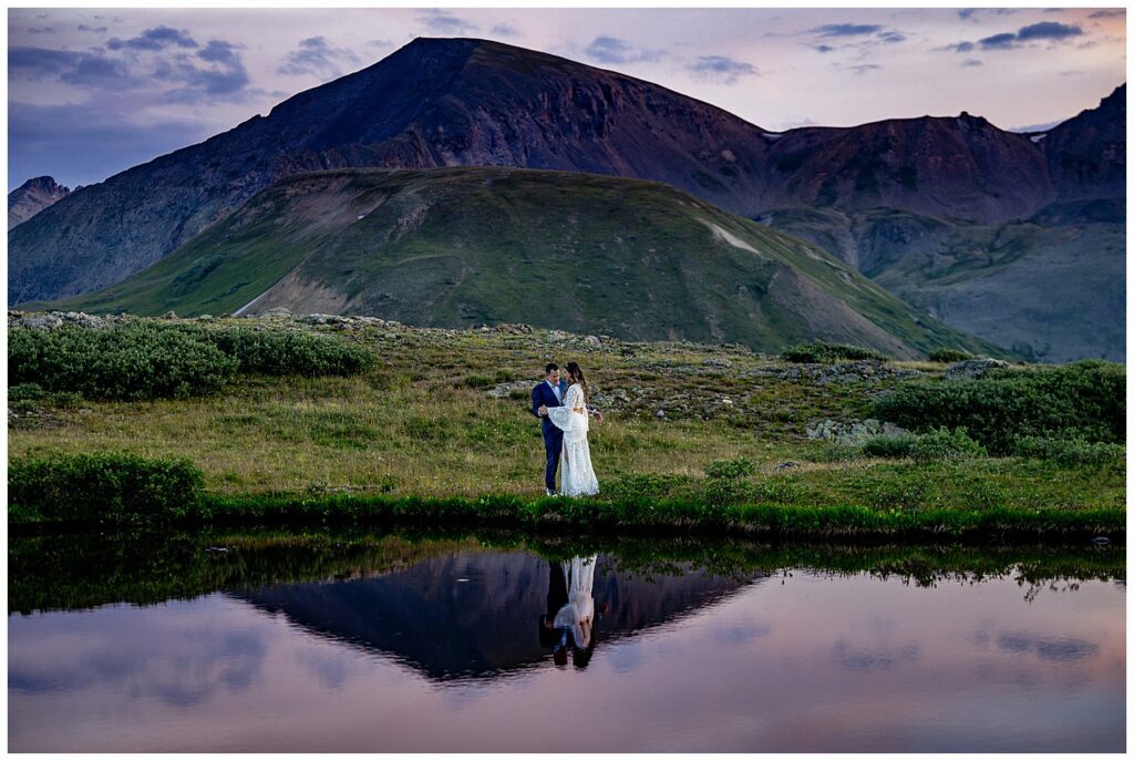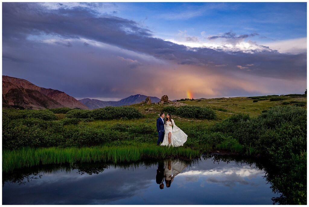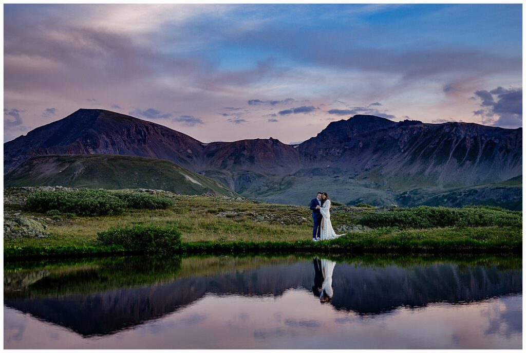 As the rainbow faded into the darkening skies, we headed over towards another lake where Lindsay and Andrew had their first dance together to a Fleetwood Mac song. Again – you can incorporate any aspects of a wedding day that you’d like to into your elopement! Having a first dance in the mountains with just the Pike and Marmots to watch is one of my favorite activities on an elopement day.