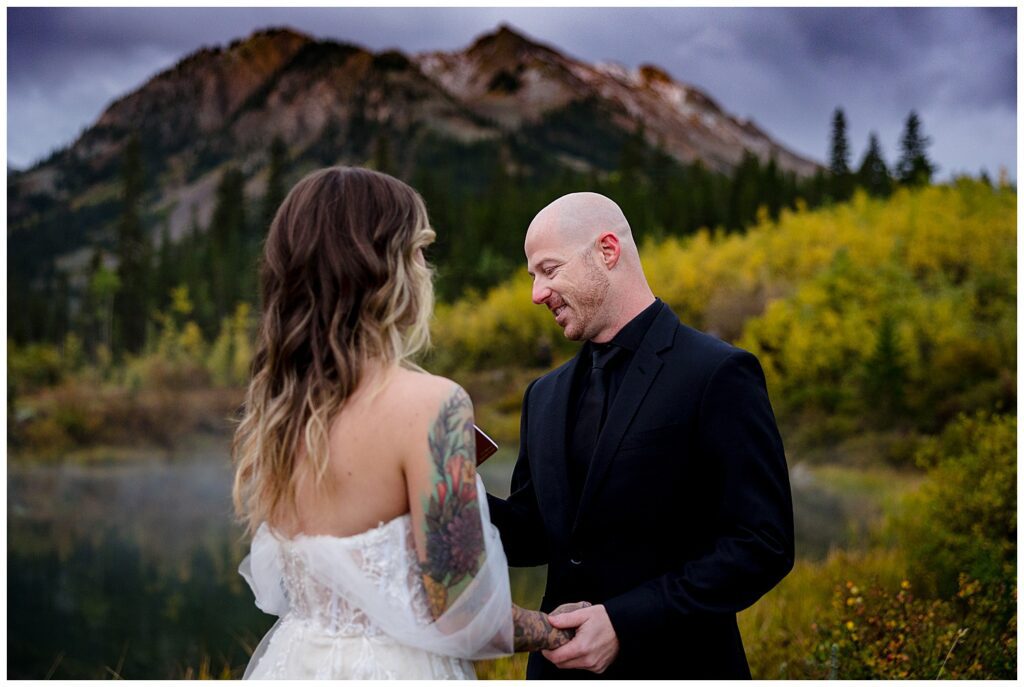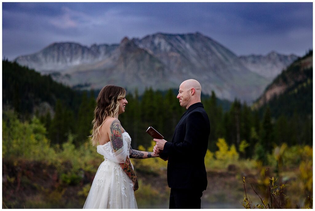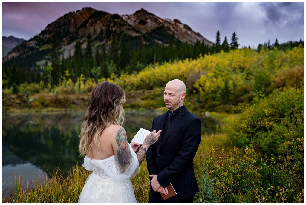 We met just before sunrise and headed up Castle Creek. We began on the opposing side of the creek to watch the sun rise over Star peak for their vows.