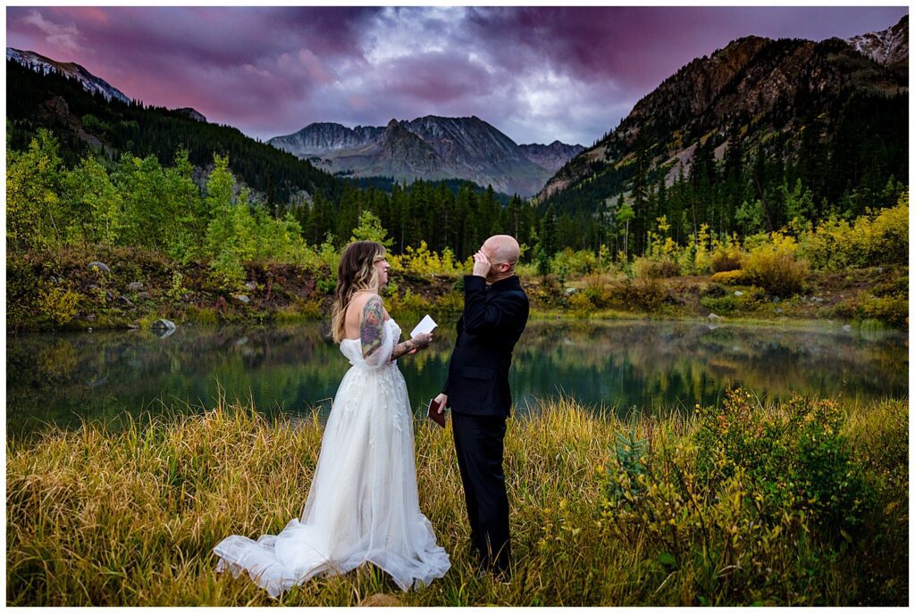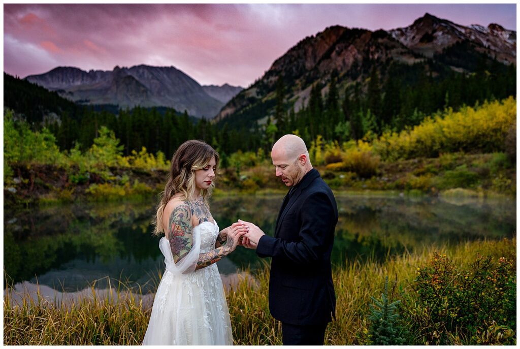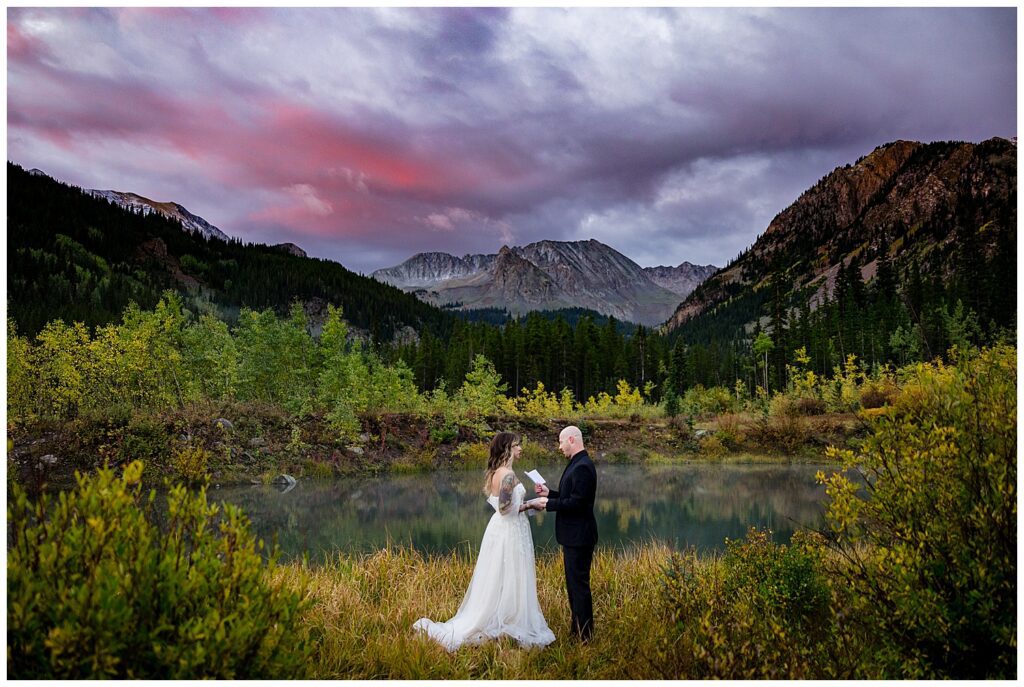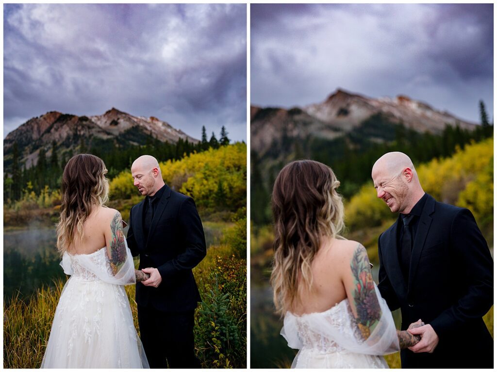 I always love when couples start our time together with their vows/ceremony – the lighting is typically absolutely stunning, the sun tends to come up and greet us at the most emotional and dramatic moment of your elopement day, and you get the “anxiety inducing” part of the elopement completed before adventuring around for portraits.