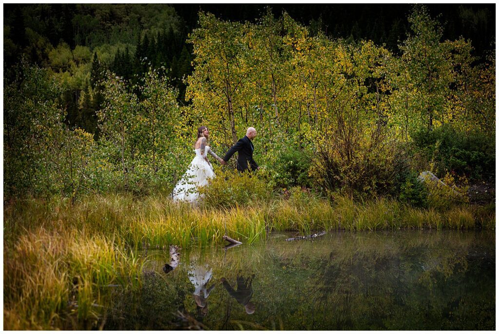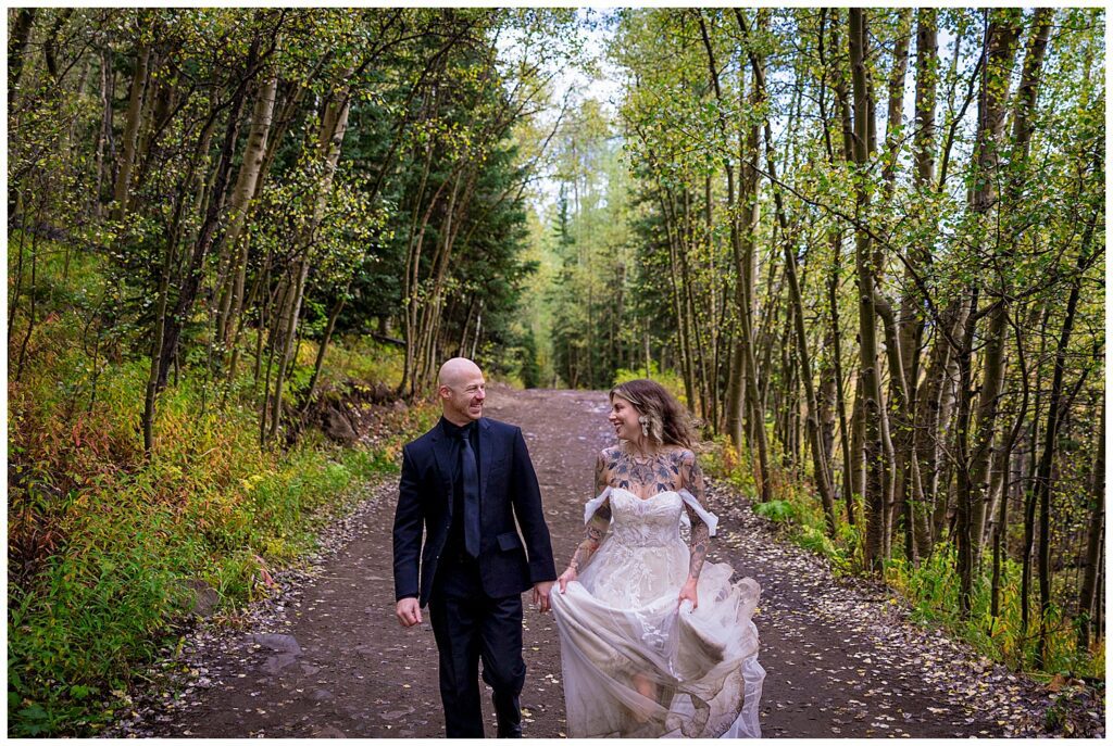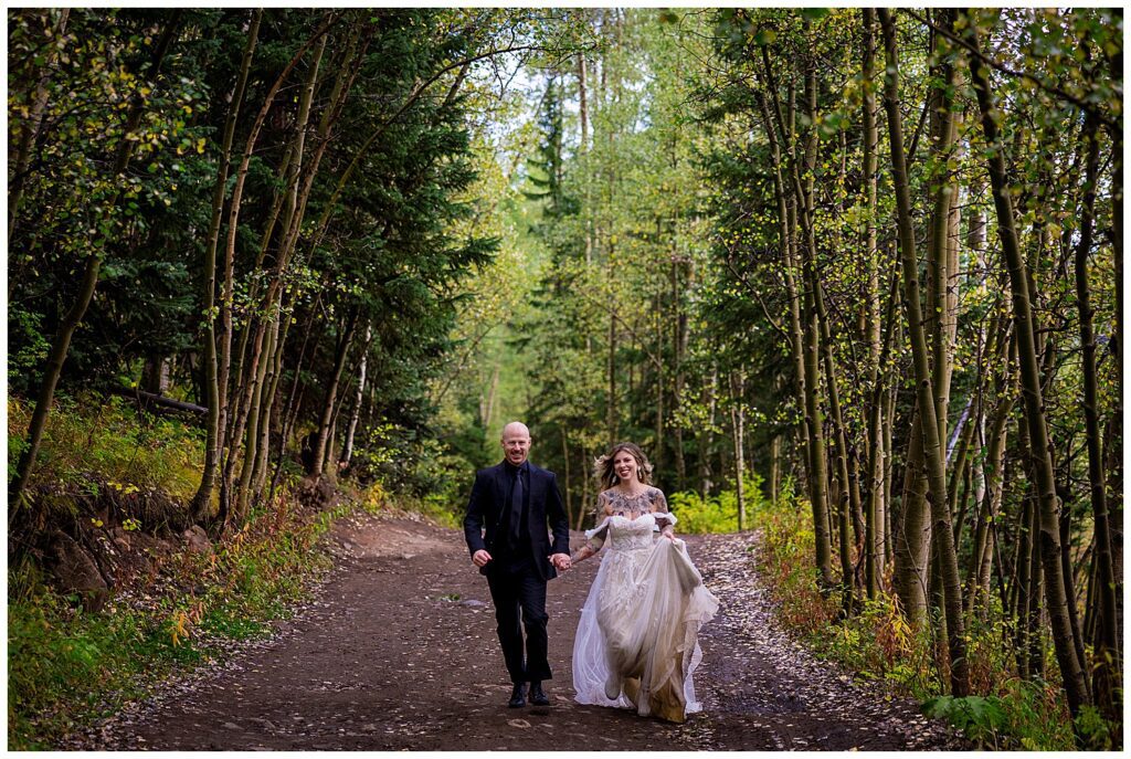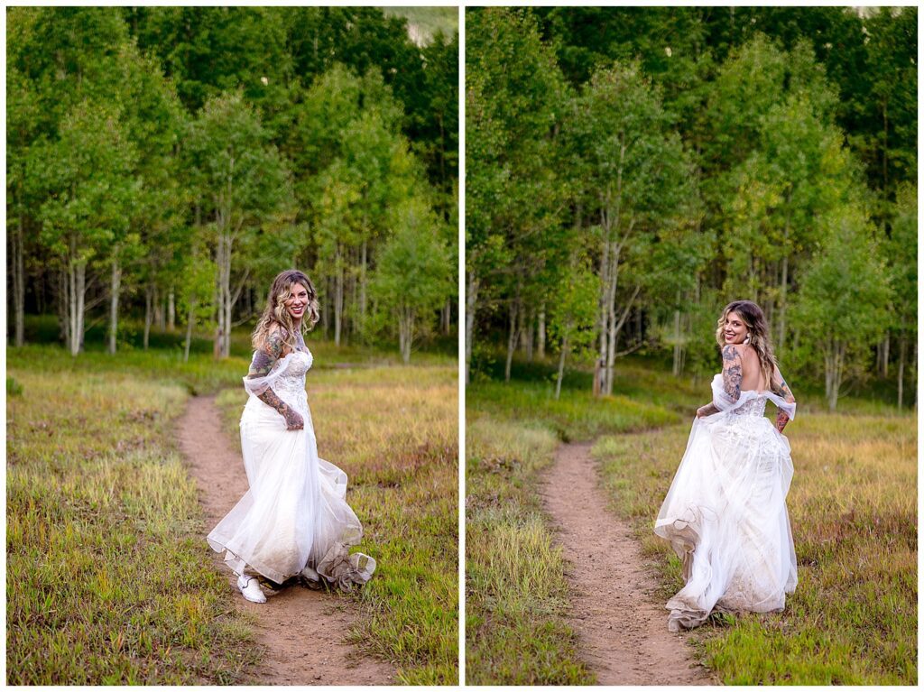 We headed down into the valley and towards Ashcroft – where we stopped in the most magical forest that ever did exist. I saw the skirts of Makenna’s gown swooshing as she walked – and we had some fun quite literally frolicking along the aspen-lined road.