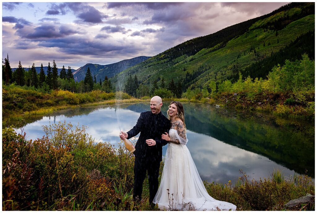 Makenna and AJ chose to elope just the two of them in the mountains tucked away in Aspen, Colorado. AJ flys private jets and has flown in and out of Aspen’s airport looking down at all the mountains from above. When they were deciding what kind of wedding day to have – they looked at what was important to them as a couple. They wanted privacy, to spend time together in a place that had access to mountains as well as great food, and a place they could drive their awesome Porsche for the weekend.