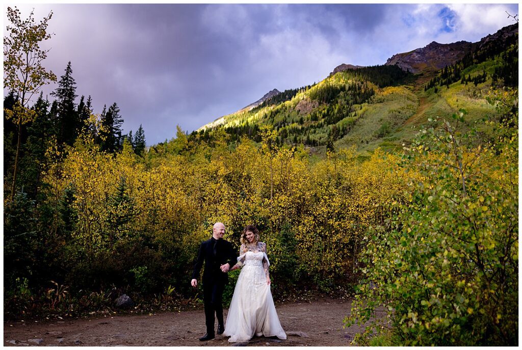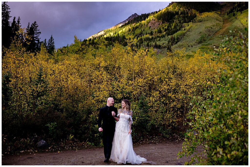 As with many couples, Makenna and AJ looked first to the Maroon Bells for their Aspen elopement. As beautiful as the bells are (definitely worth a visit as a human being) – the area can be crowded, particularly in fall, and new a new permitting system was put into place in 2020 requiring reservations for anyone entering via. Maroon Road in a vehicle regardless of what time you’re looking to enter. The permits go FAST – many dates were sold out within a few hours, if not minutes, of when they were released in the previous April.