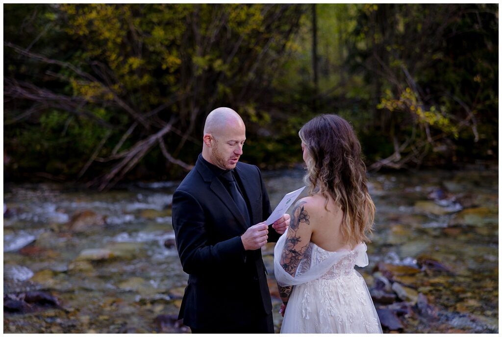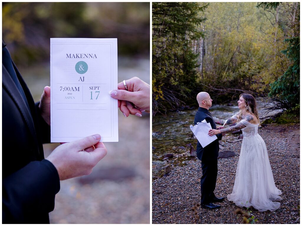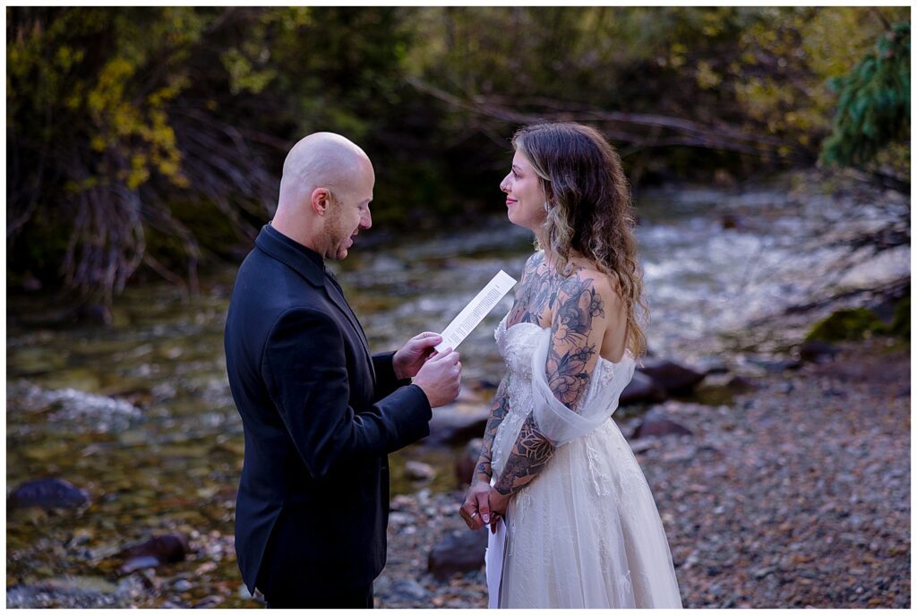 Another part of their elopement day consisted of reading letters that their parents wrote them alongside the aptly named Castle Creek. I love seeing the personalities of parents shine through their letters – Makenna’s mother had sent a handwritten note, while AJ’s dad had a fully designed paper including the location, date, and it’s own manilla envelope.