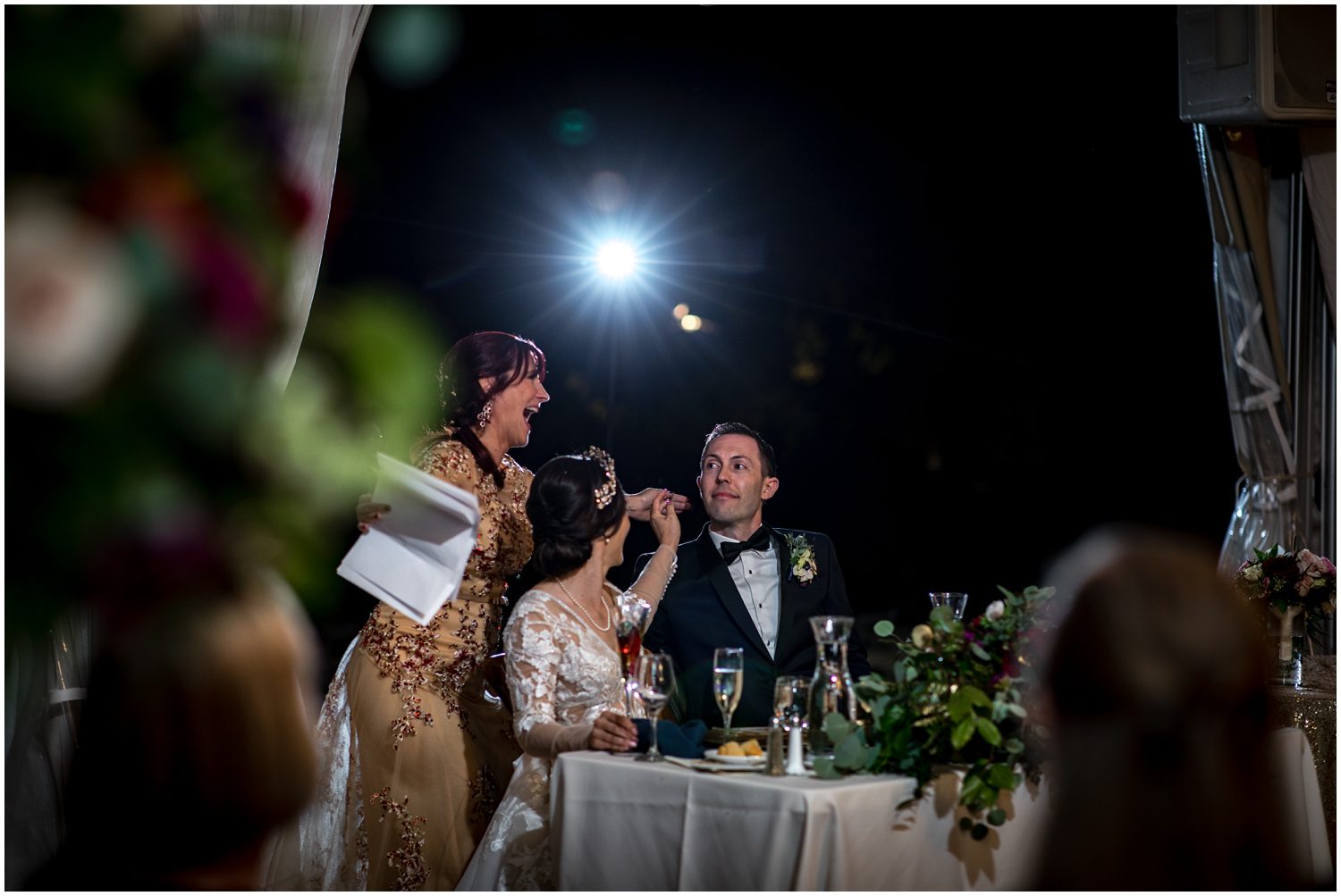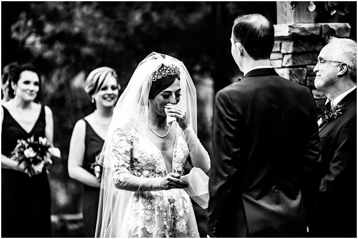 Once ceremony time came, I knew that we’d be in for some tears, as well as humor. One of my favorite parts looking back through the ceremony photographs is the look on Rachel’s mother’s face looking at Keith as her daughter approached the aisle – a very loving “look at how beautiful she is” gaze. After toughing speeches amongst the lovely fall foliage, some dry humor, and lots of touching moments – Rachel and Keith proudly walked down the aisle as man and wife.