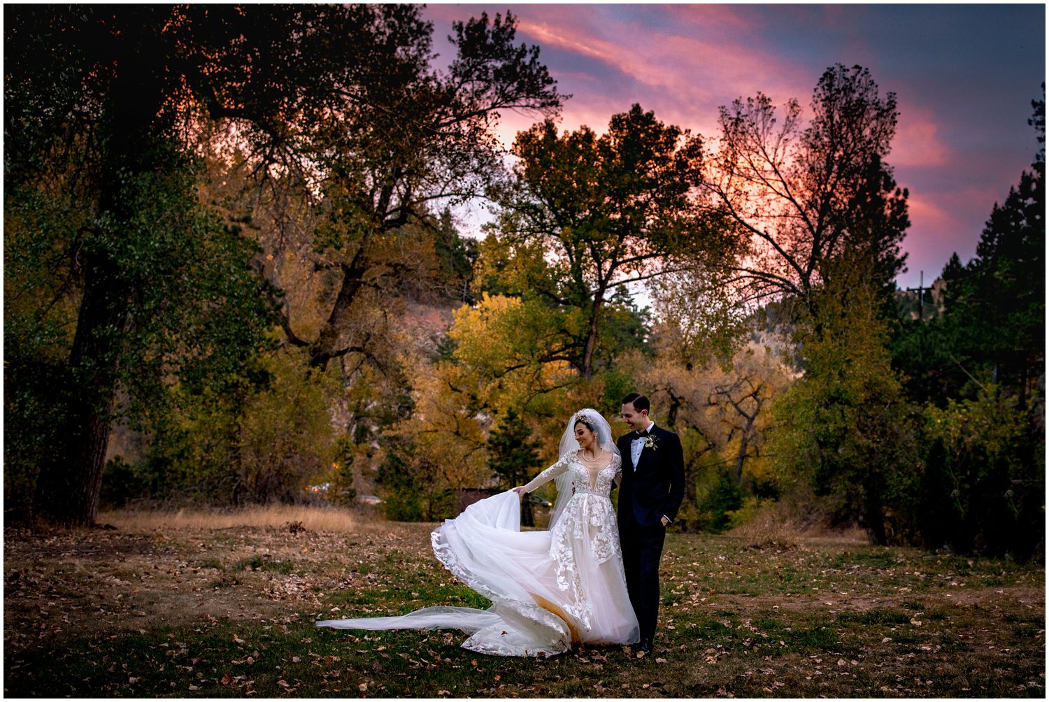 Fall foliage was something that was important to Rachel, and we fortunately got the surprise of an early fall this past year. Though the trees weren’t at peak, we did get unexpected colors of reds and a few yellows. We took full advantage of this for Rachel and Keith’s couple’s portraits. We headed down to the creek, and with the cloudy skies I thought we’d be SOL for a sunset – I was WRONG on that front! Just as we were wrapping up portraits, the sun peeked out and the sky turned a beautiful pink color. It was a simply stunning way to end our “formal portraits” together.
