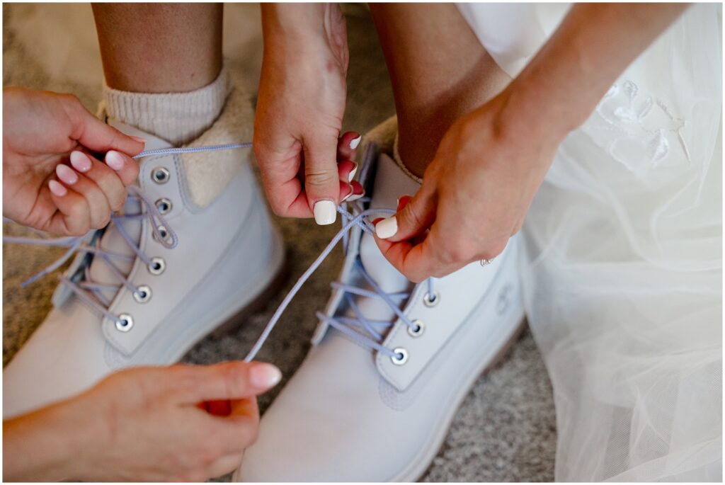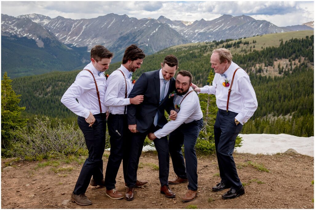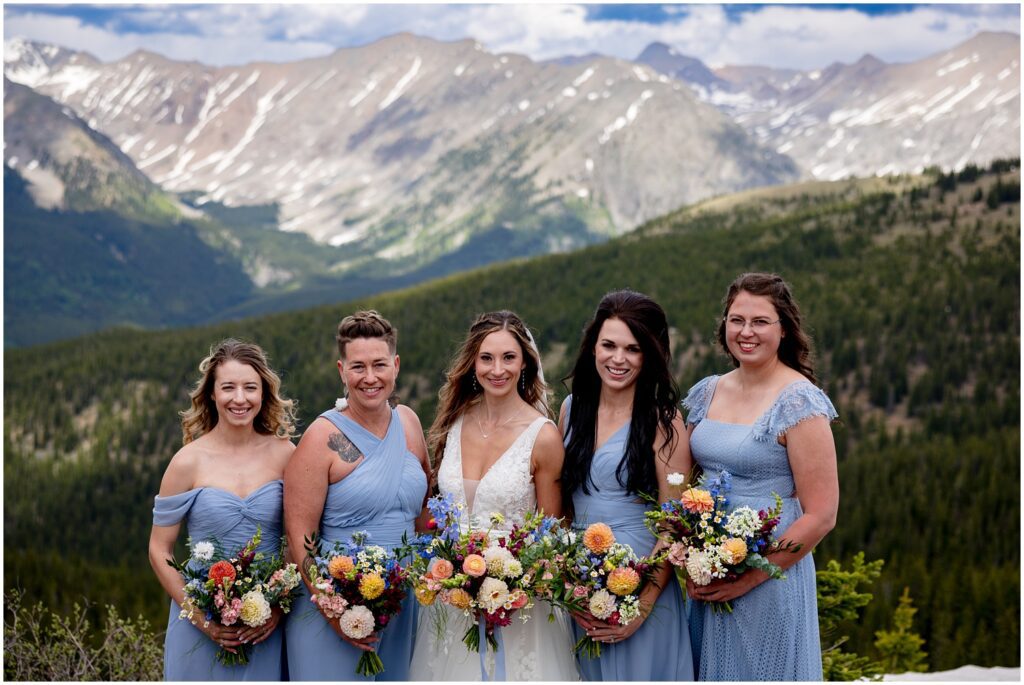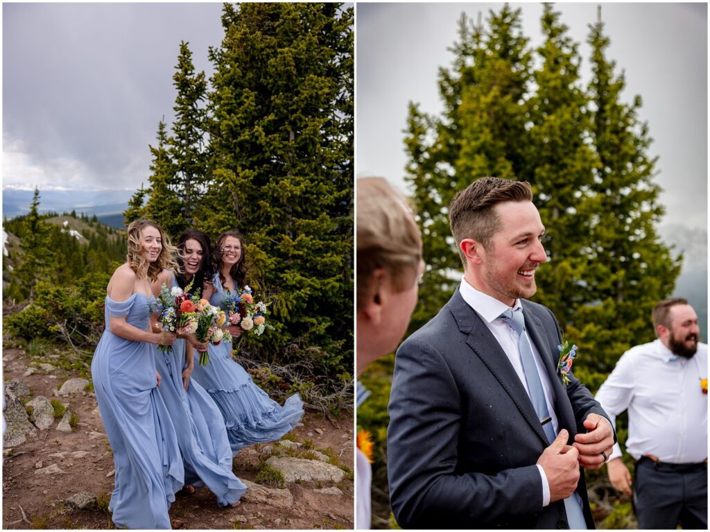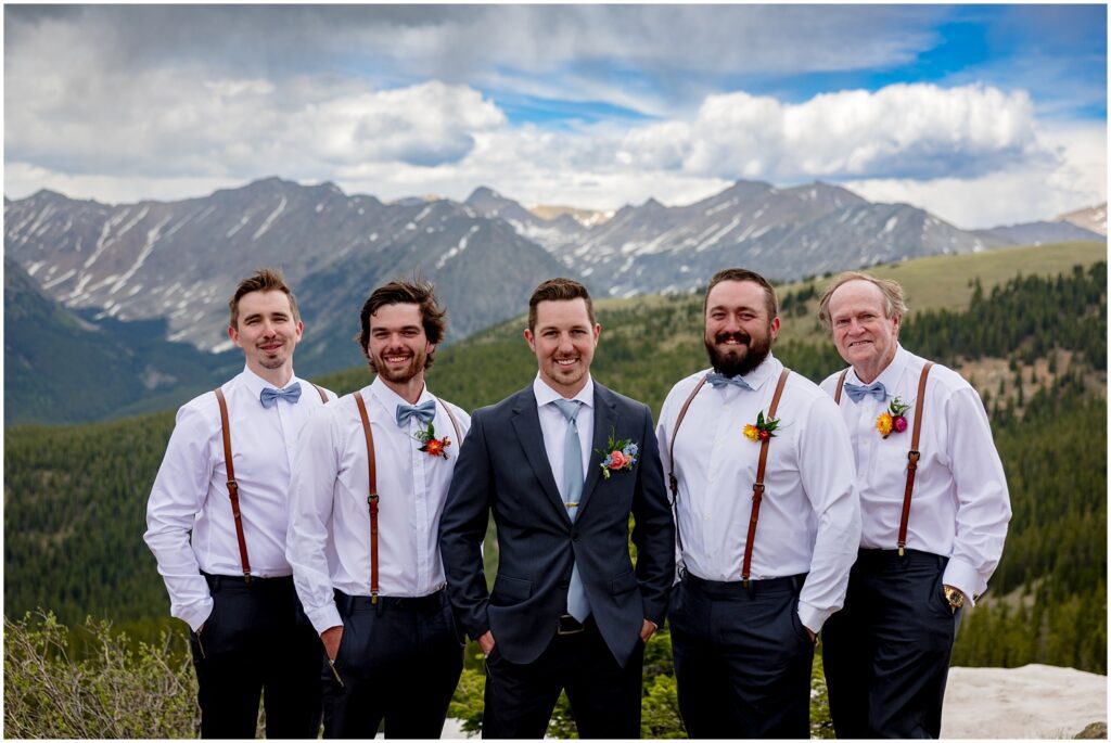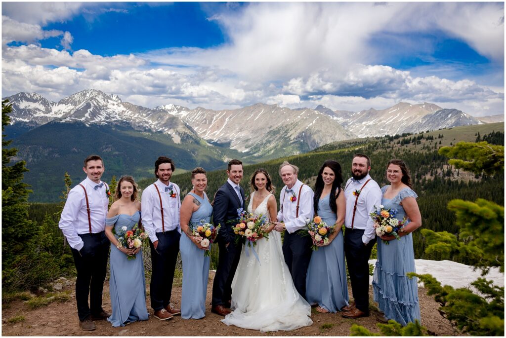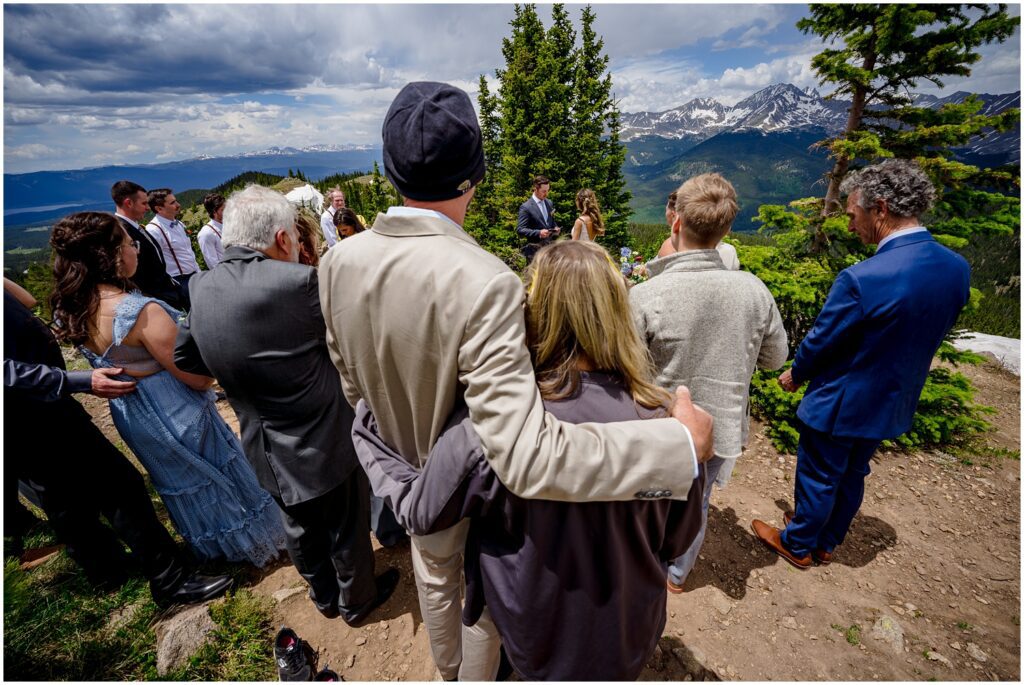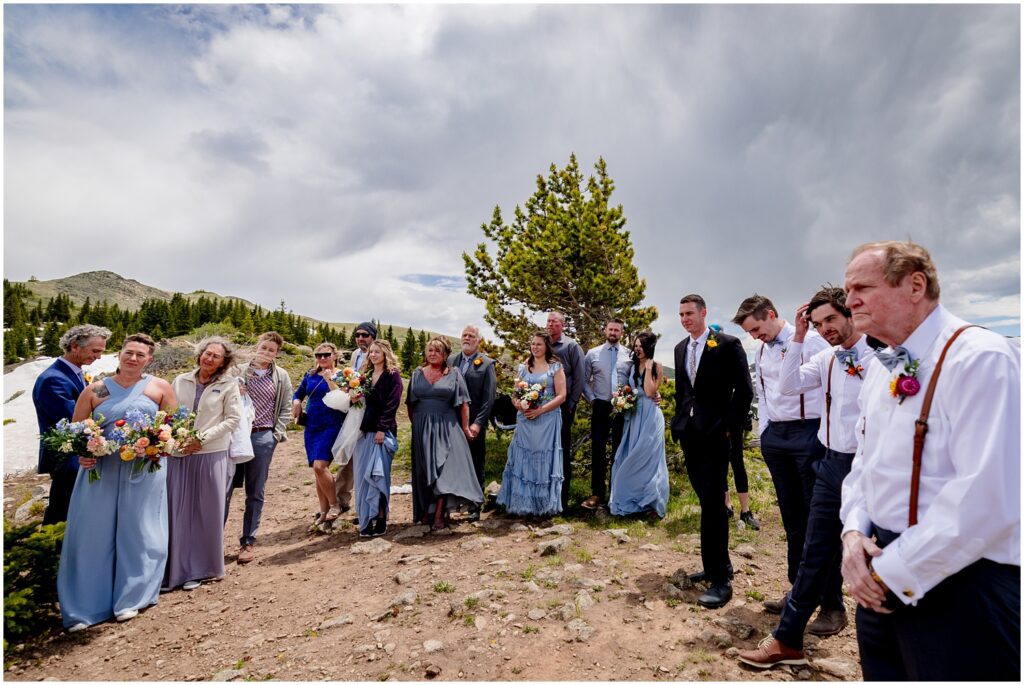 After getting ready, Sophie and Zach invited their wedding party and immediate family to come up to the top of Cottonwood Pass for a private vow ceremony. This particular spot that overlooks Ice Mountain and the Three Apostles is one that the two of them frequent in the winters on their snowmobiles. It’s a little bit of a hike to get out to the overlook, making it the perfect spot for a truly private ceremony in an area that can be filled with people from time to time. (And on a personal note, I’ve looked at Ice Mountain and the three connecting peaks from many of my hikes on the other side of the range – so I was particularly smitten with the spot they chose).