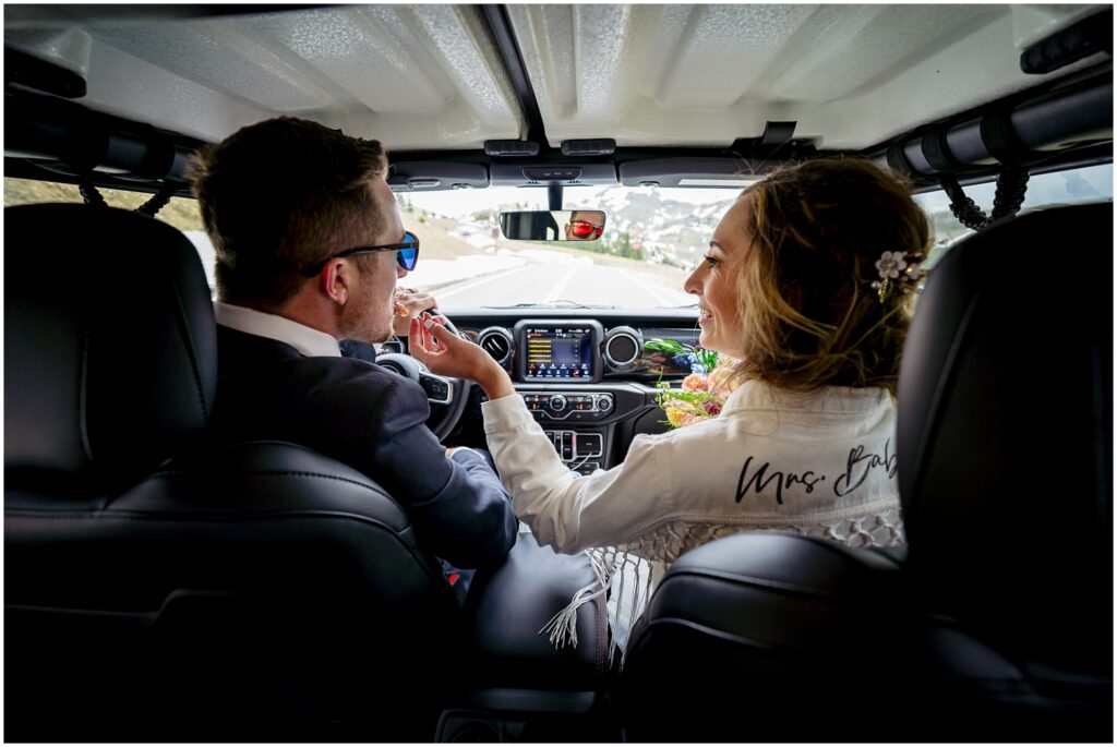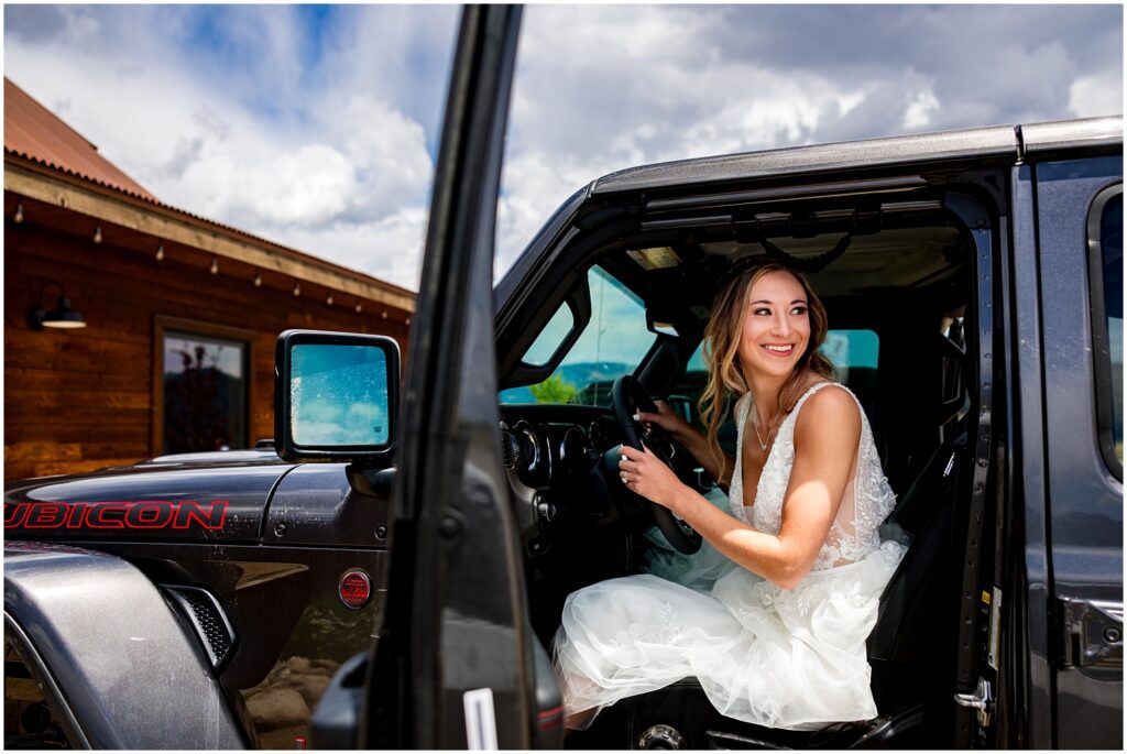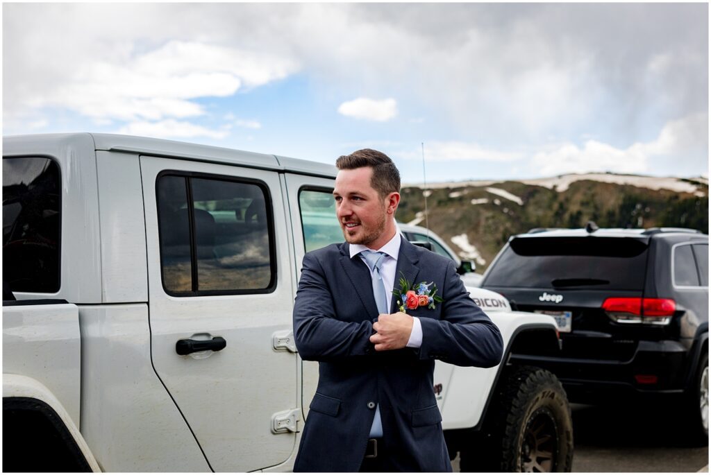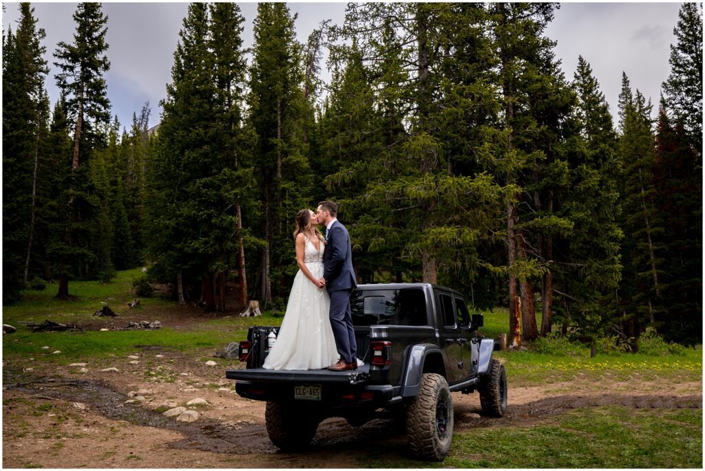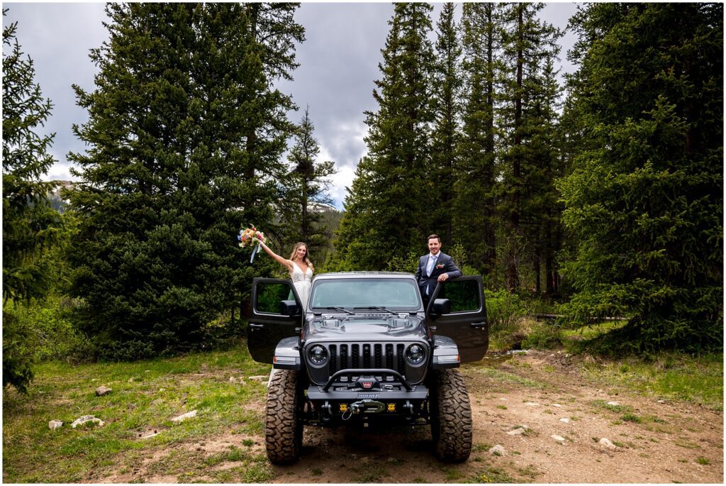 Once they said their vows and we took family portraits, I joined Sophie and Zach on a 4×4 road off Cottonwood pass in both our Rubicons for some couple’s portraits. This past spring was quite a wet one – meaning that many of the roads were still inaccessible on June 30. We luckily found one road that was open a majority of the way so that the two of them could participate in a little off-road adventure on their wedding day.