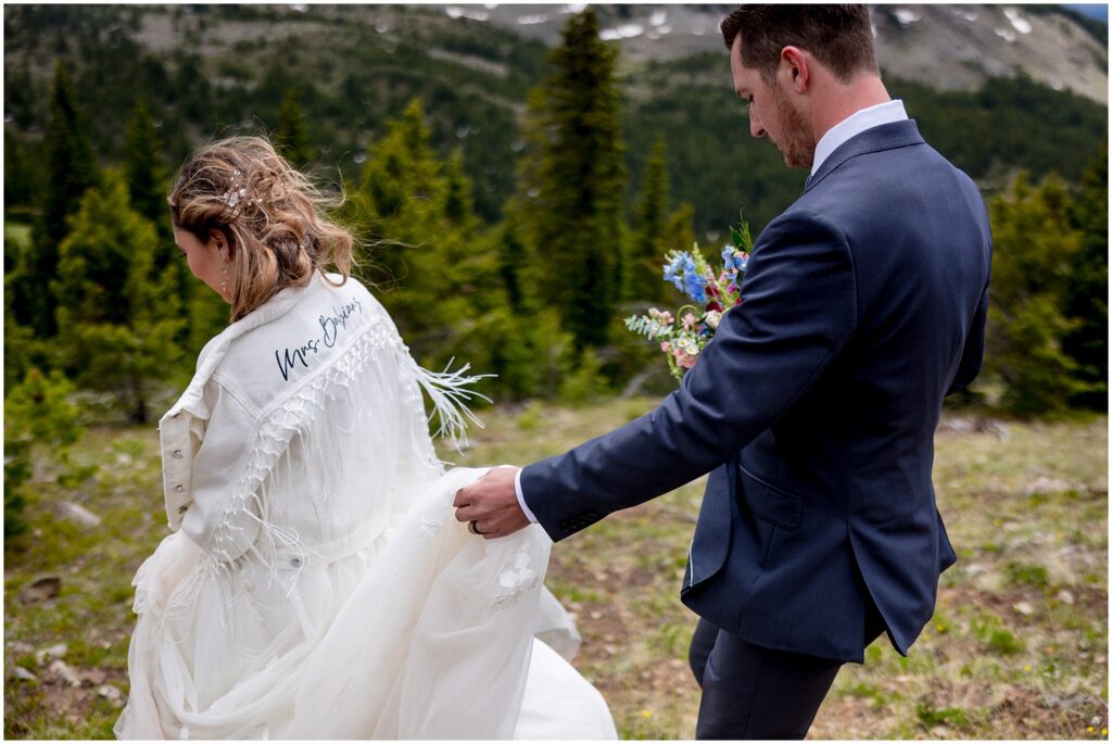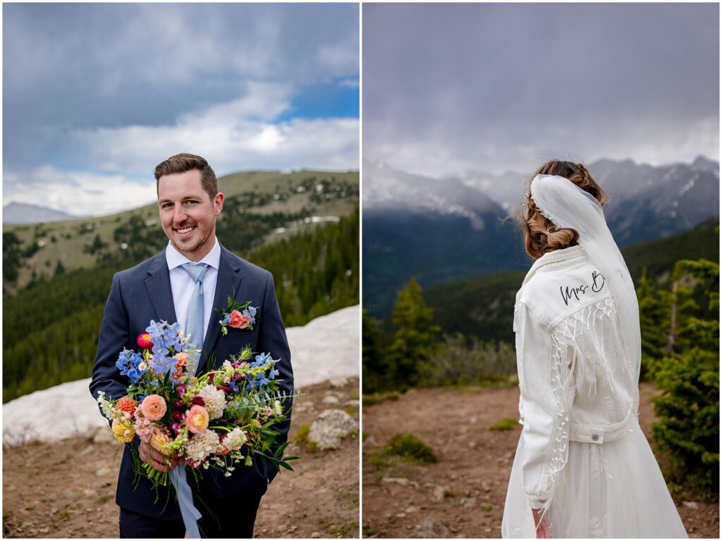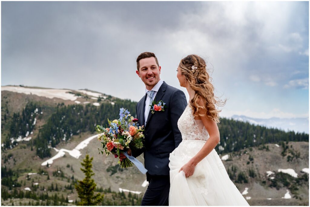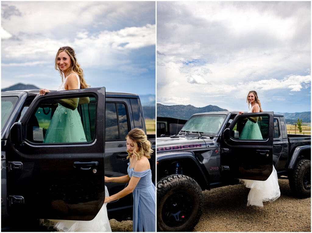 Once they said their vows and we took family portraits, I joined Sophie and Zach on a 4×4 road off Cottonwood pass in both our Rubicons for some couple’s portraits. This past spring was quite a wet one – meaning that many of the roads were still inaccessible on June 30. We luckily found one road that was open a majority of the way so that the two of them could participate in a little off-road adventure on their wedding day.
