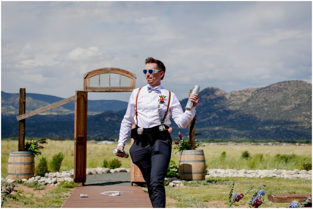 At their ceremony, they had what was dubbed the “Beer Boy” in lieu of a ring bearer. One of the groomsmen ever-so-gracefully jumped onto the aisle, spraying beer everywhere, and handed out Coors Lights to guests. I’ve been doing this for upwards of 14 years – this was a new one. I’ve seen “Flower Men”, but never a jumping “Beer Boy”. Needless to say, it was a hit and absolutely hilarious.