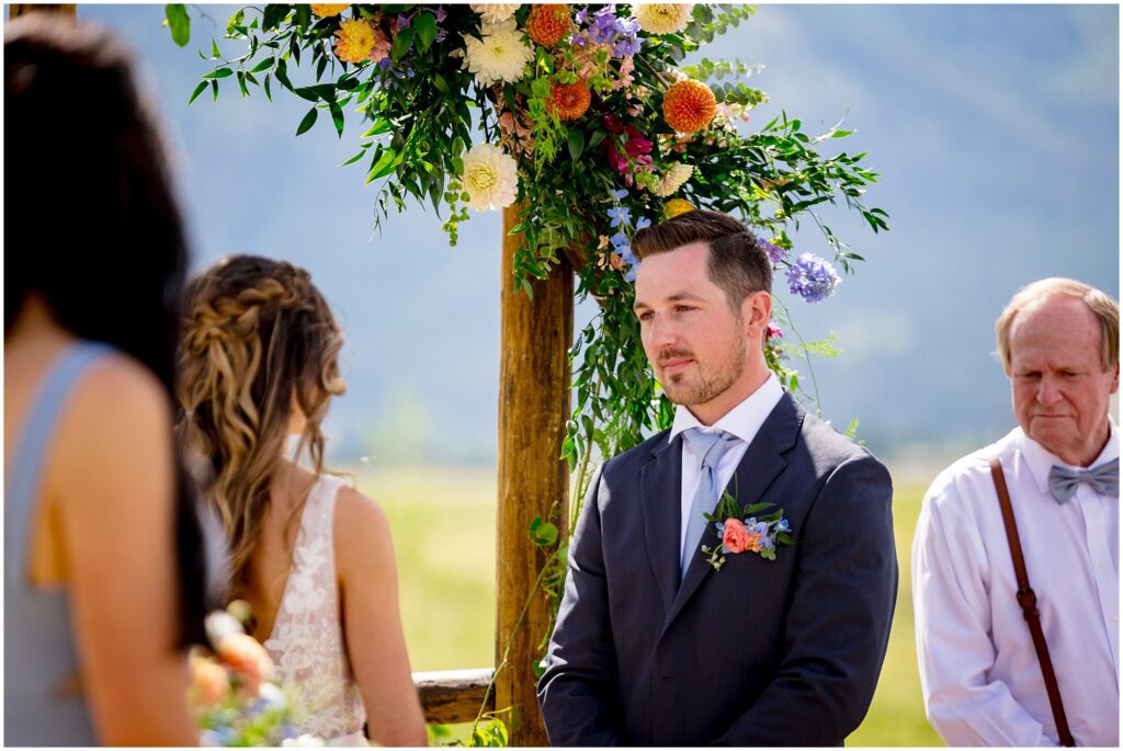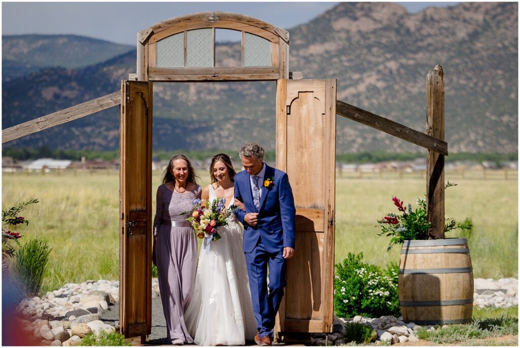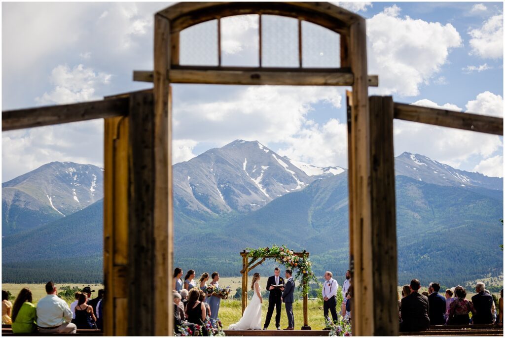 Once we made our way back to the ranch, Sophie and Zach held their larger ceremony for all of their guests. The ceremony space has beautiful doors that outline Mt. Princeton in the field adjacent to the barn.