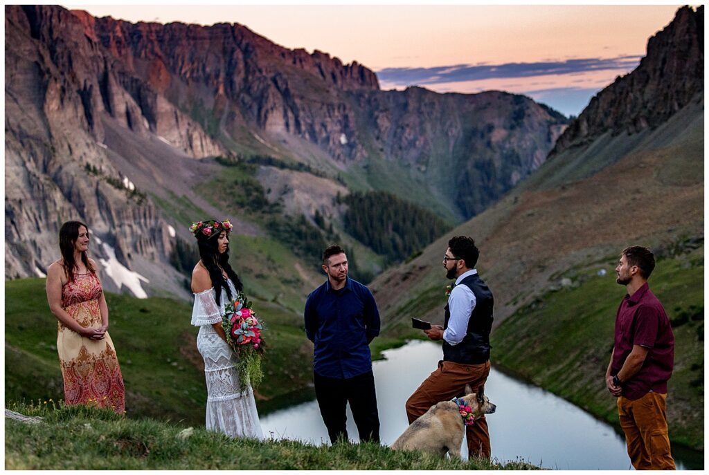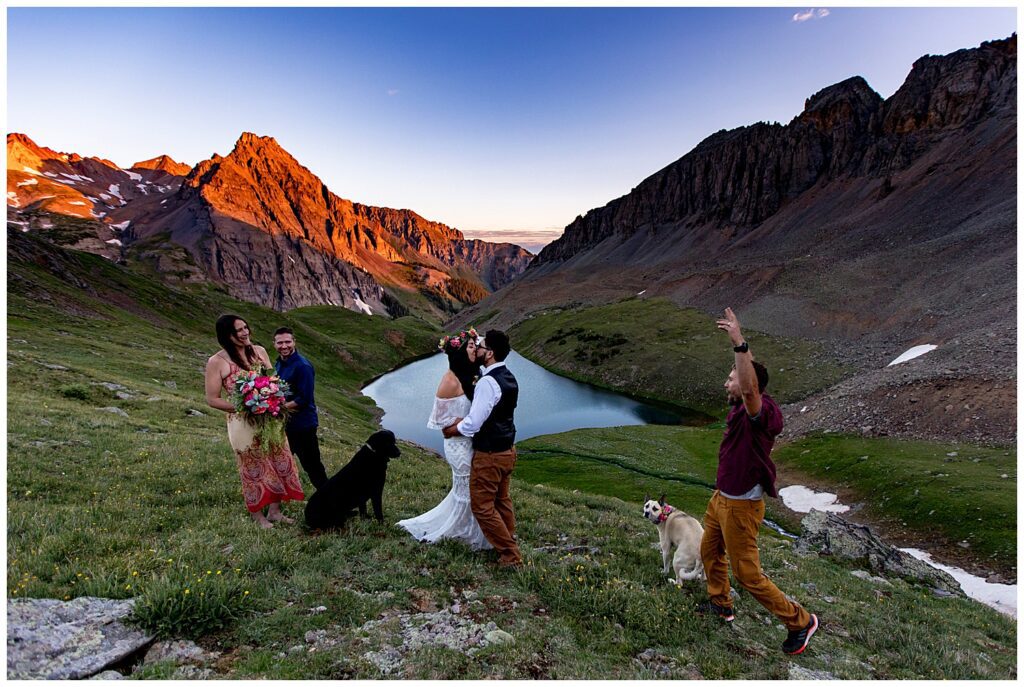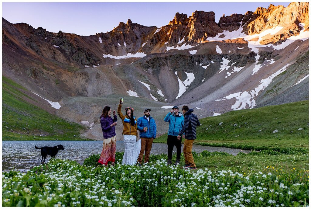 I witnessed couples commit themselves in places that are so beautiful, they don’t seem real. We toasted beers at the sunrise at Blue Lakes with Mt. Sneffels smiling from above. Ate charcuterie next to a waterfall after being in the lush alpine valley of Governor Basin. Sprayed champagne overlooking Snowmass Lake. Found BEAUTIFUL pockets of light on mountain passes. Hopped over rivers and into the middle of lakes. Had a FLOWER MAN with a fanny full of rose pedals – I had to wipes tears of laughter off my camera for that one. I wiped tears of joy off while watching the sun come up over Mt. Sniktau. And tears of love and emotion for family dances with the groom.