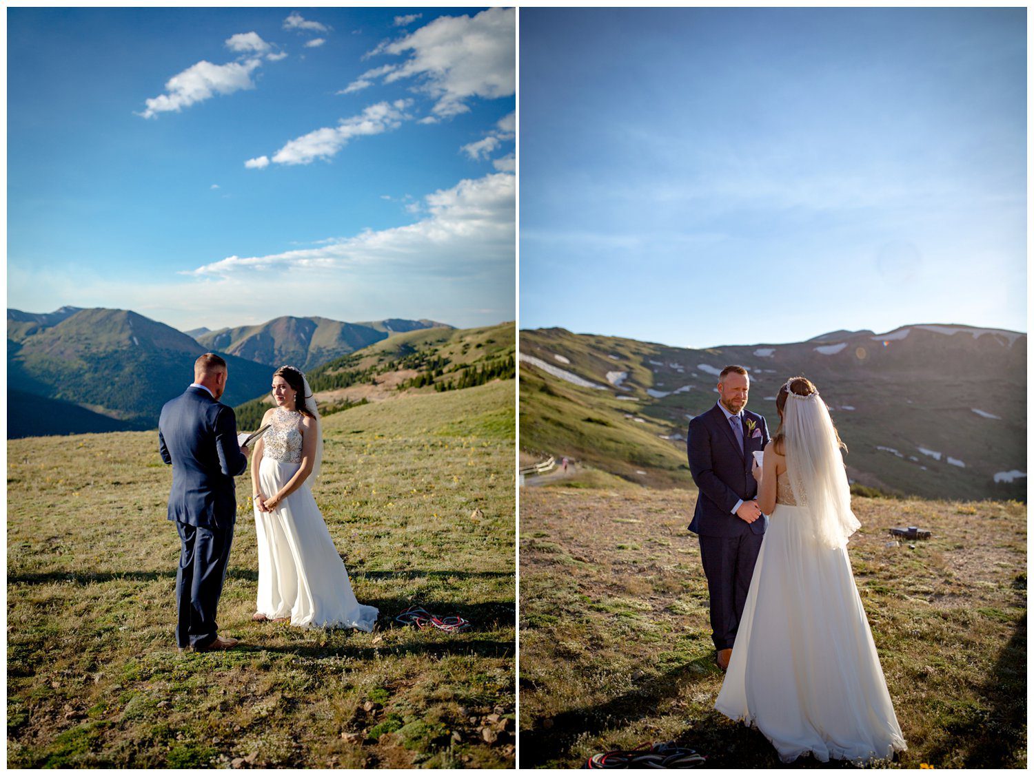 To say their Vows to one another, Scott led a beautifully touching ceremony that included knot tying to signify Esslie and Nathan’s promises to one another. Trying to portray the feeling watching a couple get married mountainside just the two of them is incredibly difficult – the words never seem to fully describe how magical (and honoring) it truly is to be a part of. I certainly caught myself choking up listening to Esslie and Nathan recite their handwritten promises to one another. Or there was an onion up in the alpine. Yeah, that must be what it was. 😃