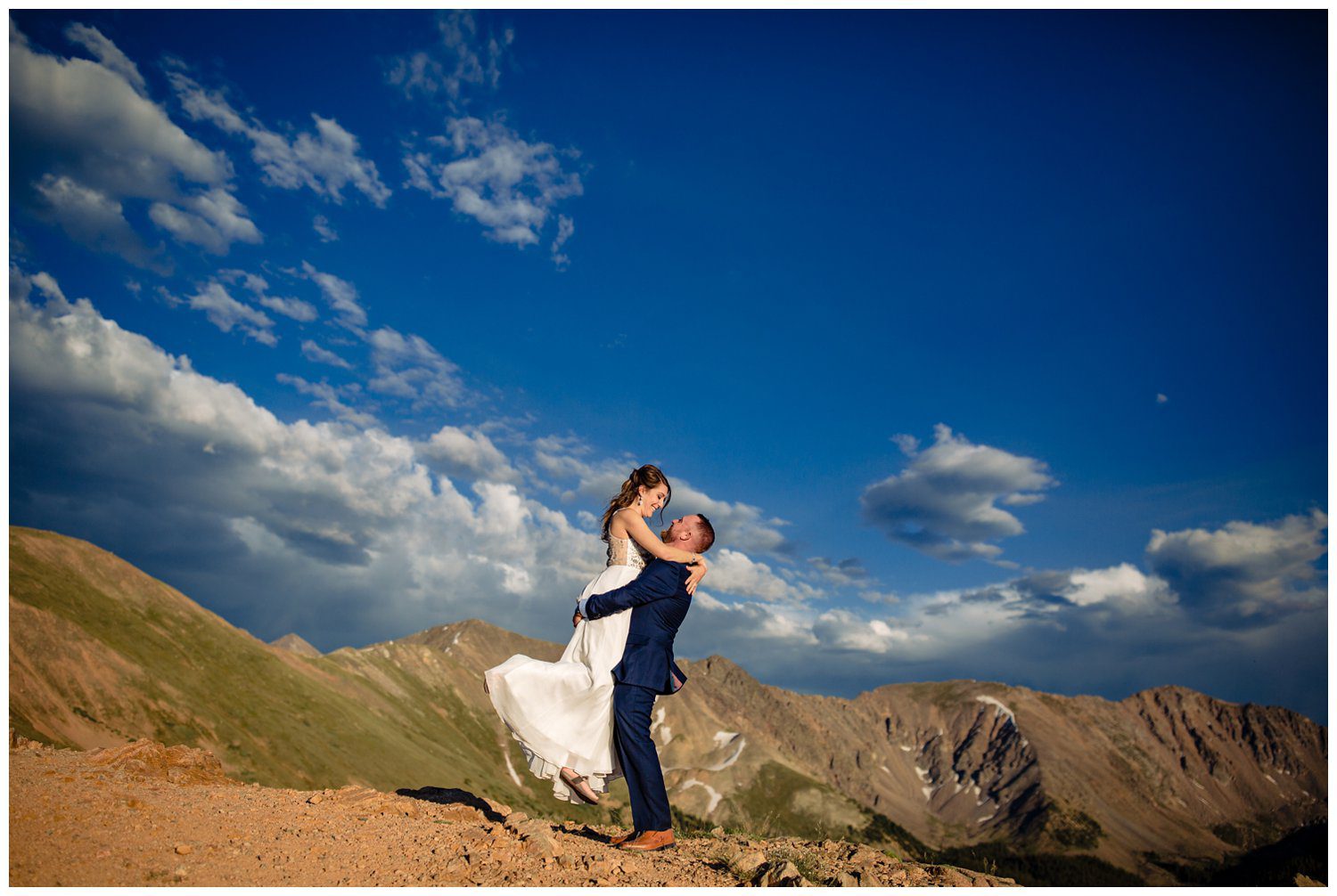 Once the emotional portion of the day concluded – we began our time together for their couple’s portraits. To say that Esslie was a trooper would be a severe understatement – she was pregnant, from sea level and hiking as fast as I was up and down the ridges at nearly 12,000 feet of elevation. I’ve seen burly men hike slower and complain more than she did in that altitude. She was definitely one Badass Bride.