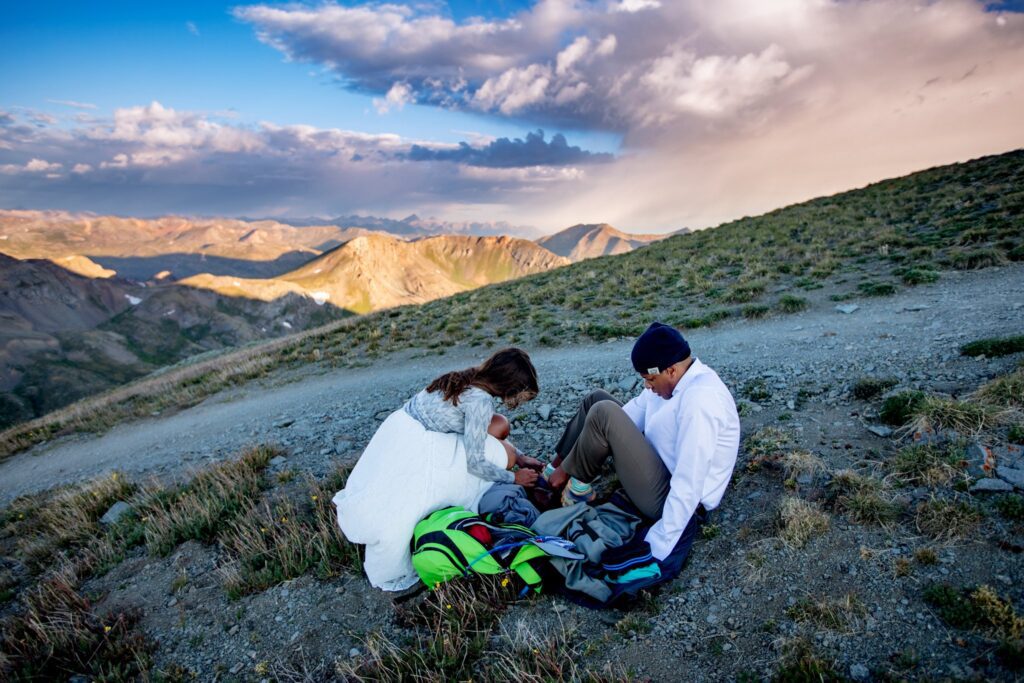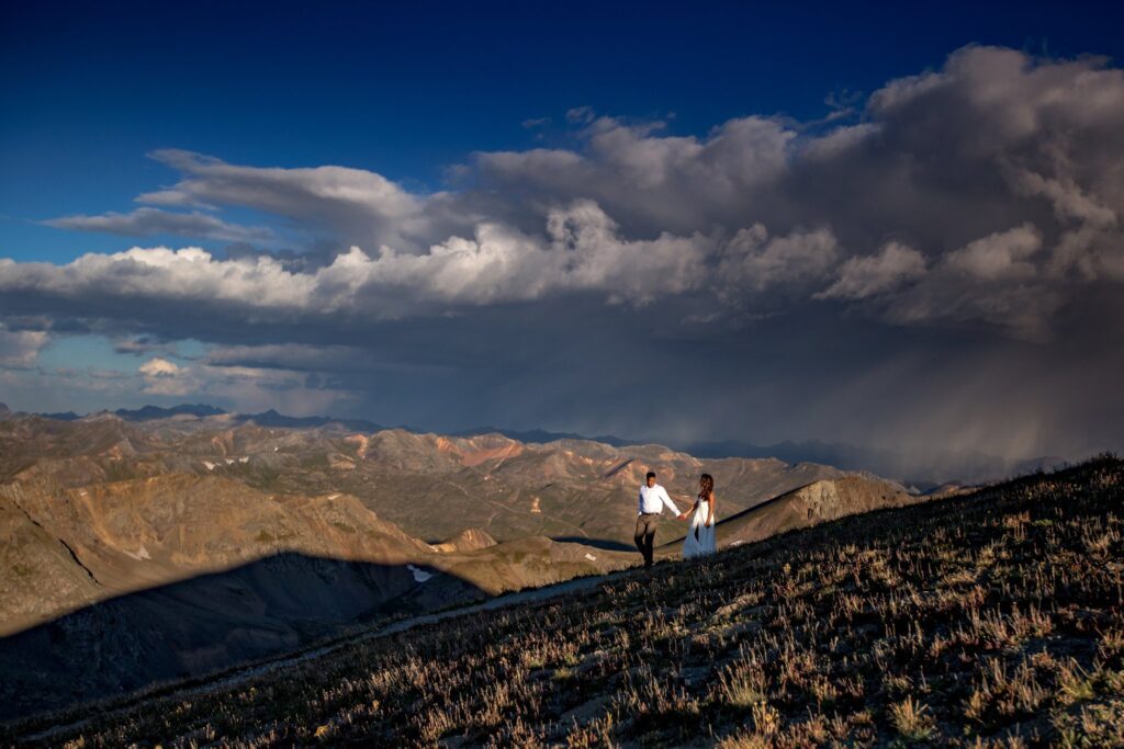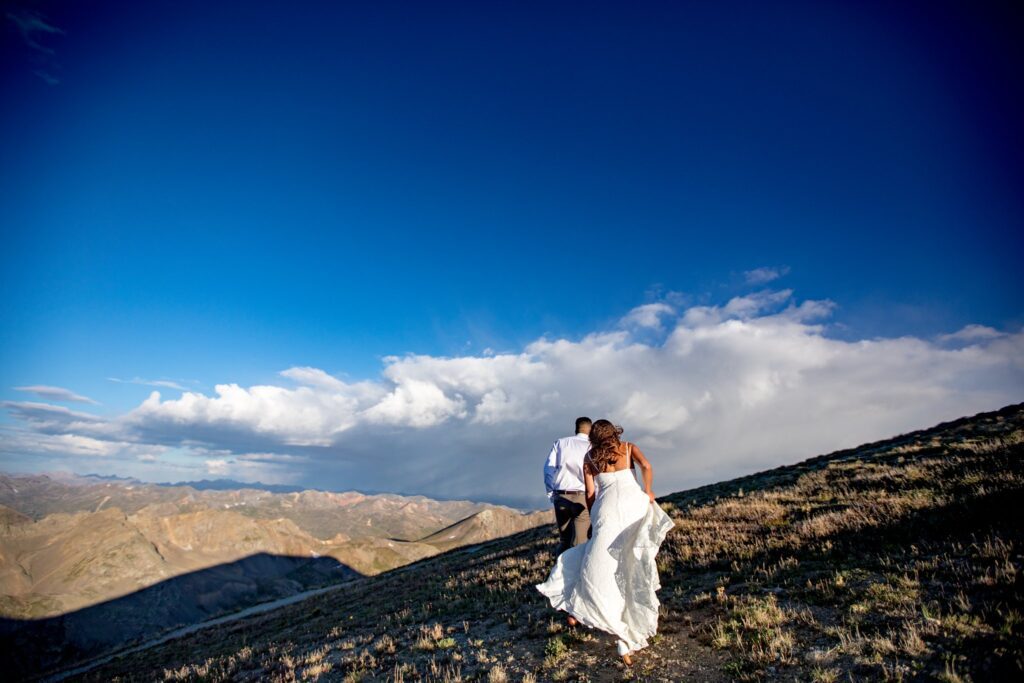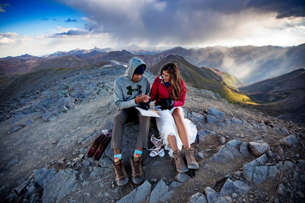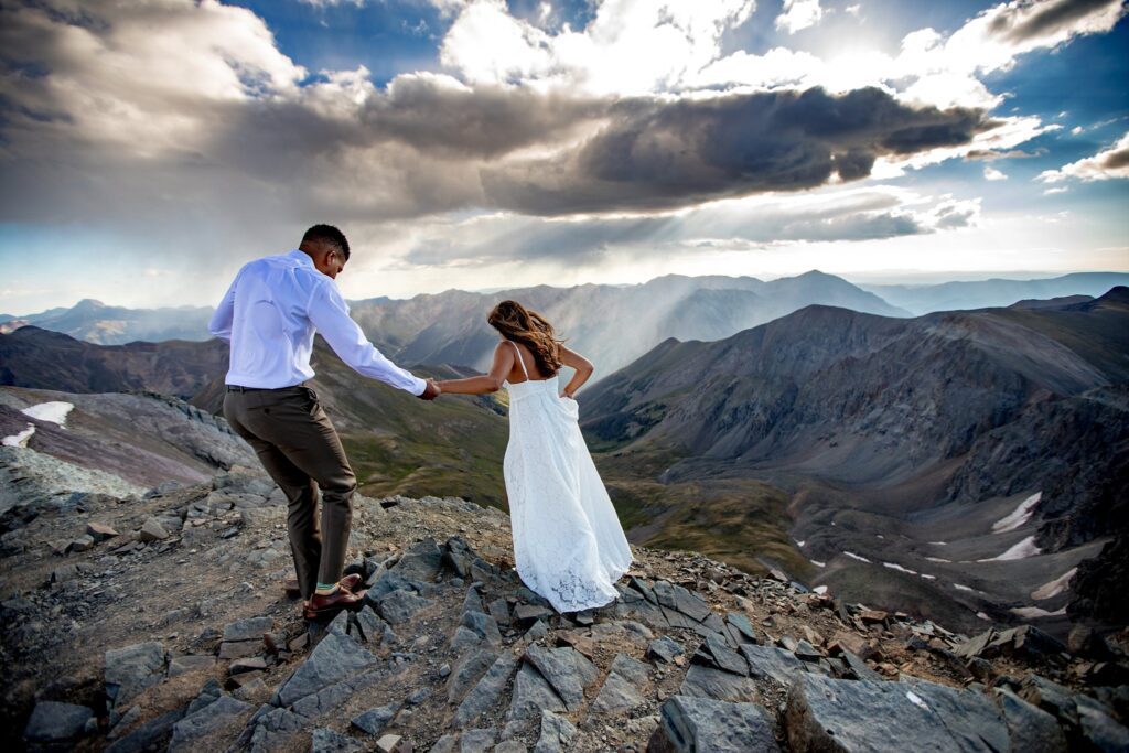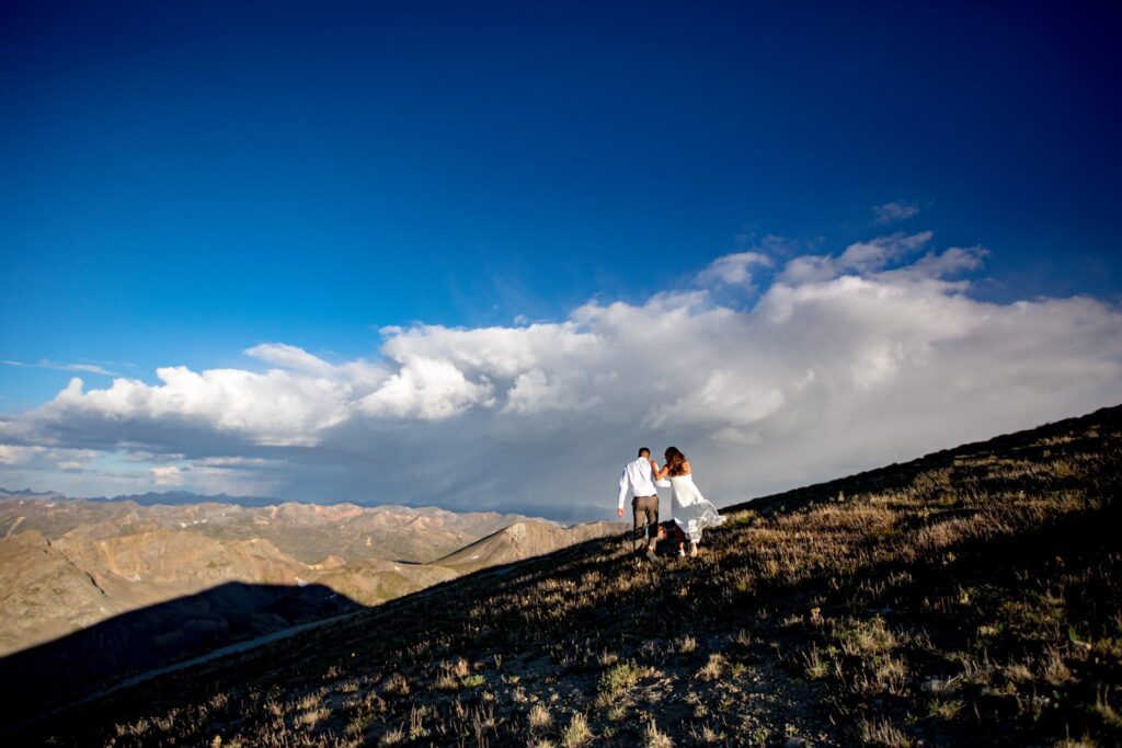 Once we reached the tippy top of this stunning mountain, Lela and Zadok signed their marriage license and were married!! We were still a little worried about the weather moving in, so we started to hustle a bit. A slight amount of hail started to hit us, but only for a minute or two. Once we started to take portraits up on top of Handies, the clouds parted and we were greeted with (very welcomed) sunshine.