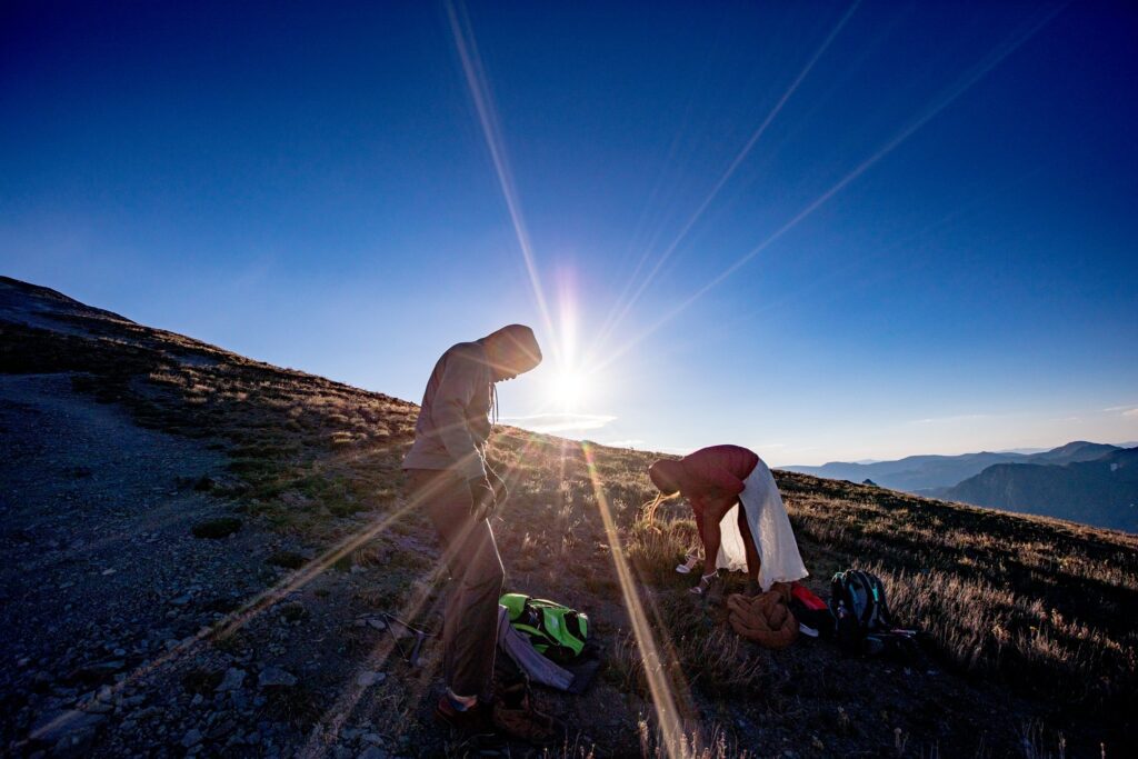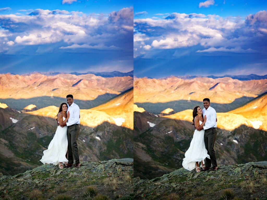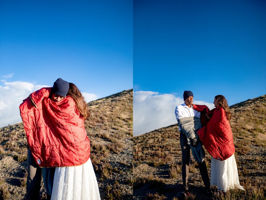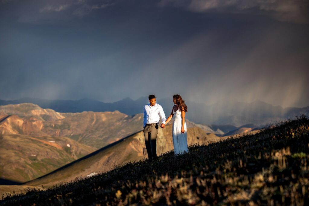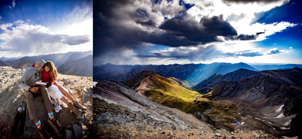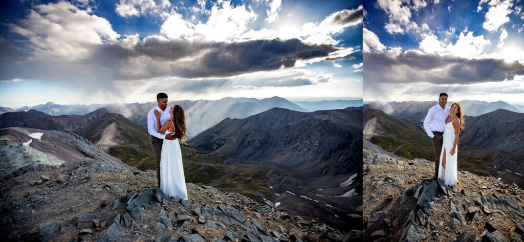 Once we reached the tippy top of this stunning mountain, Lela and Zadok signed their marriage license and were married!! We were still a little worried about the weather moving in, so we started to hustle a bit. A slight amount of hail started to hit us, but only for a minute or two. Once we started to take portraits up on top of Handies, the clouds parted and we were greeted with (very welcomed) sunshine.