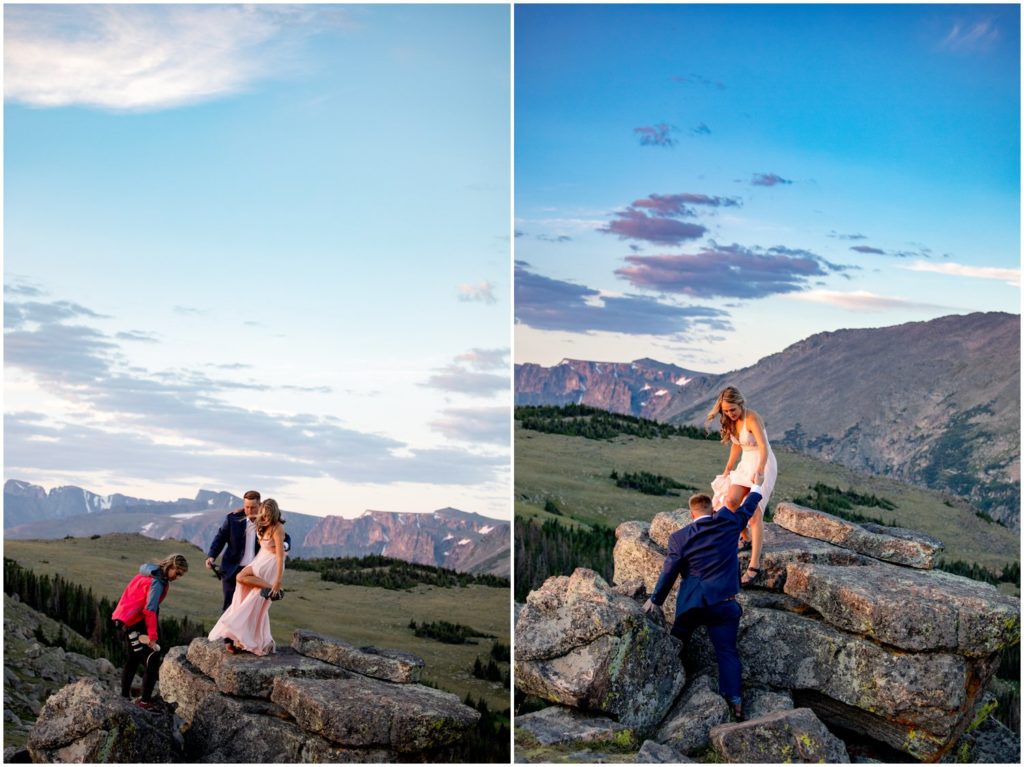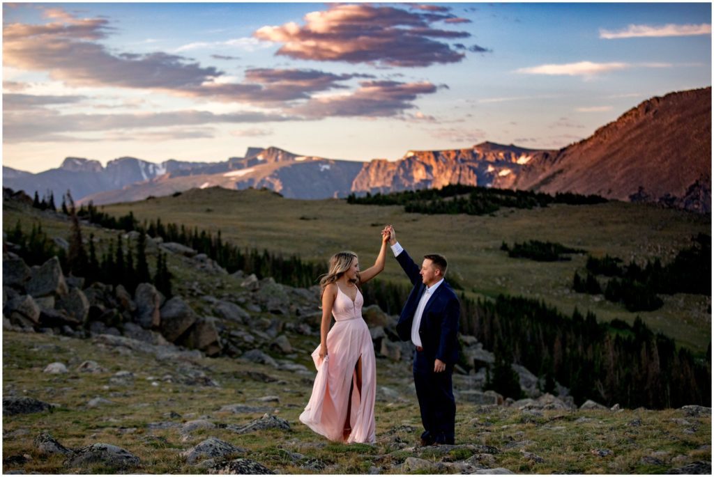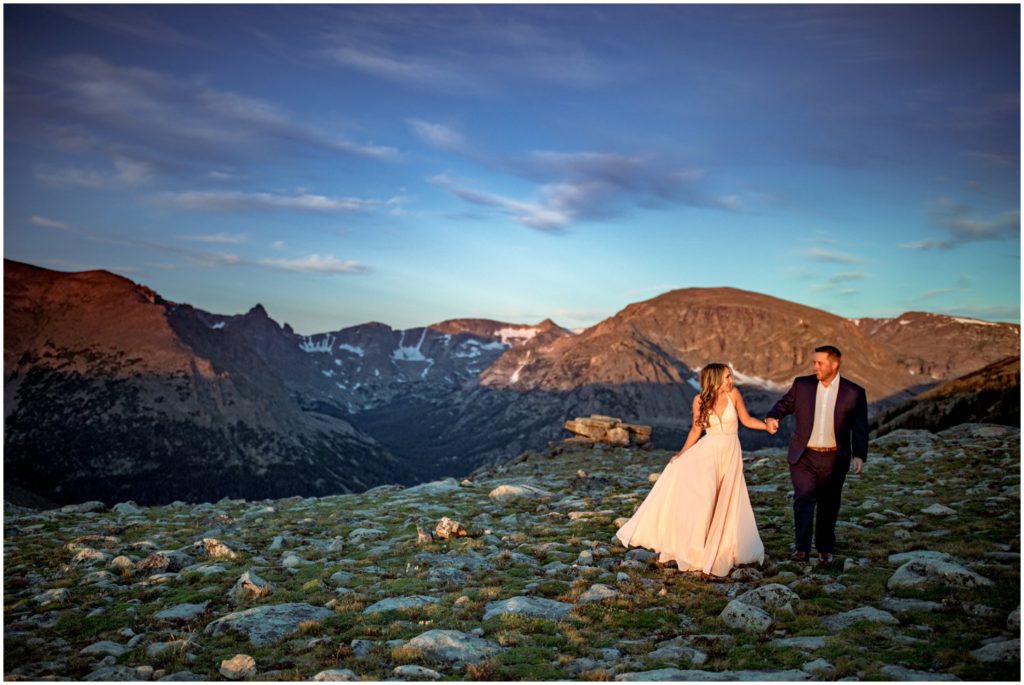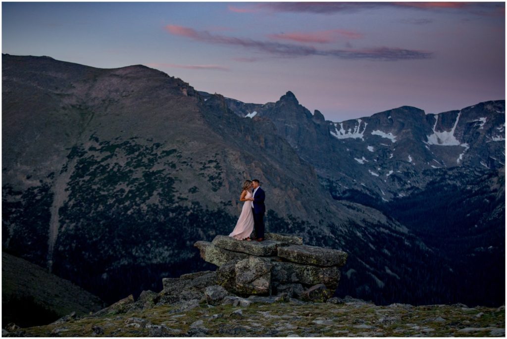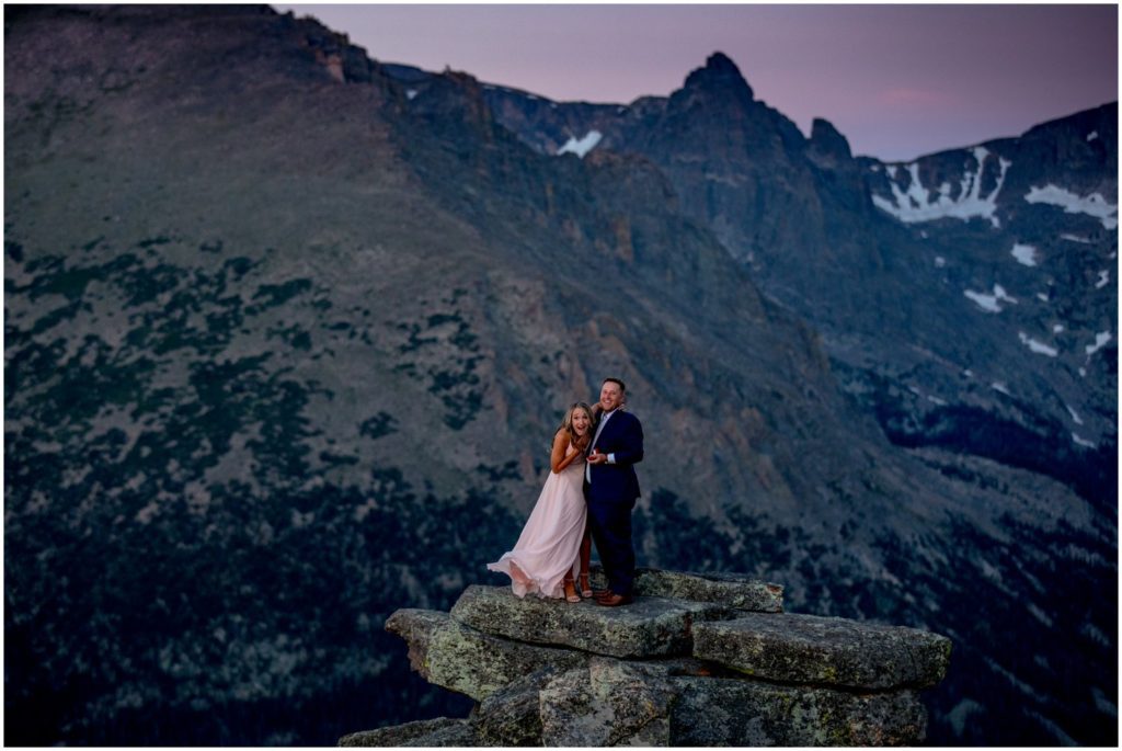 On August 20, right before the sun started to come up over the horizon, I met Larke and Taylor at the Ute Trail in Rocky Mountain National Park. It’s a fabulous location, and is easily accessible for nearly all physical levels. There’s a specific rock that I love, that overlooks the Forest Canyon and the Never Summer mountain range. I told Larke and Taylor for the alpenglow of sunrise, that would be the best spot.