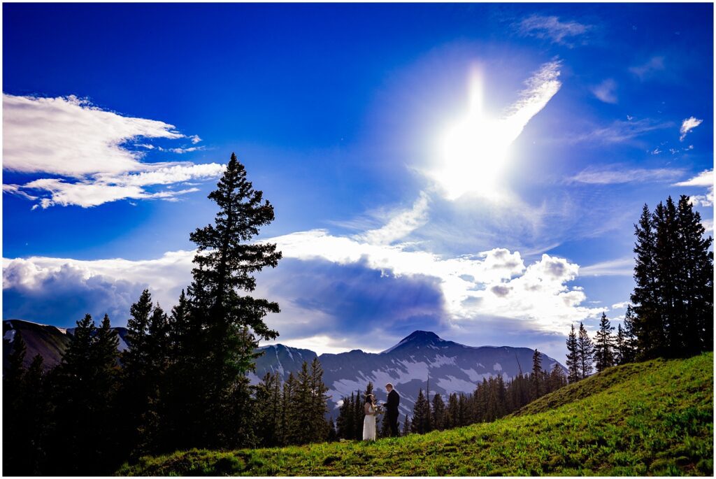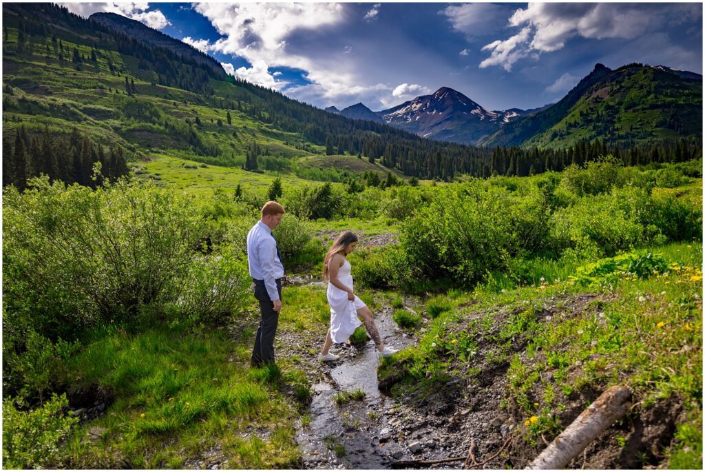 I got an Email from Marlene and Adam asking if I was available for an elopement – in a week’s time. They’re both in the military and had one day together that would work to come to Colorado and get married. Needless to say, I had an opening for an evening elopement and we met in Crested Butte where the two of them walked through alpine valleys, ate Secret Stash pizza, and said their vows amongst the mountains.