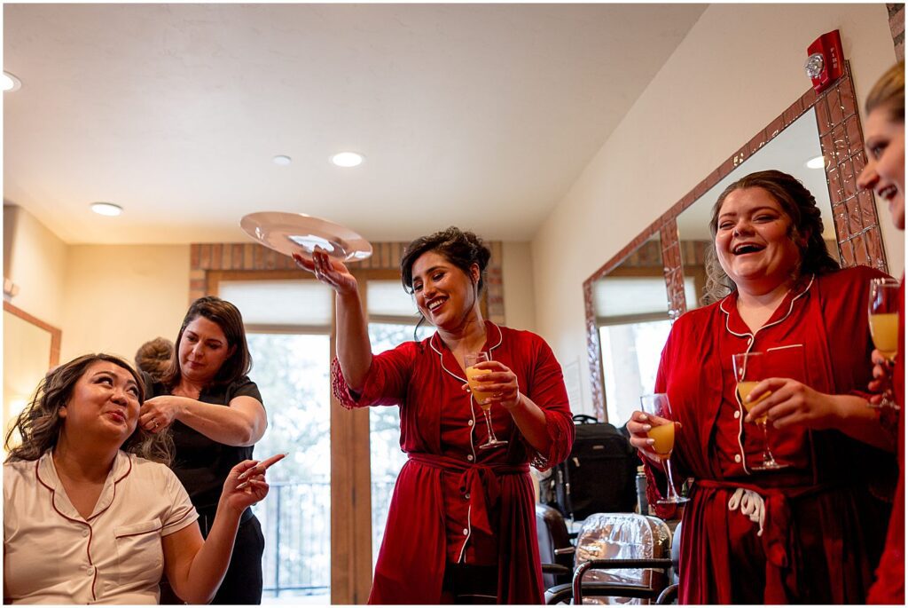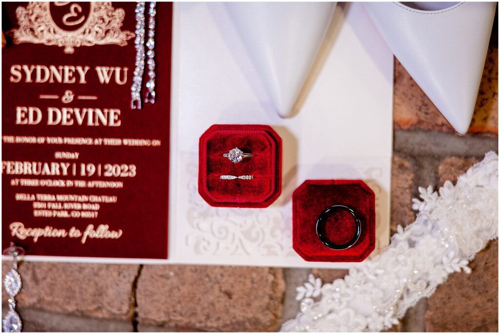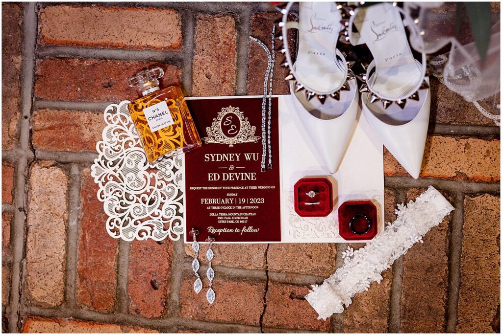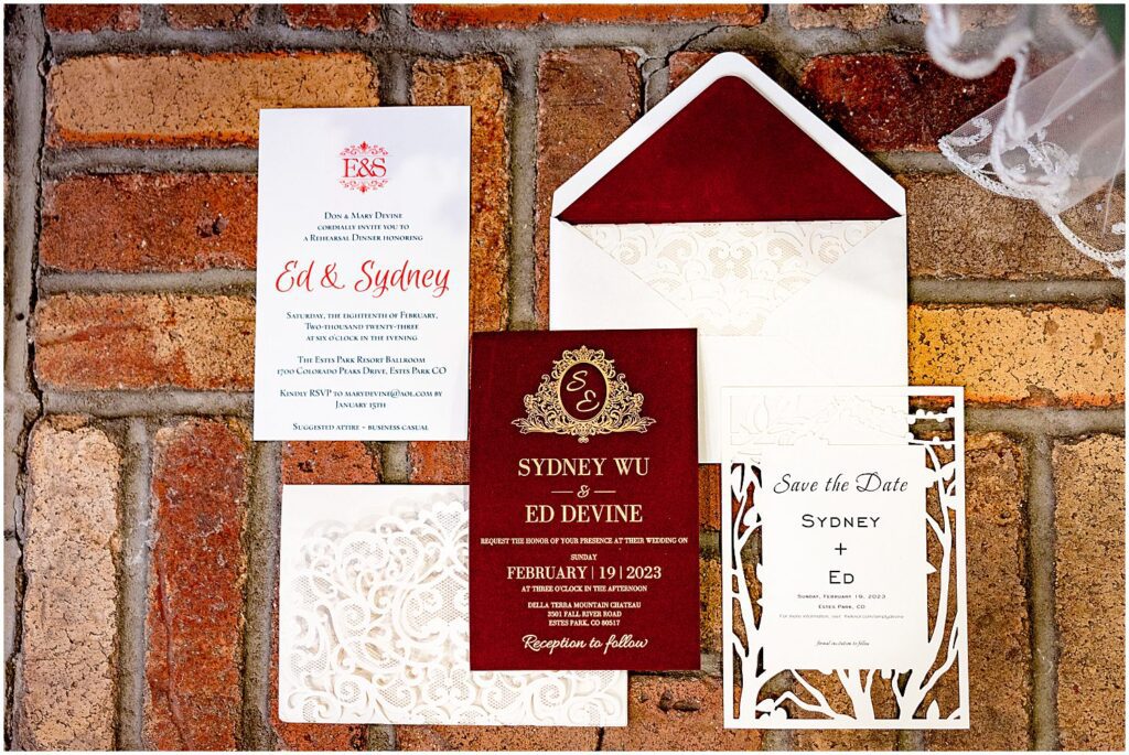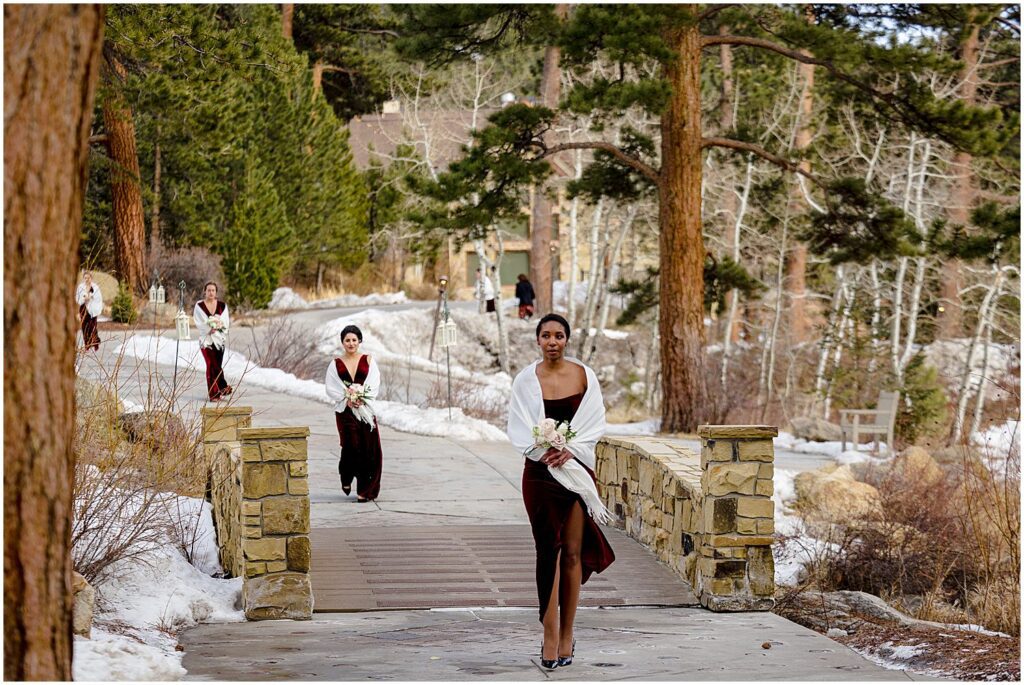 Many of Sydney and Ed’s wedding details were meticulously thought out. The maroon velvet the bridesmaids donned matched their wedding invitations perfectly (which also happened to match the bottom side of Sydney’s Christian Louboutin pumps). A deep jewel tone pallet fits amazingly into Colorado’s winter settings.