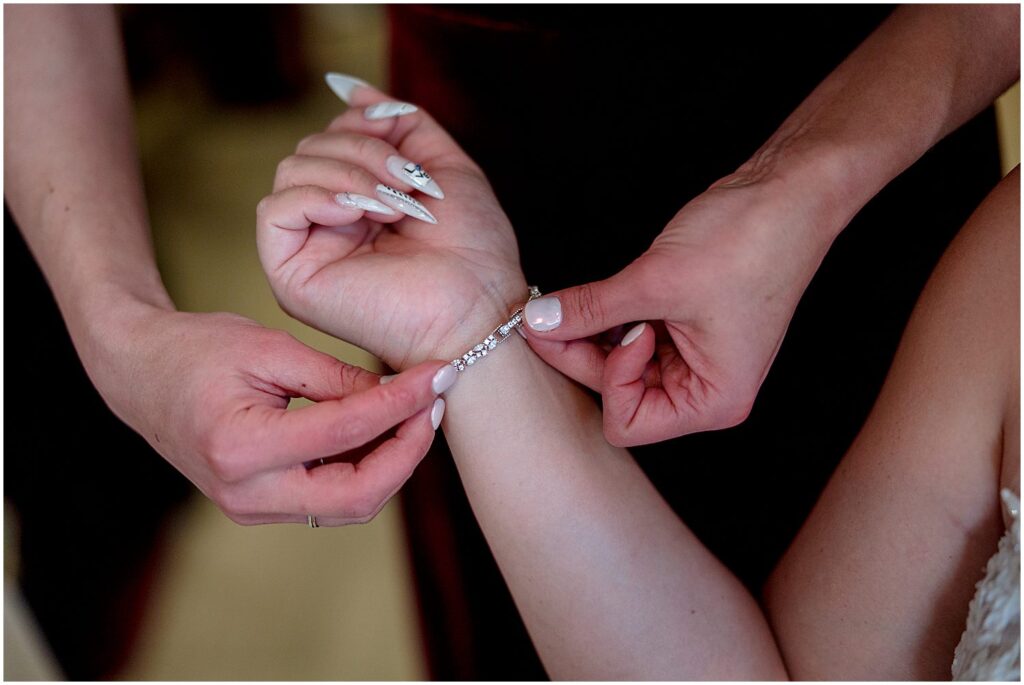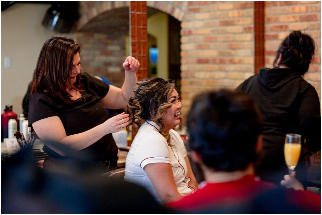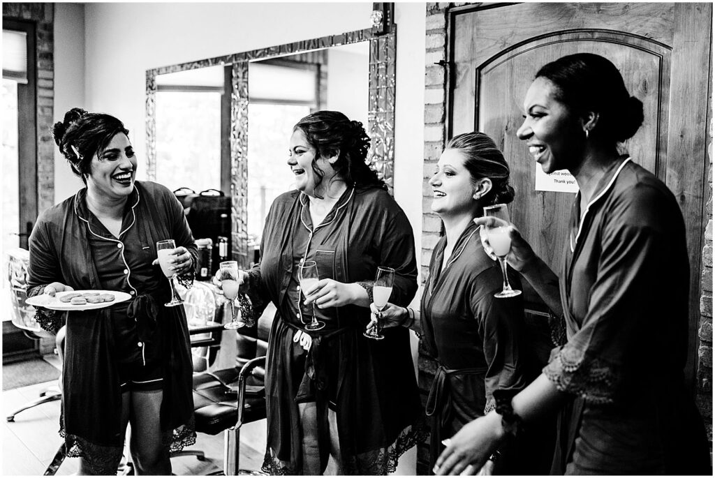 Sydney and her gals got ready in the Della Terra salon – which included a lot of singing along to musicals while eating chicken nuggets. Who could ask for a better setting while getting ready for their wedding?!