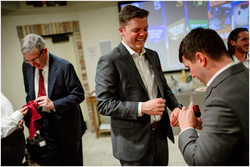 Ed’s details were just as thought out at the ladies – the suit coats were custom designed and notes of maroon were incorporated to match Sydney and her bridal party.