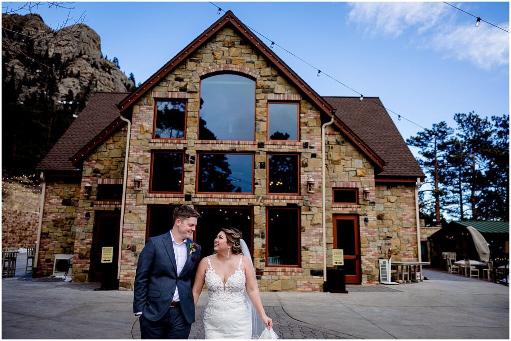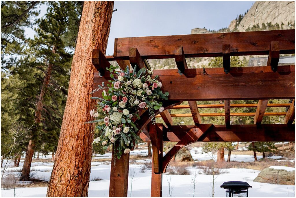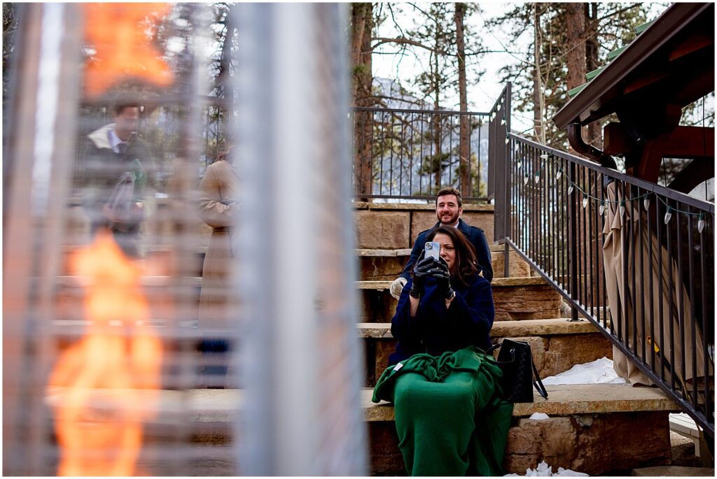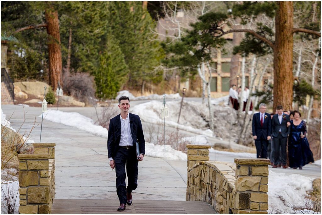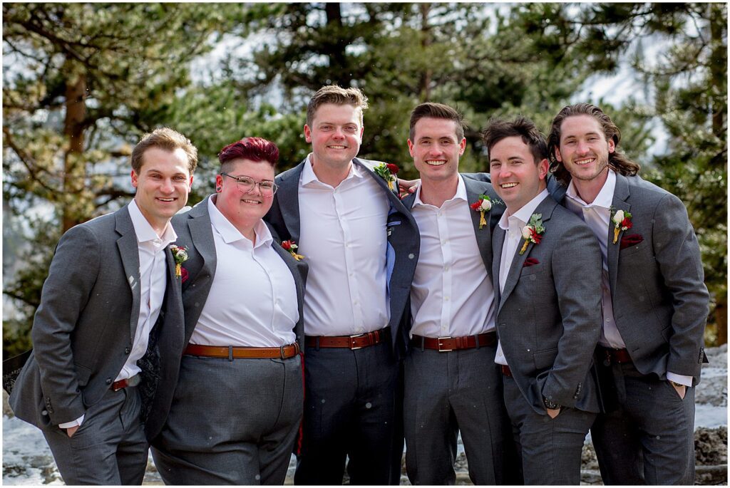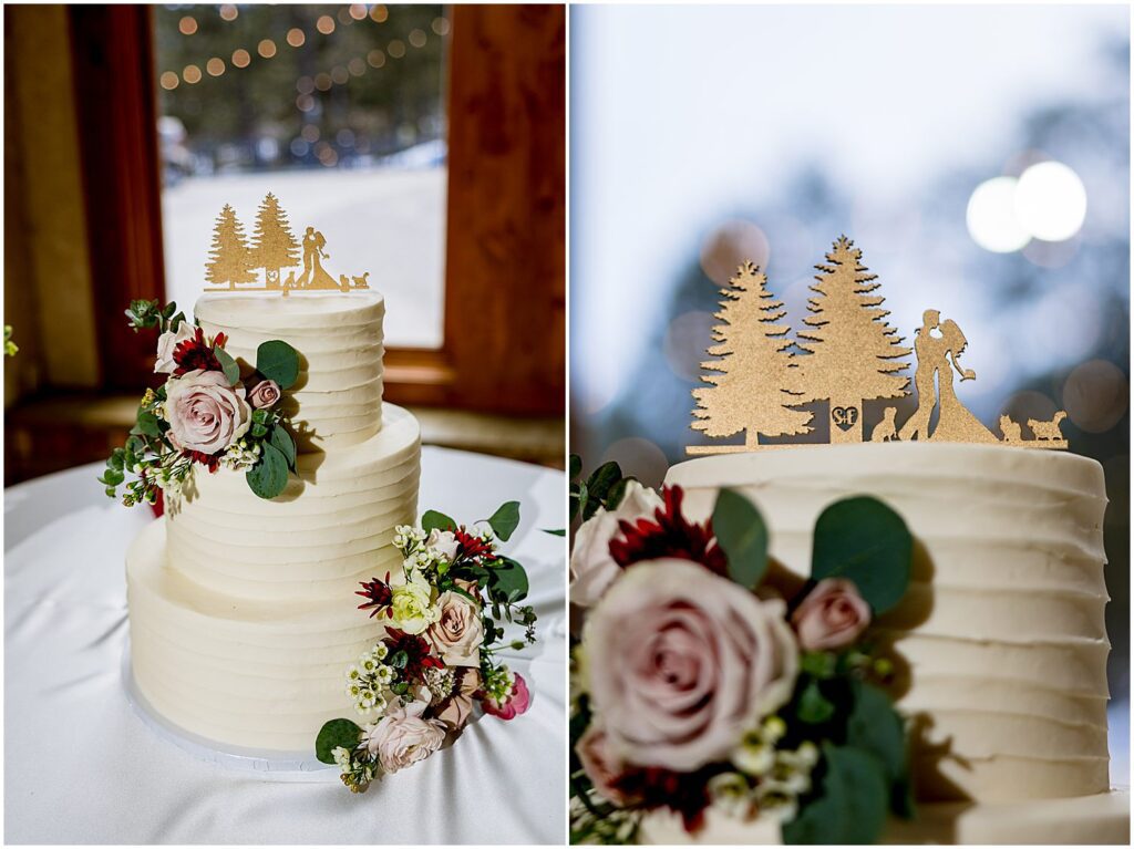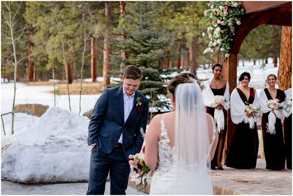 The beautiful landscapes of Rocky Mountain National Park are an amazing place for couple’s portraits, and the close proximity to Della Terra makes traveling there for photos incredibly accessible. However, the weather in the mountains can be unpredictable, particularly in the winter months. Prior to the ceremony, the skies were cloudy and the mountain views the Park is best known for were blocked by low-lying clouds.