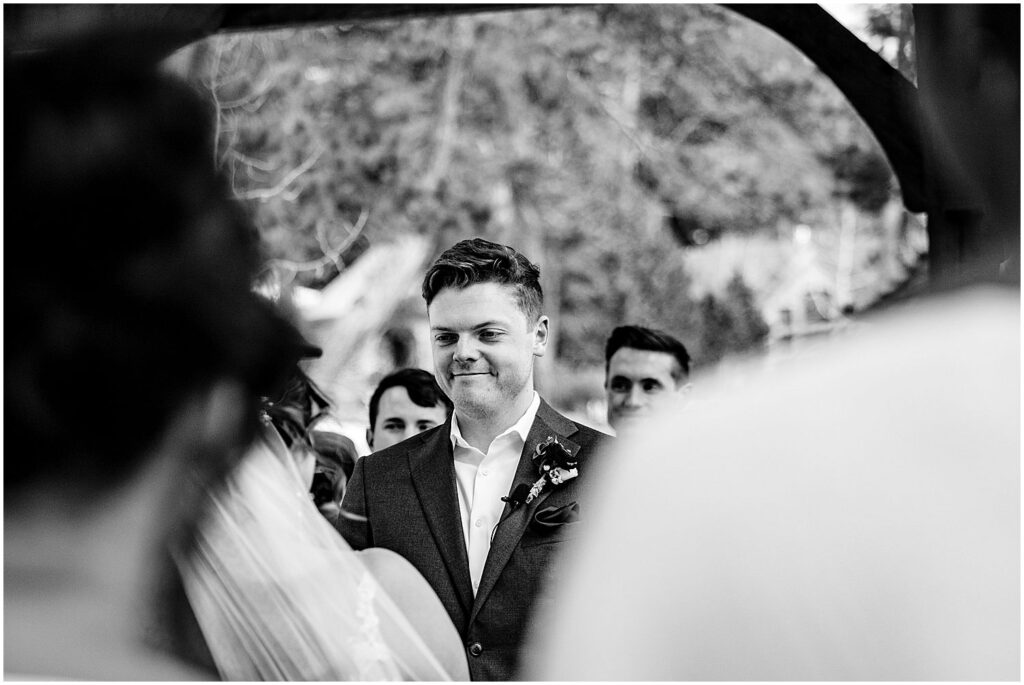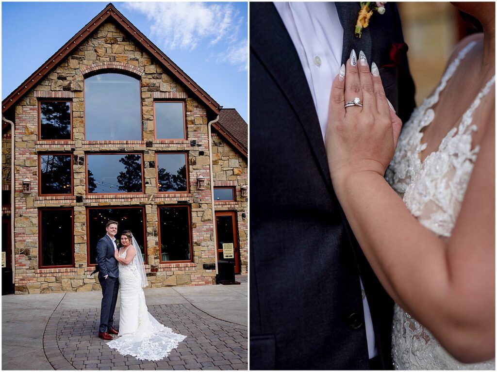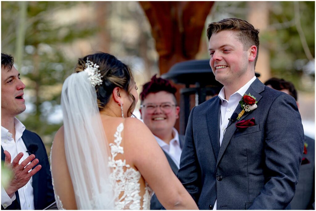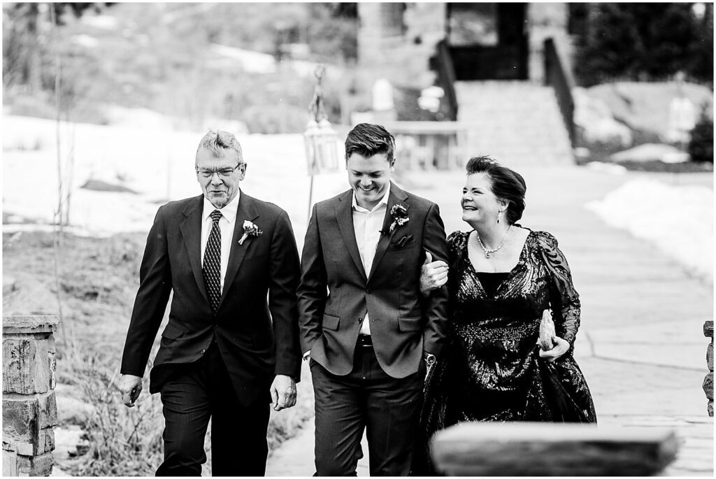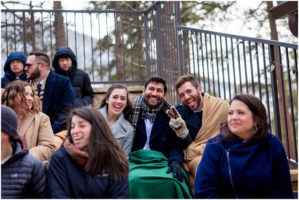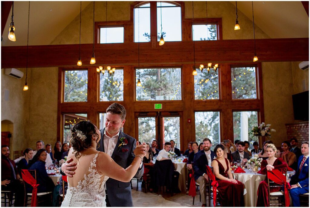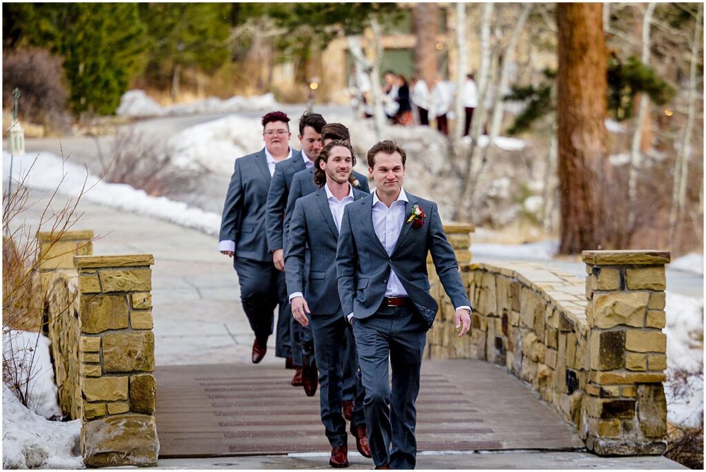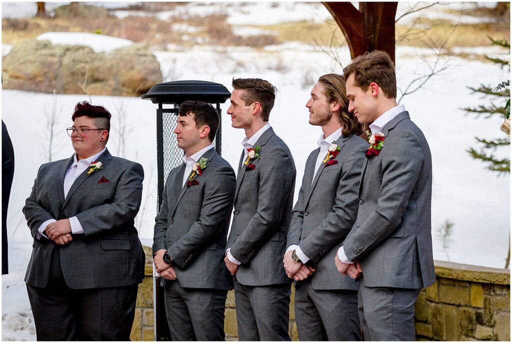 The beautiful landscapes of Rocky Mountain National Park are an amazing place for couple’s portraits, and the close proximity to Della Terra makes traveling there for photos incredibly accessible. However, the weather in the mountains can be unpredictable, particularly in the winter months. Prior to the ceremony, the skies were cloudy and the mountain views the Park is best known for were blocked by low-lying clouds.