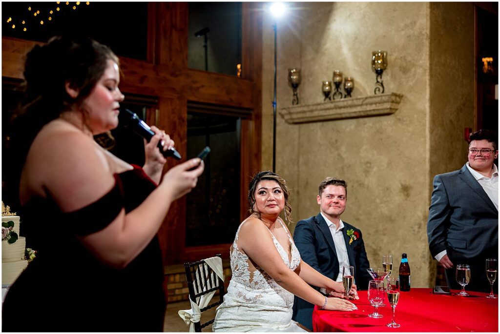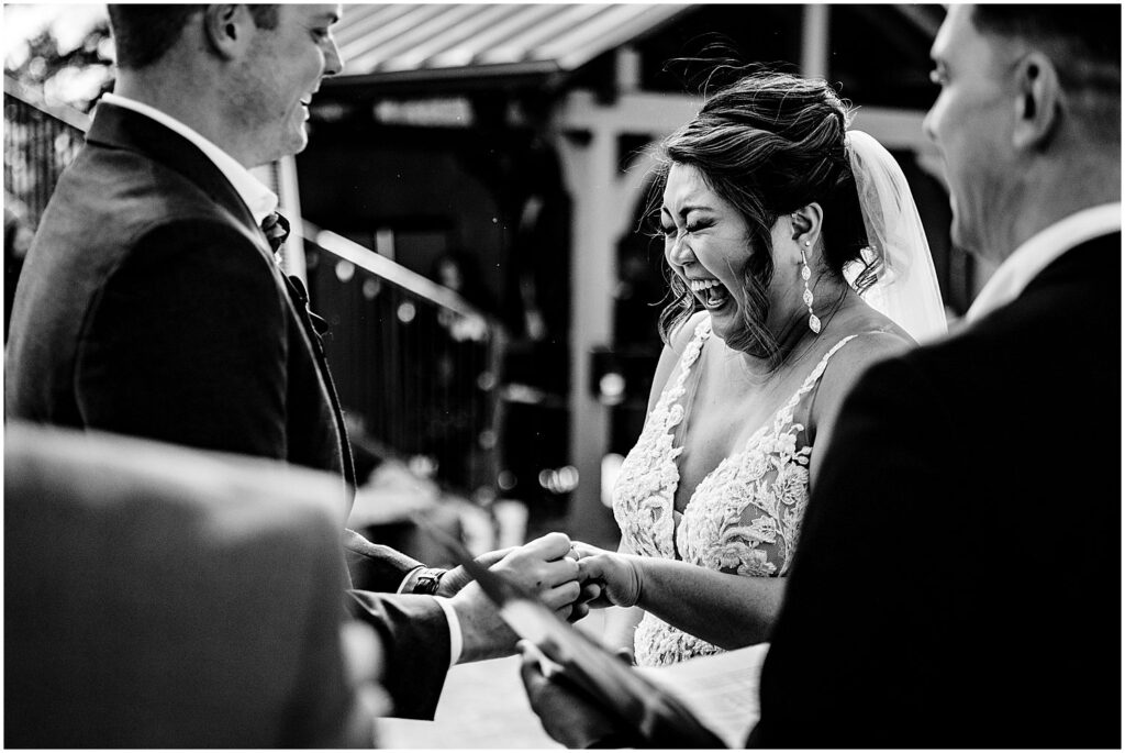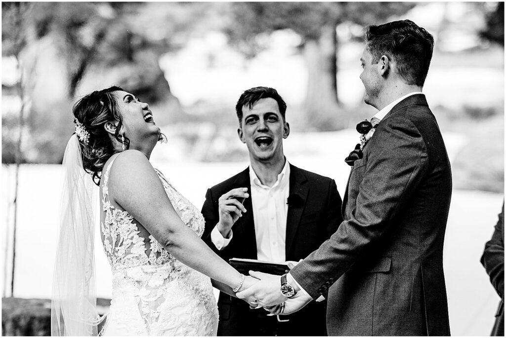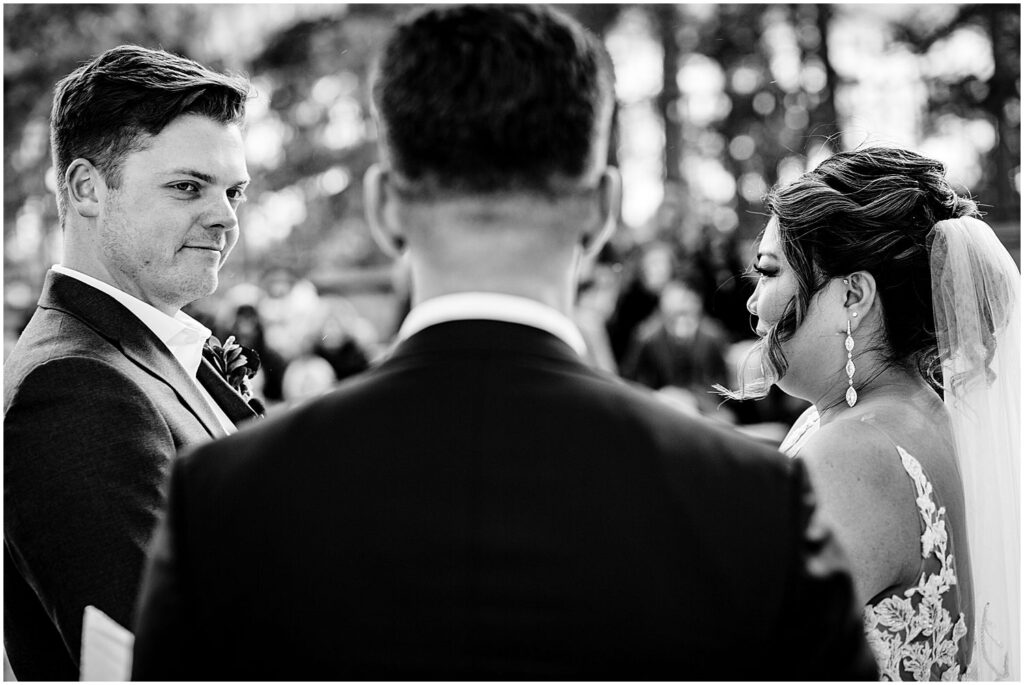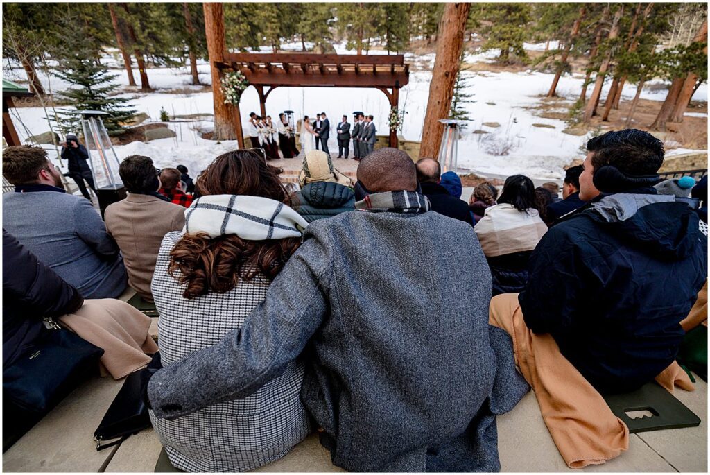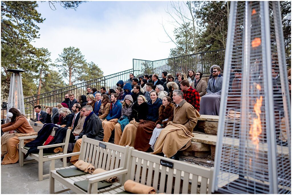 Sydney and Ed decided to move forward with saying their vows under the pergola outside beneath McGregor – which I think was the right decision. The venue provided blankets, seat covers, and some heaters to help fight off the chill.