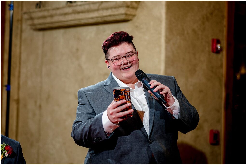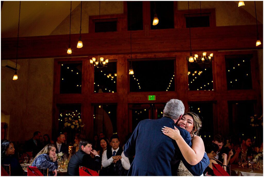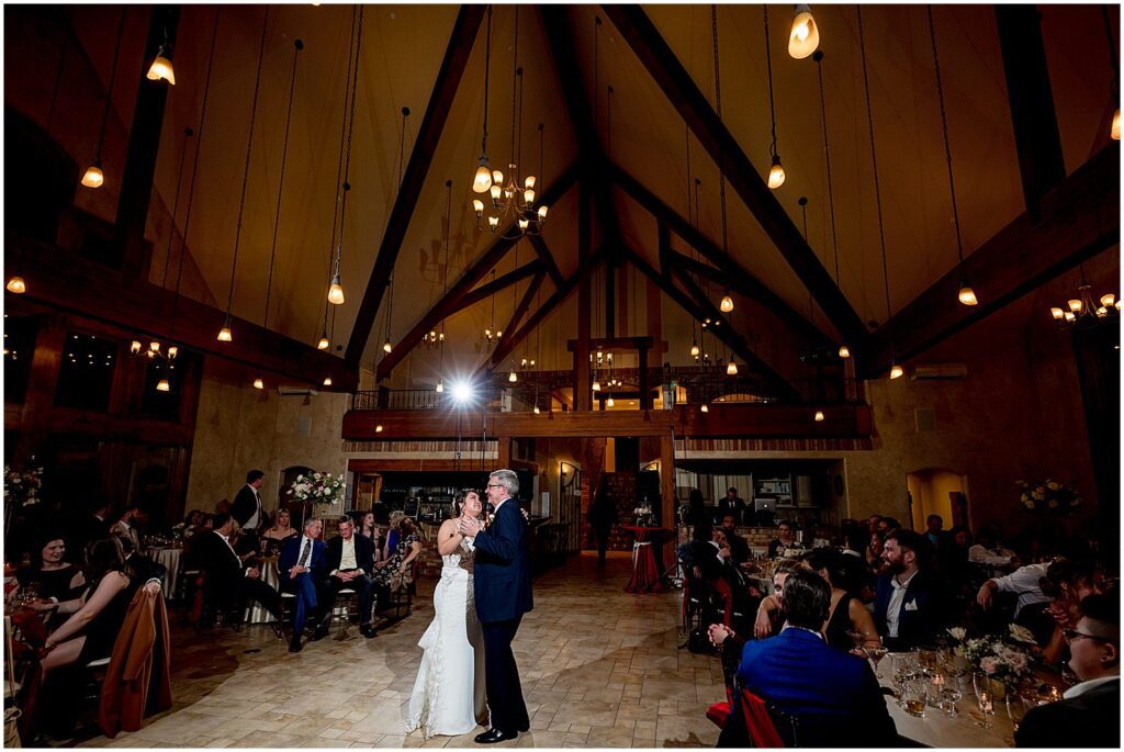 Sydney and Ed made their grand entrance into the reception hall, and the guests erupted into applause and cheers. The newlyweds took to the dance floor for their first dance with dinner and toasts that followed.