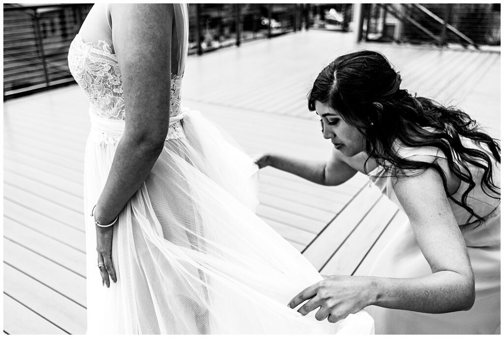 After hanging out on the rooftop for a bit, we headed downstairs for dinner, toasts, and the dance party. Once we got inside – the sky broke open and the rains began to pour down. Just before dinner – Jennifer and Kameel took a few minutes to have private vows to one another. They wanted them to be totally private – so they hung out on the patio while I took photographs from inside looking out. I think that those are some of my favorite photographs – as you can see the emotion that they’re both feeling, and can tell that it’s a genuine moment where there’s physical separation between the camera and Jennifer and Kameel.