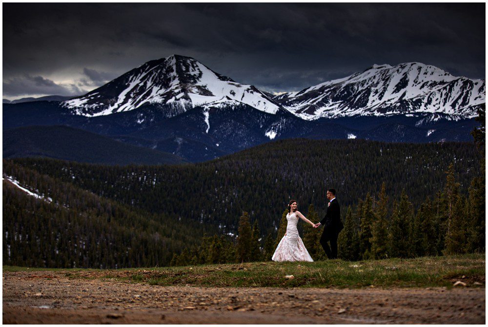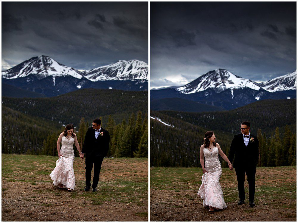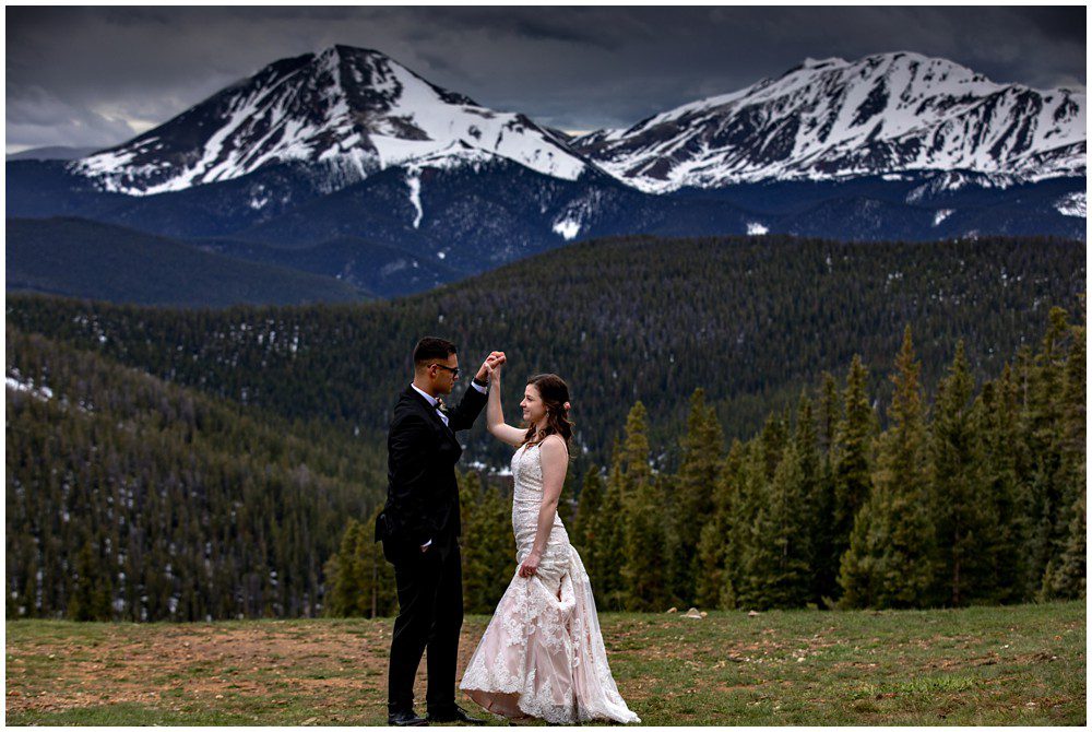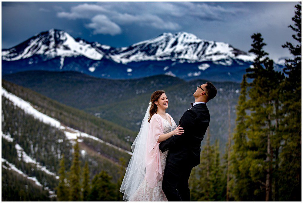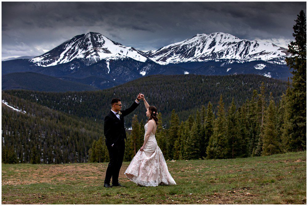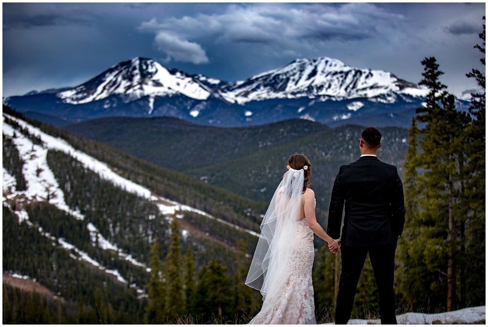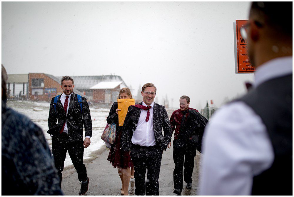 This year has been especially interesting for weather – as the summer had quite a cold start. The temperatures didn’t rise into the 90’s until July. On June 22, 2019 – Maddie and Braton were married on Keystone Mountain. Just following the summer solstice, they had their wedding on the first official day of summer. We had been watching the weather report the weeks leading up to the wedding day, and knew that we’d be heading up in the mountain with storms approaching. In true Colorado fashion, the clouds opened up and a massive storm approached the mountain. Starting with rain and a thunderstorm, the skies turned a deep blue. After a small clearing of nice weather, the snow came in. The forecast was for 8-12 inches, and I’m sure we ended up hitting at least 8″ by the end of the evening. A massive summer snow had hit for the first time in nearly a decade.