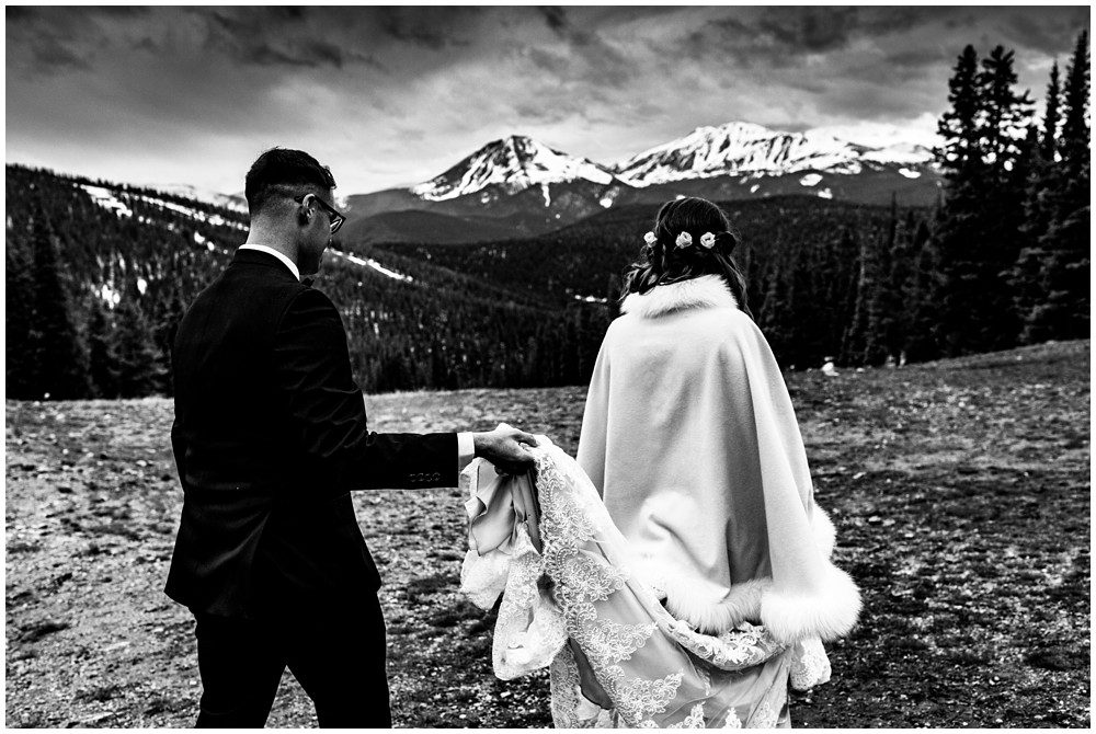 Maddie and Braton decided to hold their ceremony inside, as the temperatures kept dropping and the snow kept falling. We had a few breaks of time waiting on the gondolas to begin running again, and they were absolute troopers and headed out into the freezing wind for portraits. I’m sure it’s no secret, but I’m a sucker for dramatic skies. I love capturing all the elements that go along with hosting a mountain wedding… and Maddie and Braton’s Keystone wedding was certainly a perfect day to capture the beautifully chaotic weather.