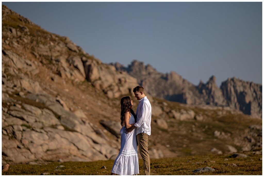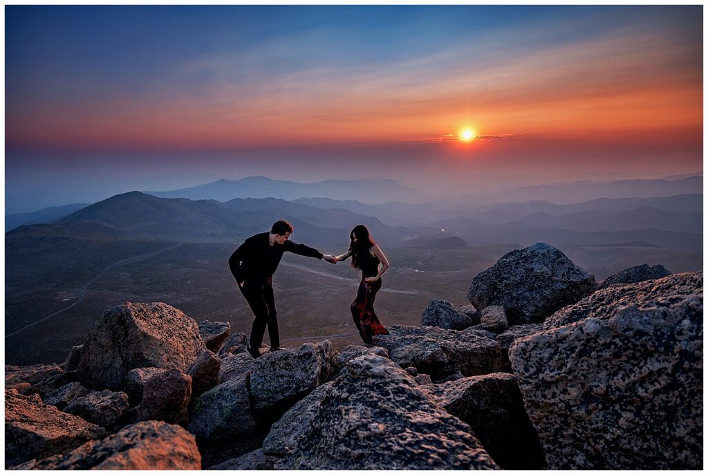 Bridgette and Evan chose Mt. Evans (now known as Mt. Blue Sky) for their engagement session due to some personal attachments to the stunning peak, as well as Evan sharing the same name as the (formerly named) mountain.