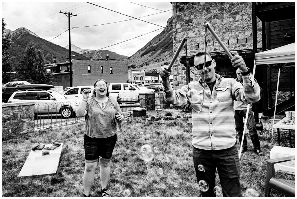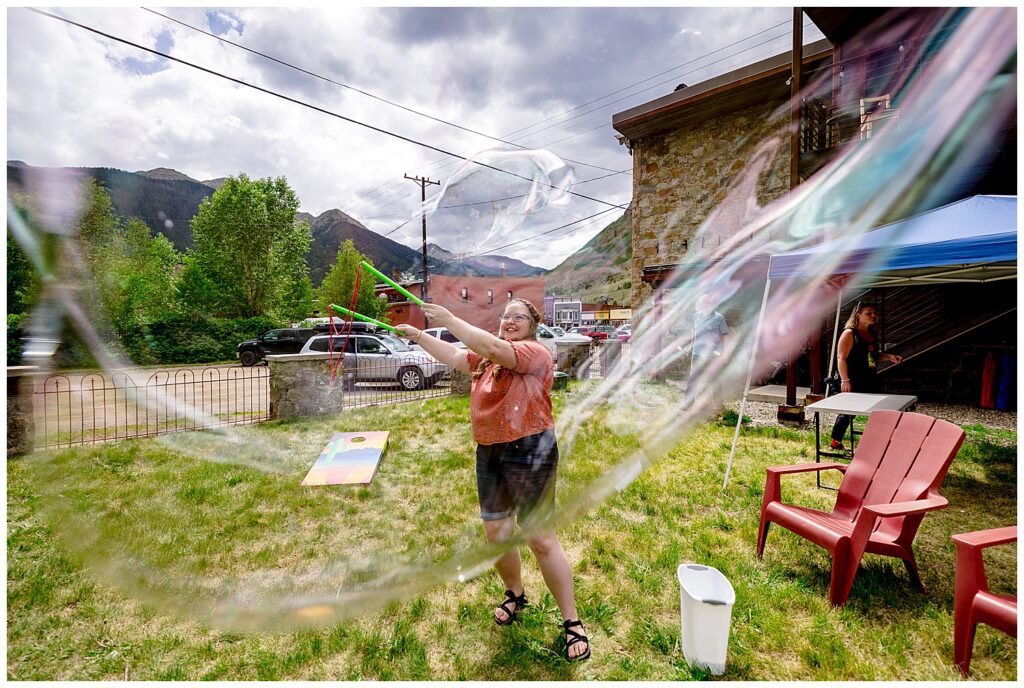 If you’ve ever been to Silverton, Colorado – you know it’s a town that you can walk quite easily. The streets and buildings are all pretty close and the entire town is just a few blocks long. All of their guests stayed in town, meeting up at Linda and Shawn’s amazing AirBnB to play lawn games and just relax before the wedding. All that needs to be said is BUBBLES. And a large bubble maker at that. I’ve said it before – but give adults bubbles and it’s like a kid in a candy shop. Pure happiness.